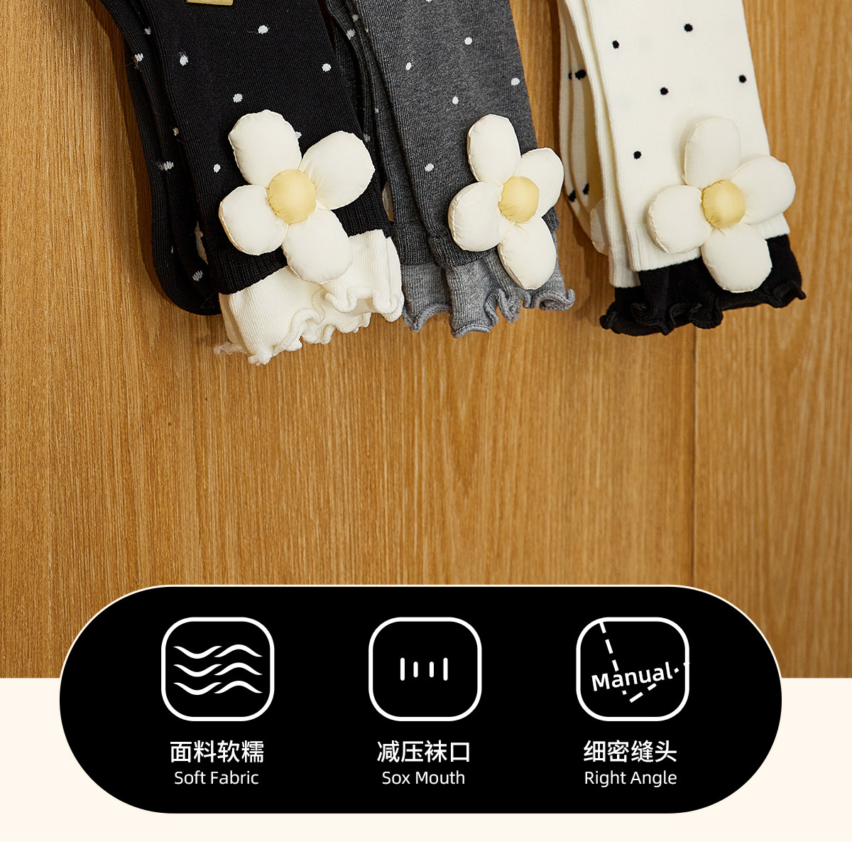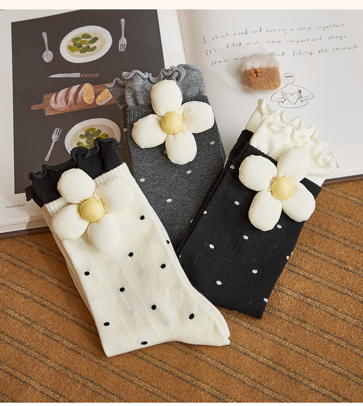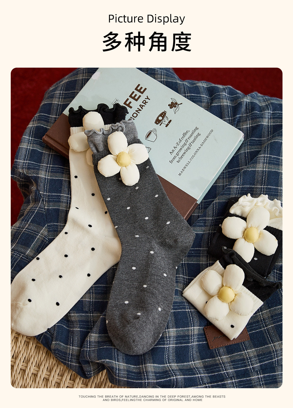Gukoo/果壳中筒袜女春秋款立体小花新款波点百搭女士袜子组合