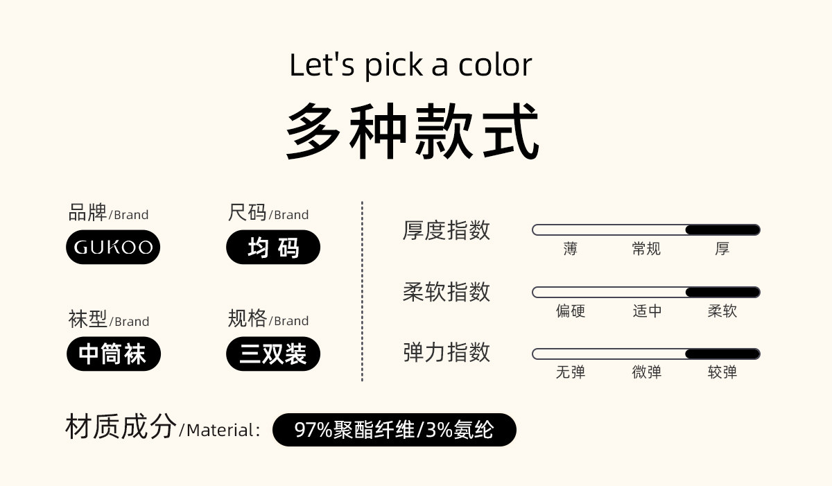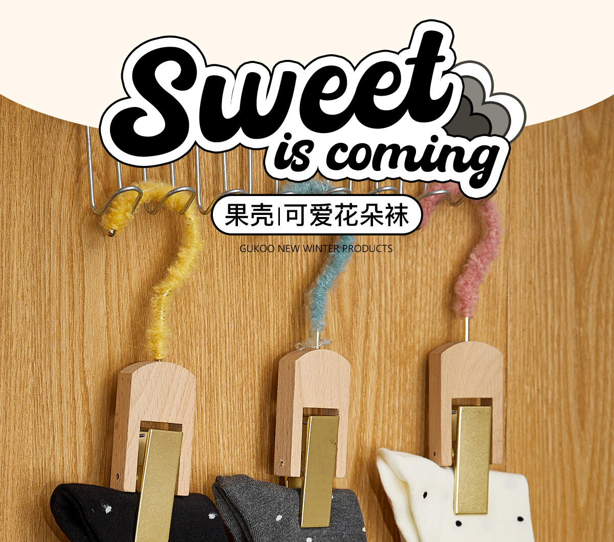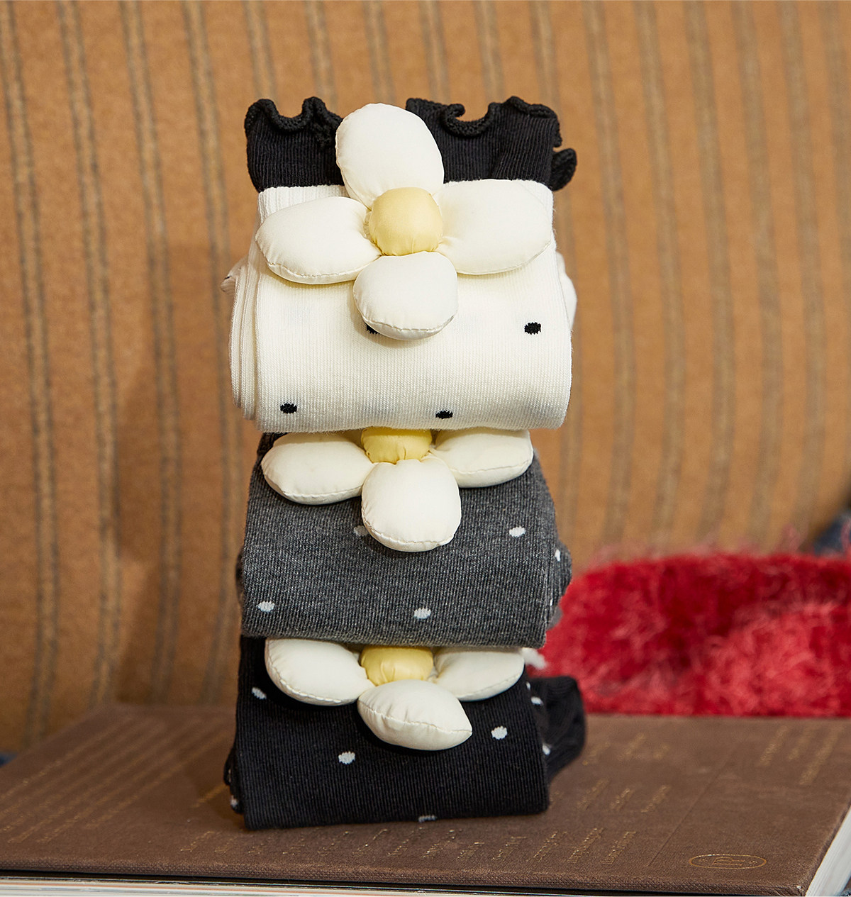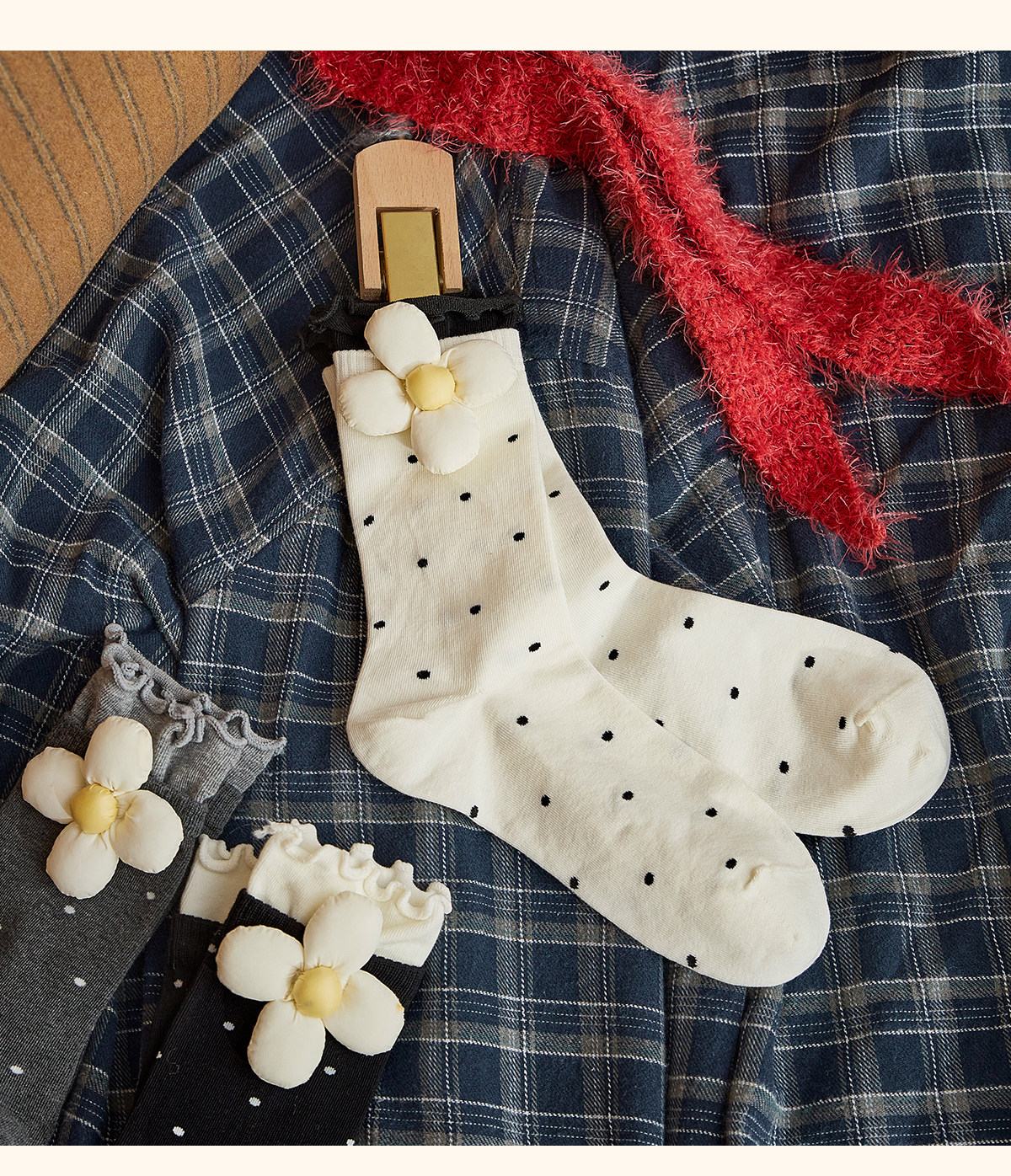 Gukoo/果壳中筒袜女春秋款立体小花新款波点百搭女士袜子组合