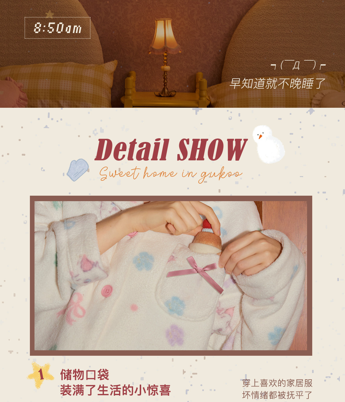 Gukoo/果壳睡衣女秋冬牛奶绒舒适保暖情侣家居服套装可外穿S724426203505