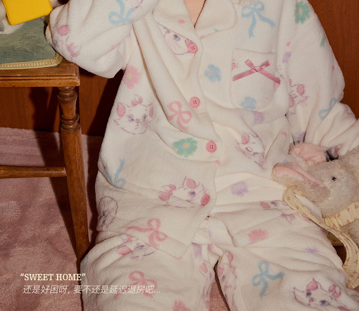 Gukoo/果壳睡衣女冬季毛绒保暖新款迪士尼联名女士家居服套装D