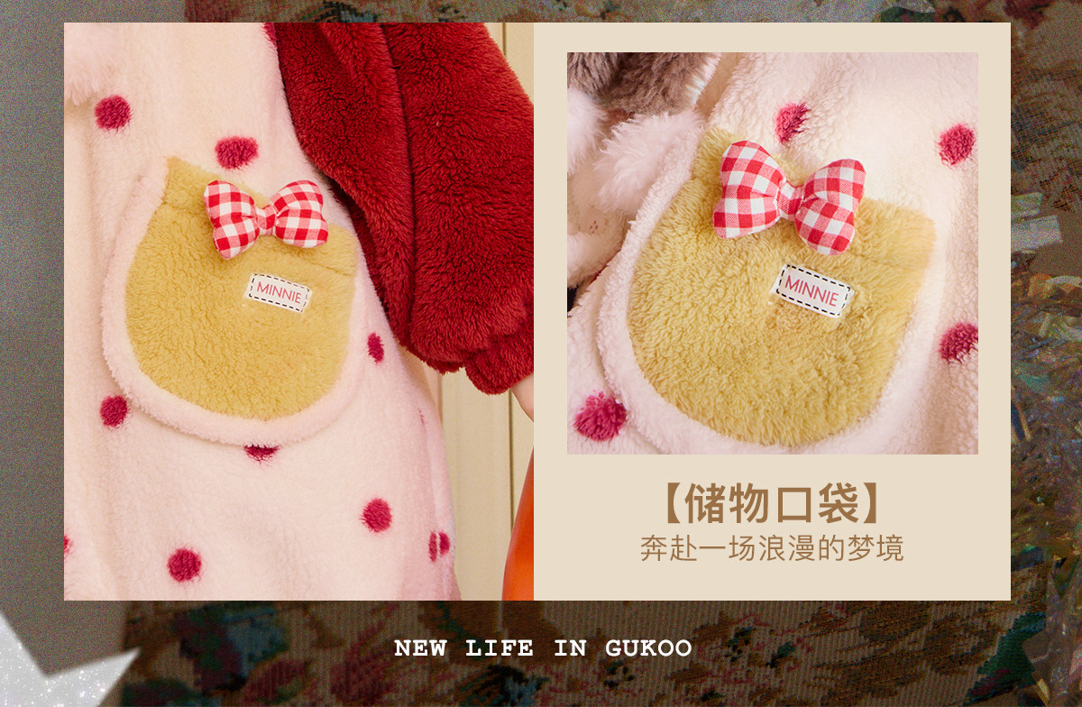Gukoo/果壳睡袍女冬季迪士尼联名新款毛绒保暖女士家居服睡袍D
