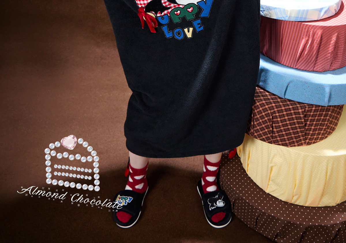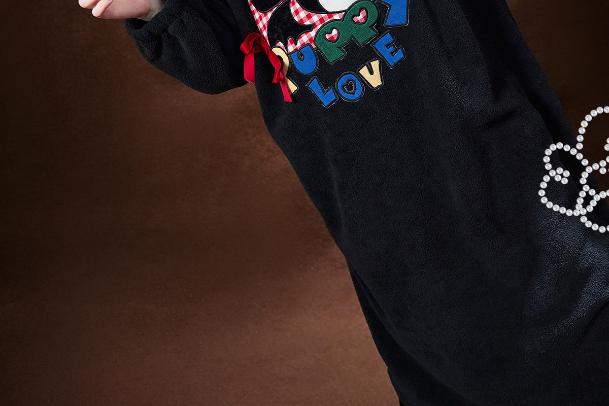Gukoo/果壳万圣节睡裙毛绒保暖新款轰轰小狗黑色女士家居服套装D