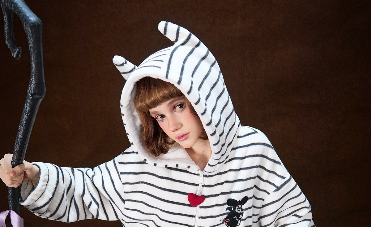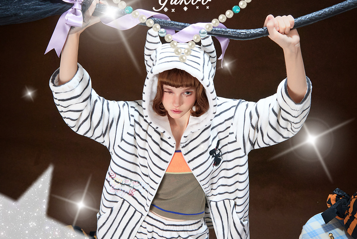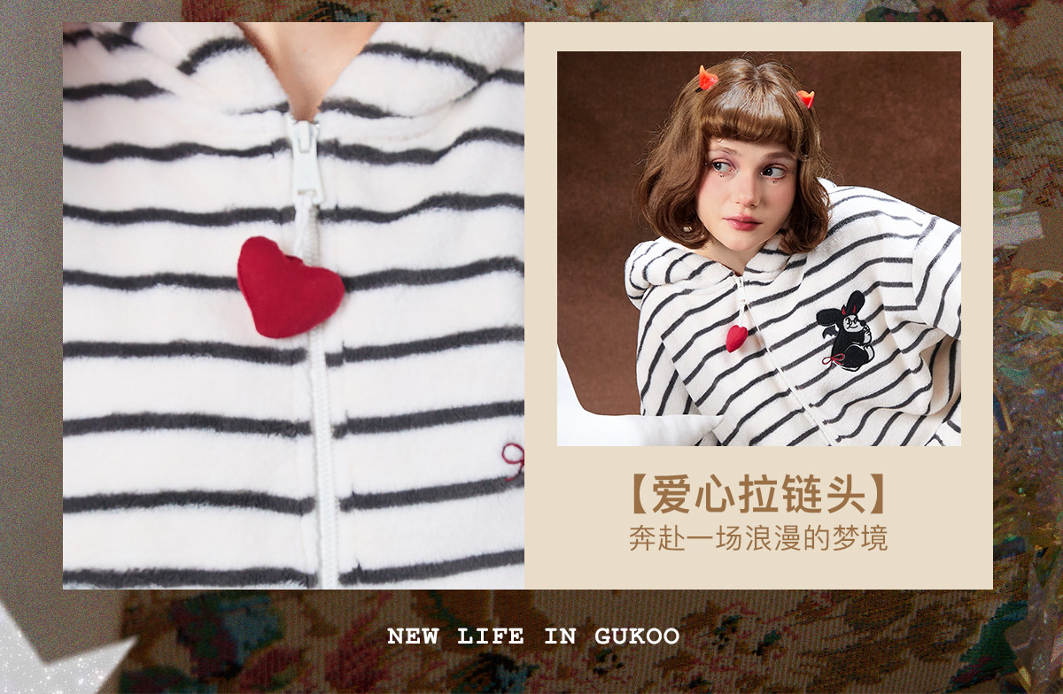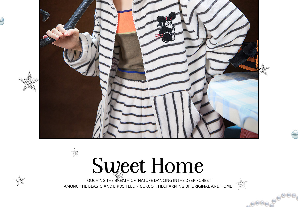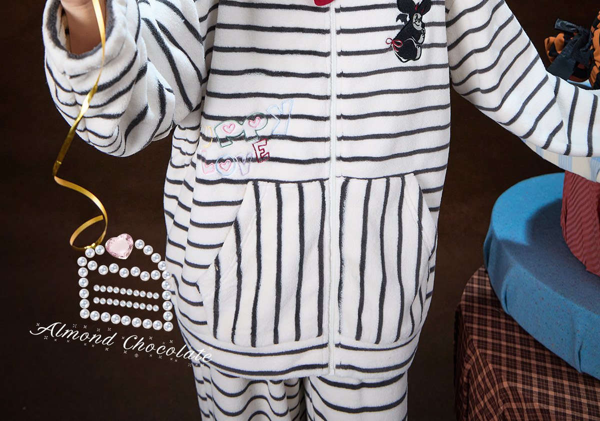 Gukoo/果壳万圣节睡衣女冬季毛绒保暖新款条纹女士家居服套装D