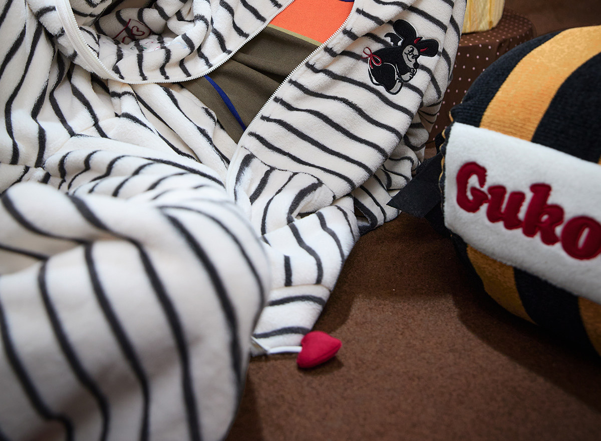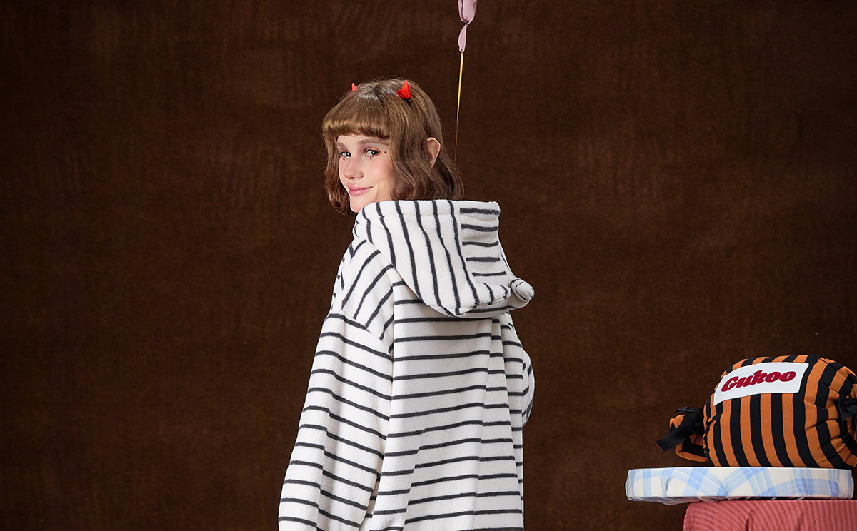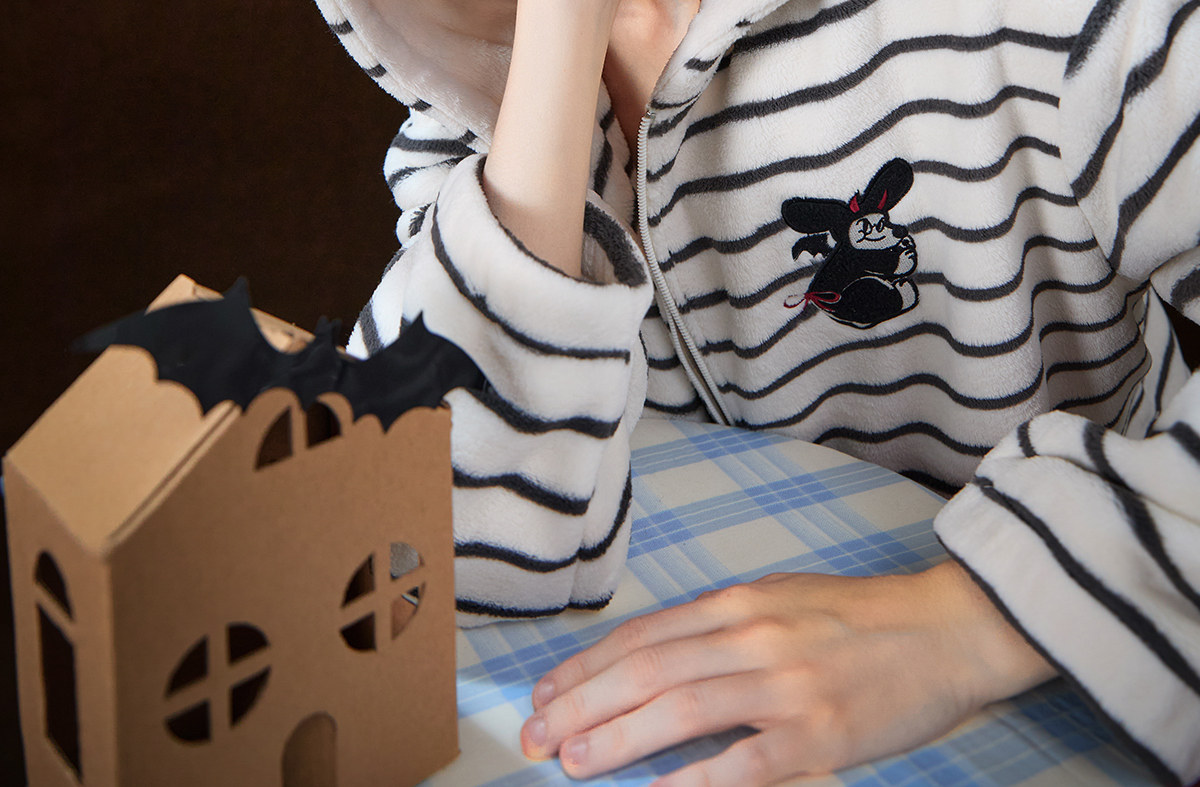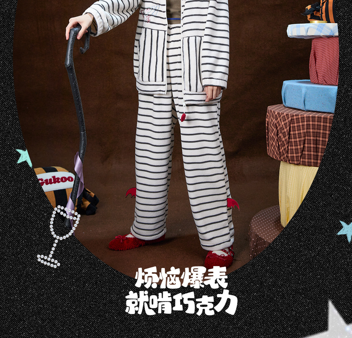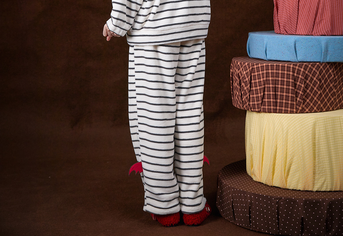 Gukoo/果壳万圣节睡衣女冬季毛绒保暖新款条纹女士家居服套装D