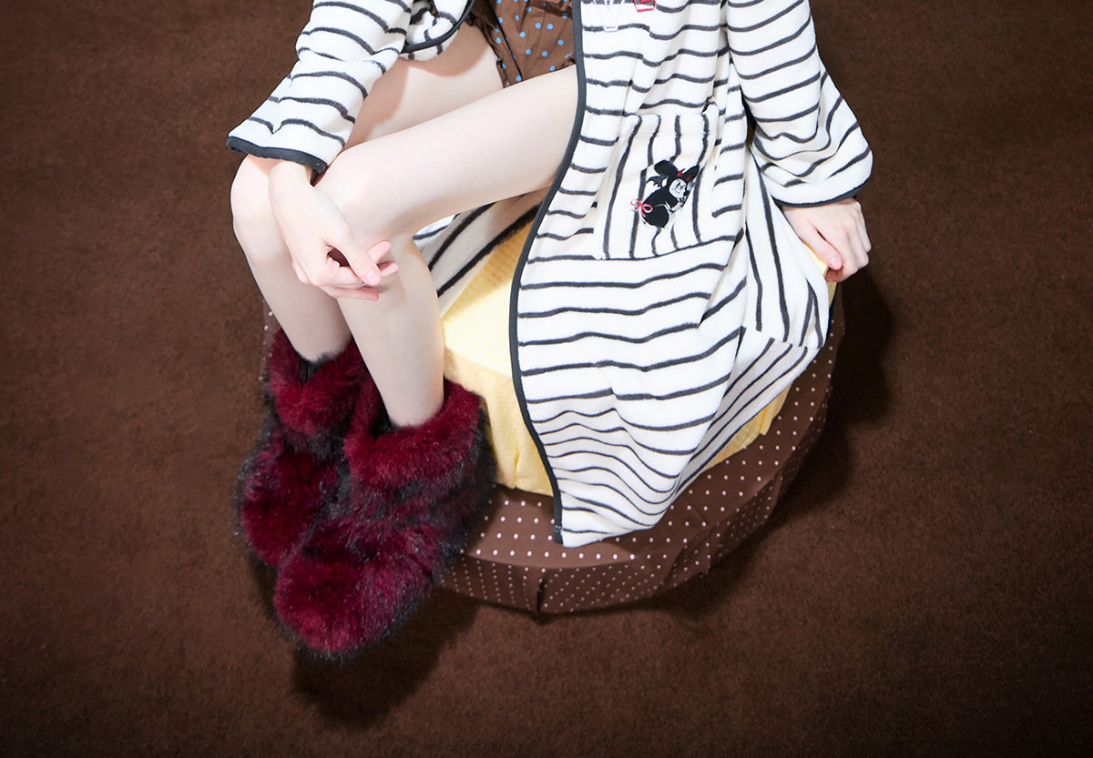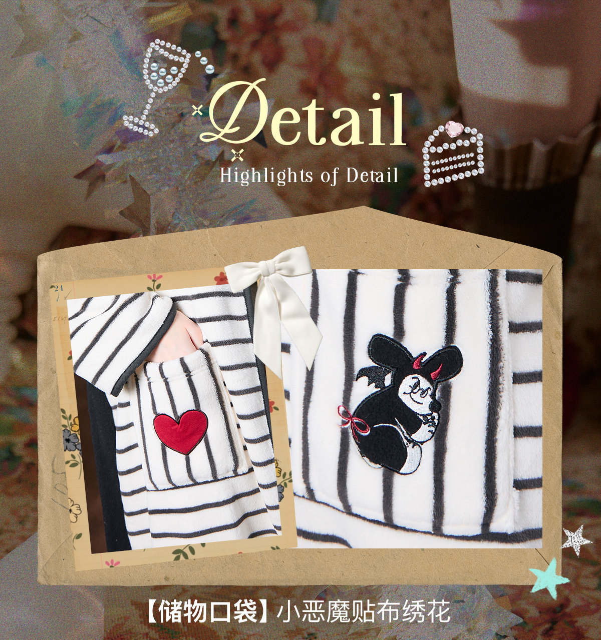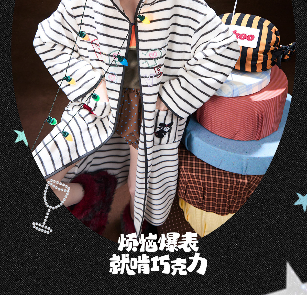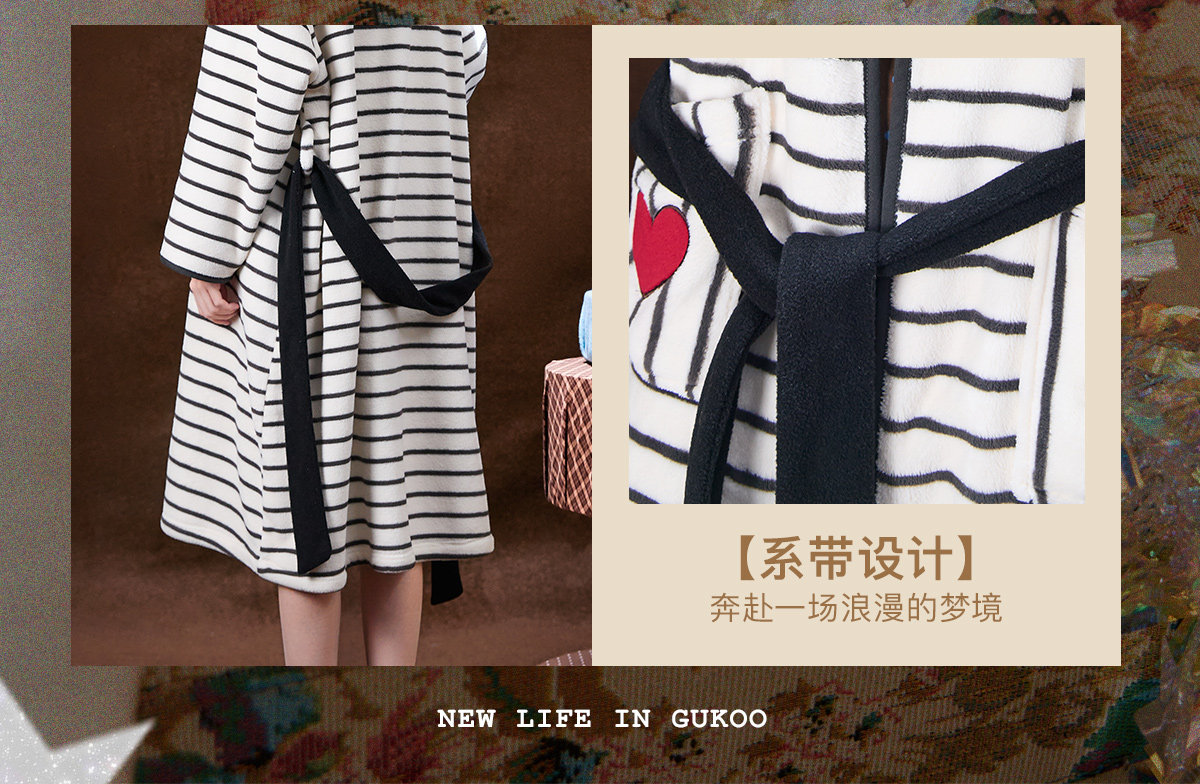 Gukoo/果壳睡袍冬季毛绒保暖新款轰轰小狗条纹女士家居服是睡袍D