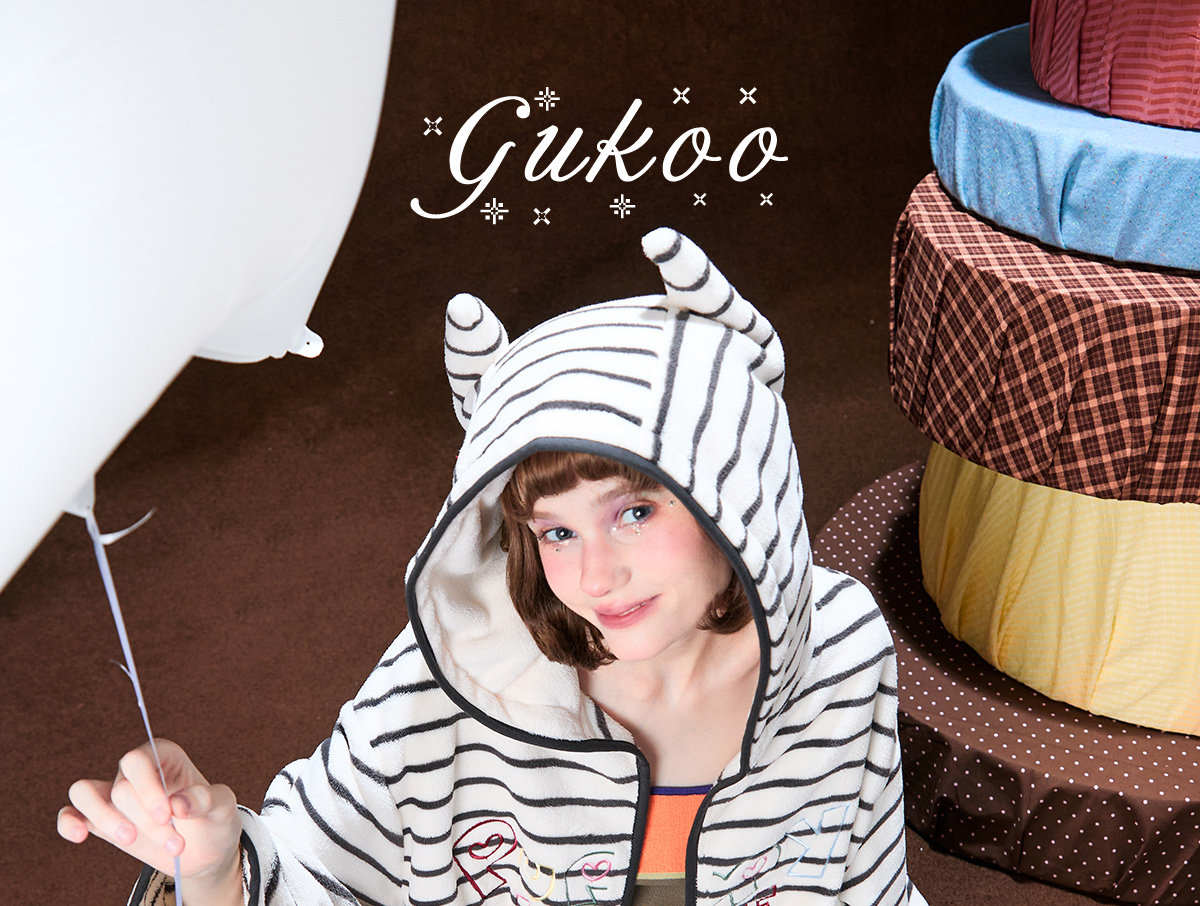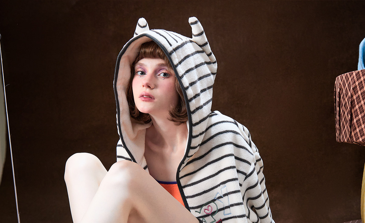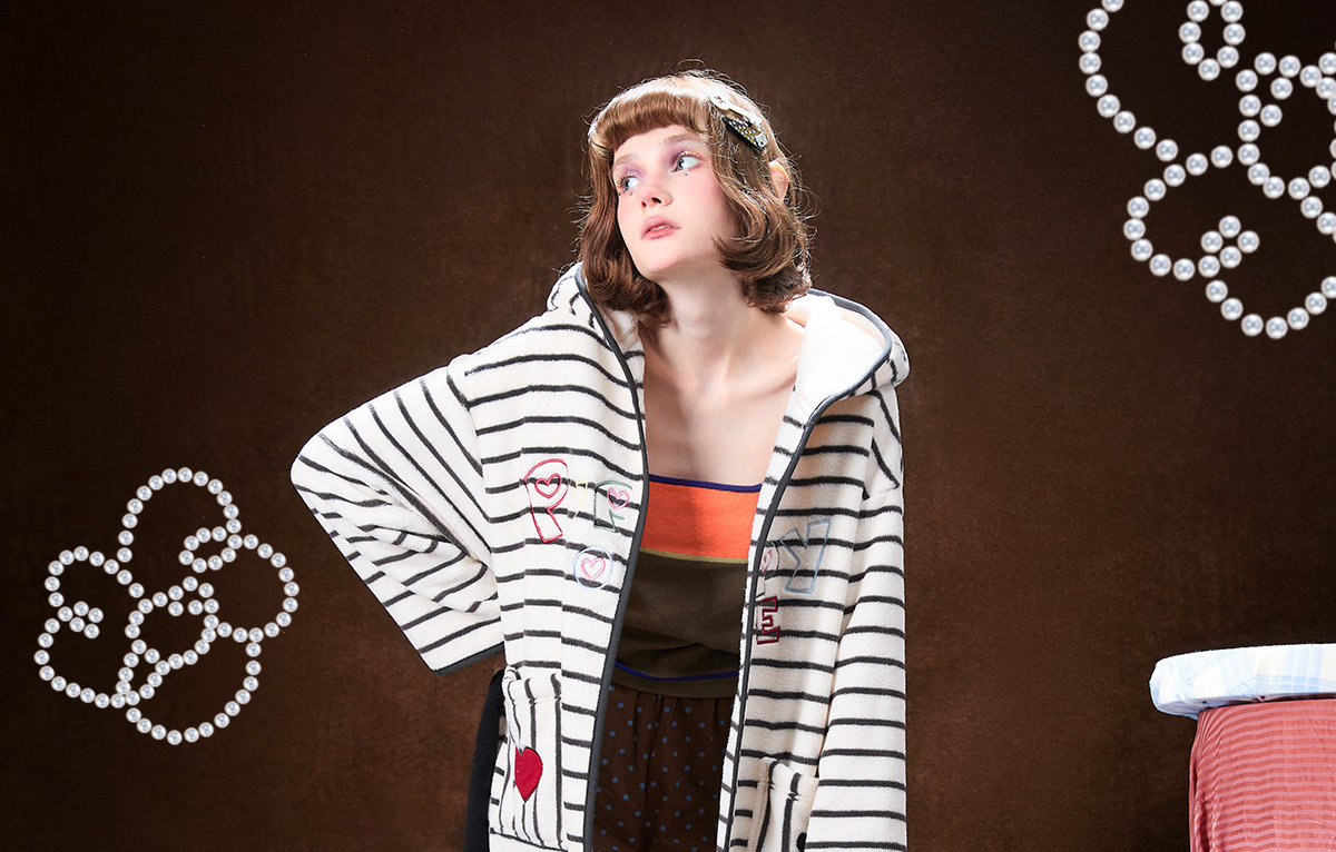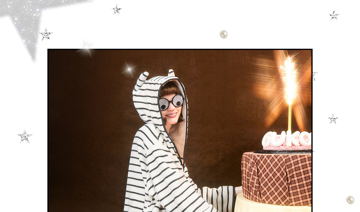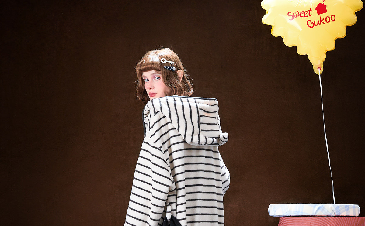Gukoo/果壳睡袍冬季毛绒保暖新款轰轰小狗条纹女士家居服是睡袍D
