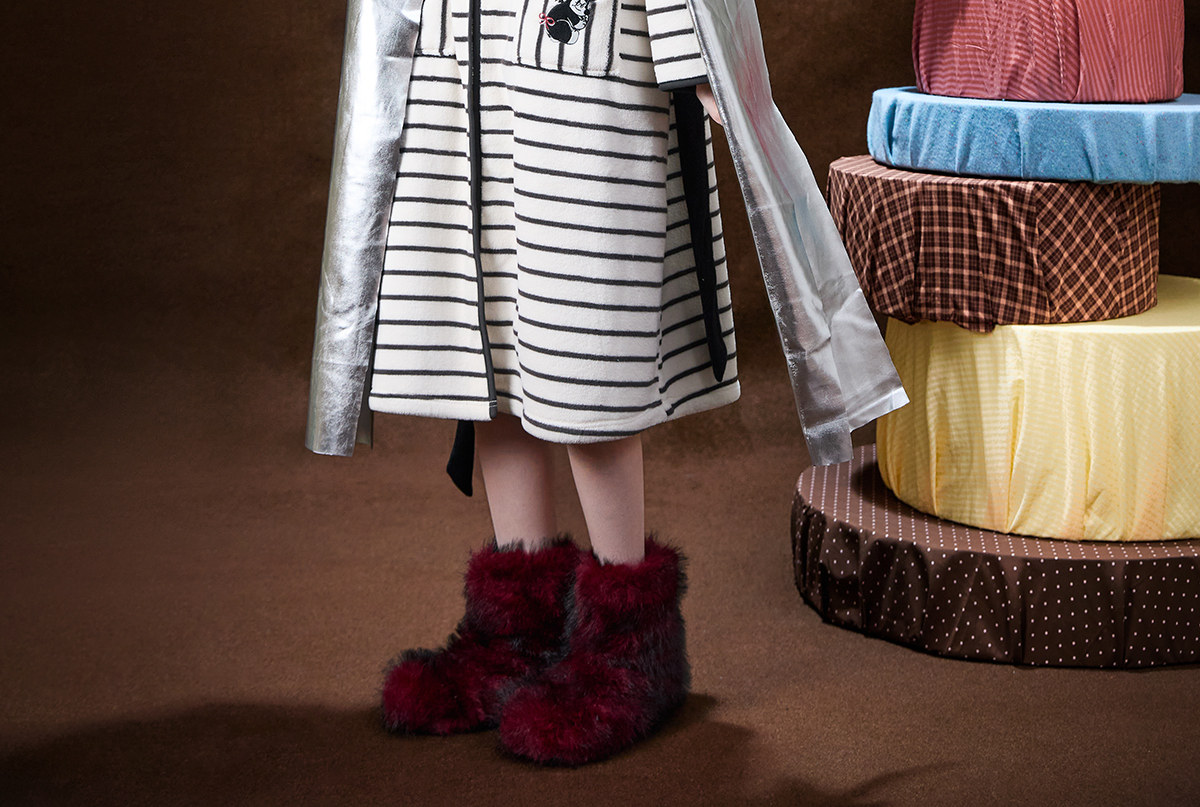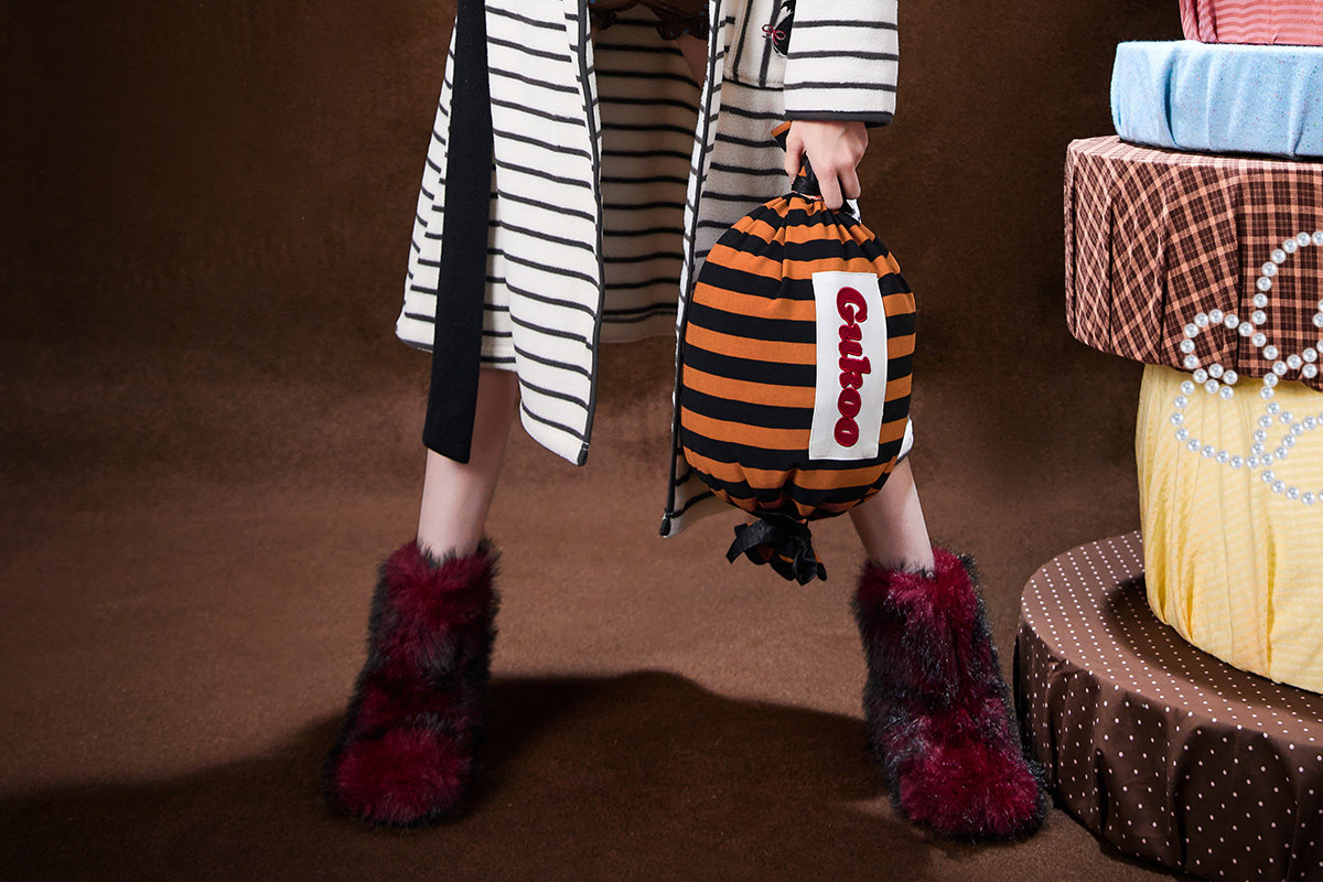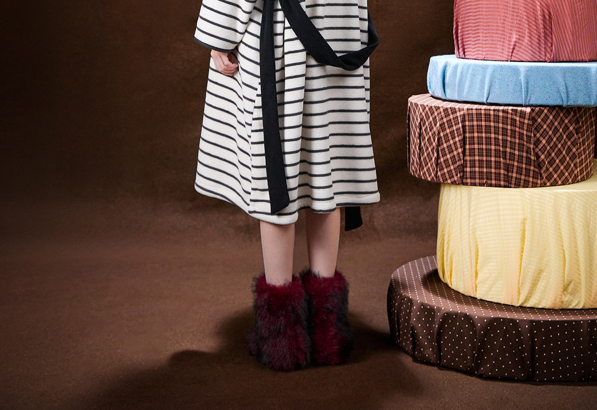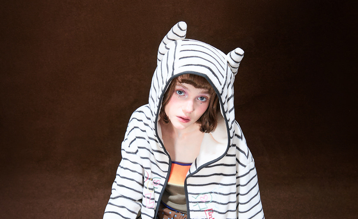 Gukoo/果壳睡袍冬季毛绒保暖新款轰轰小狗条纹女士家居服是睡袍D