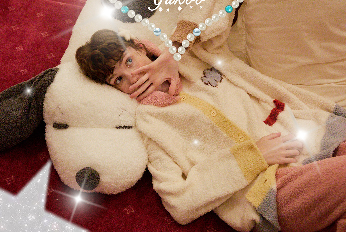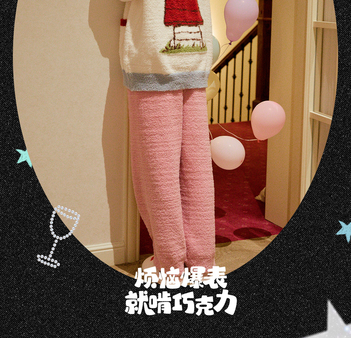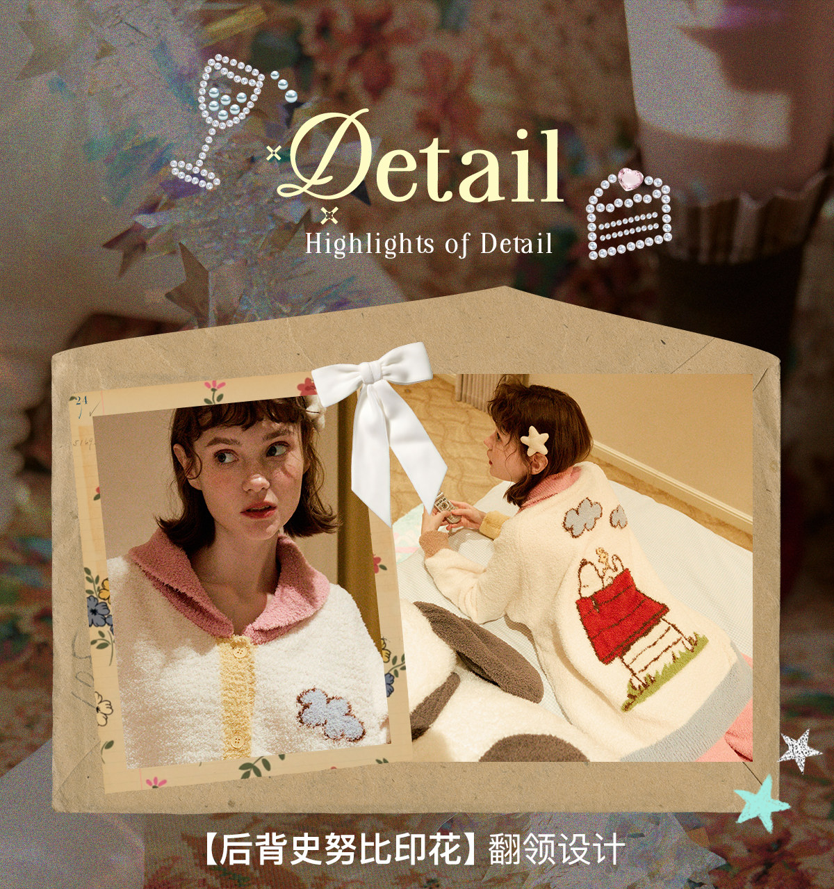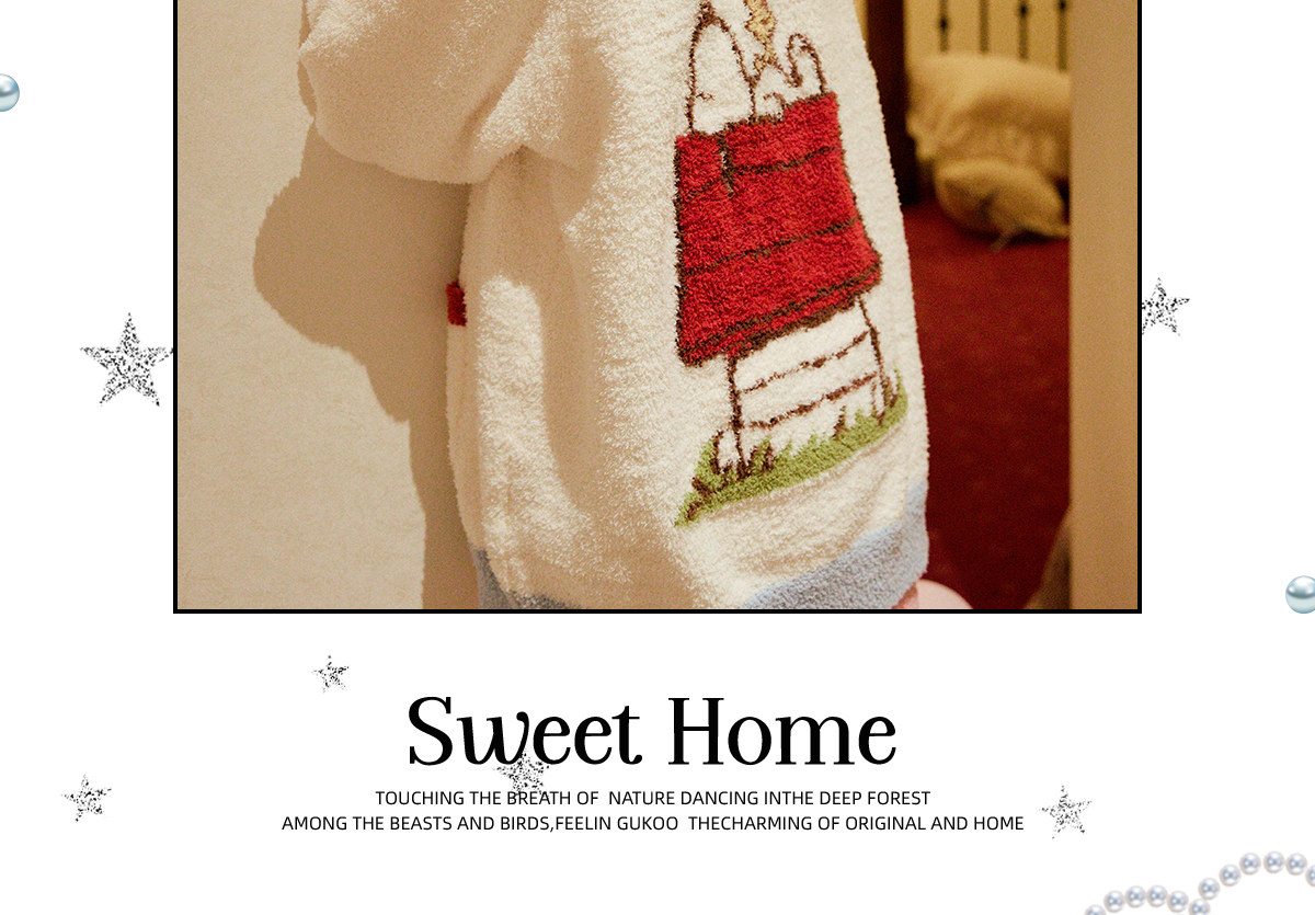 Gukoo/果壳睡衣女冬季半边绒保暖新款史努比联名女士家居服套装D