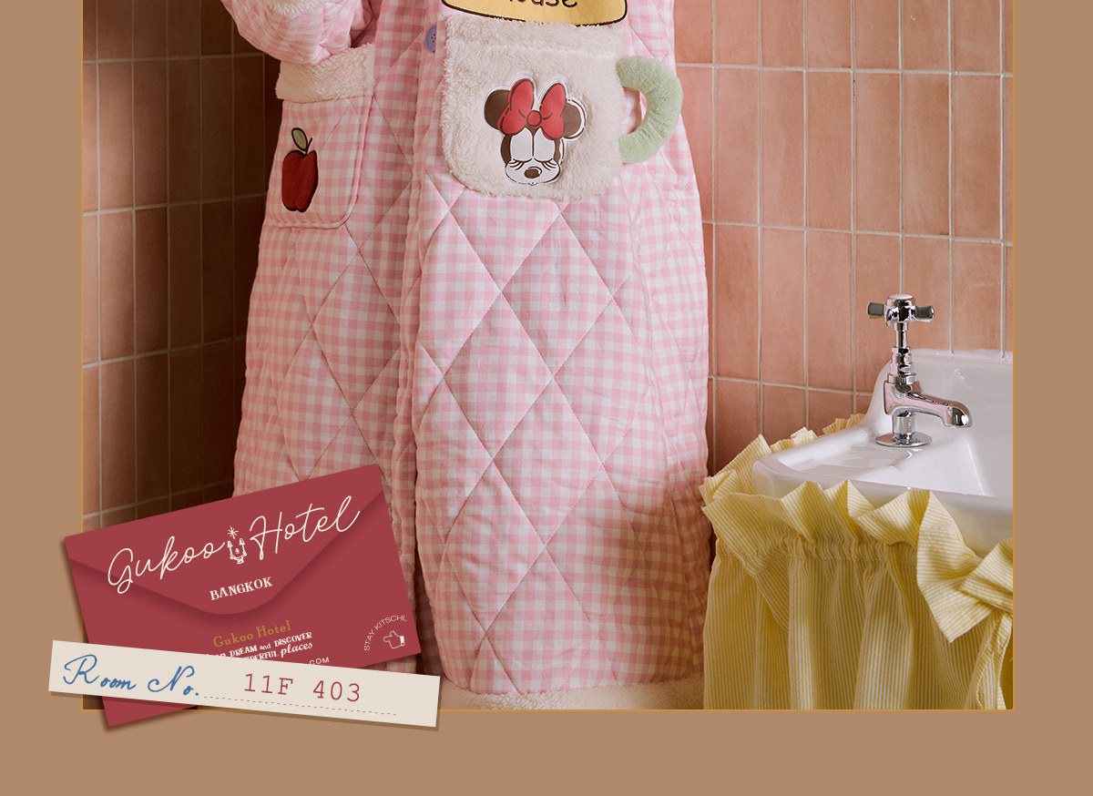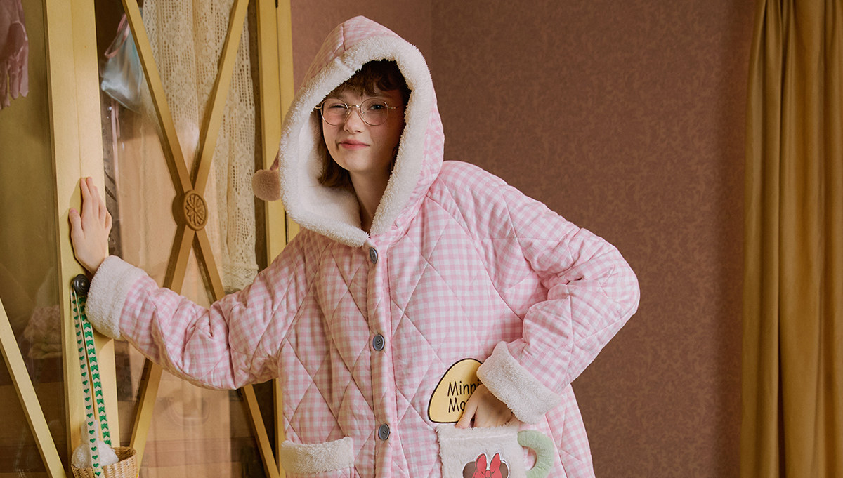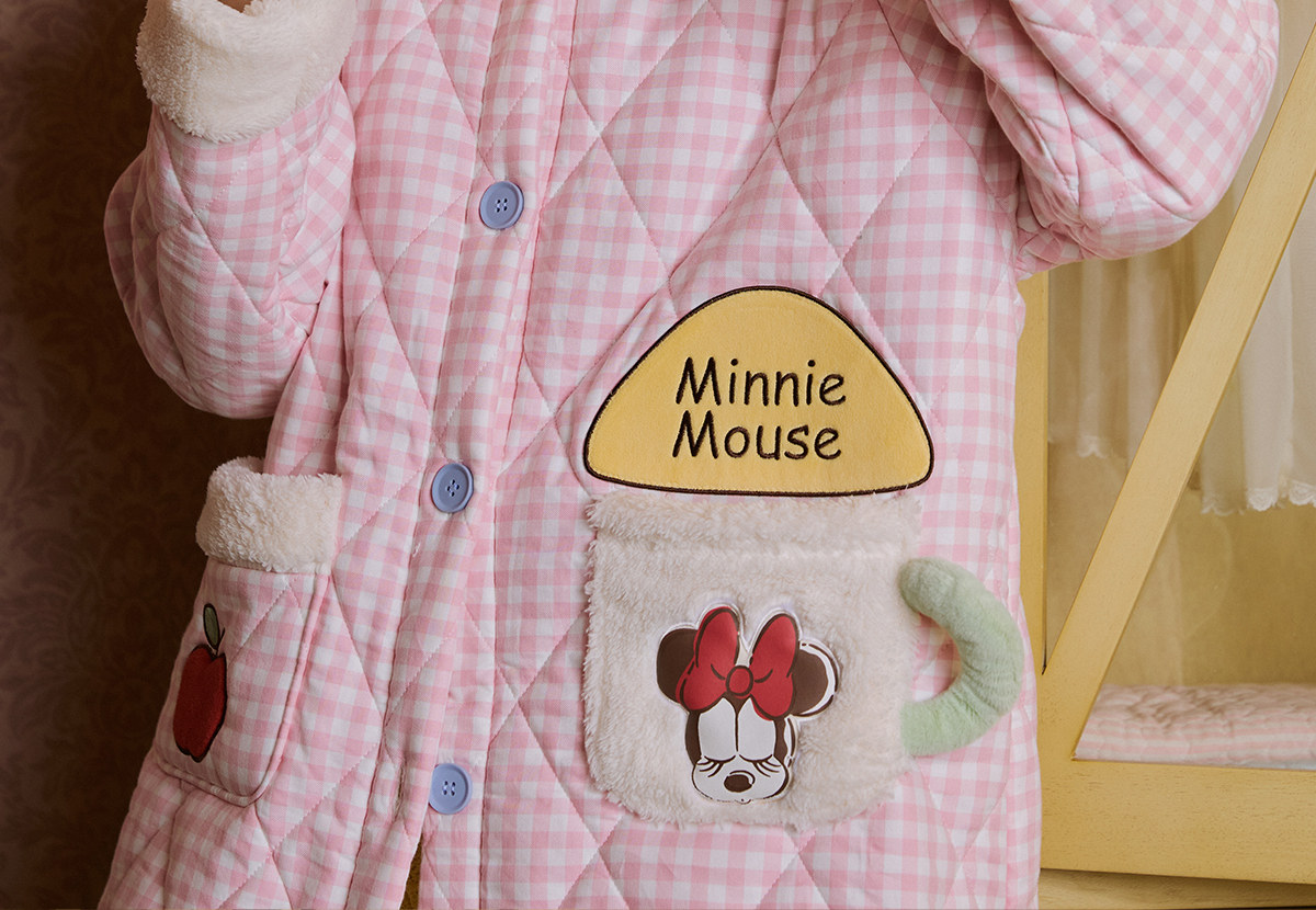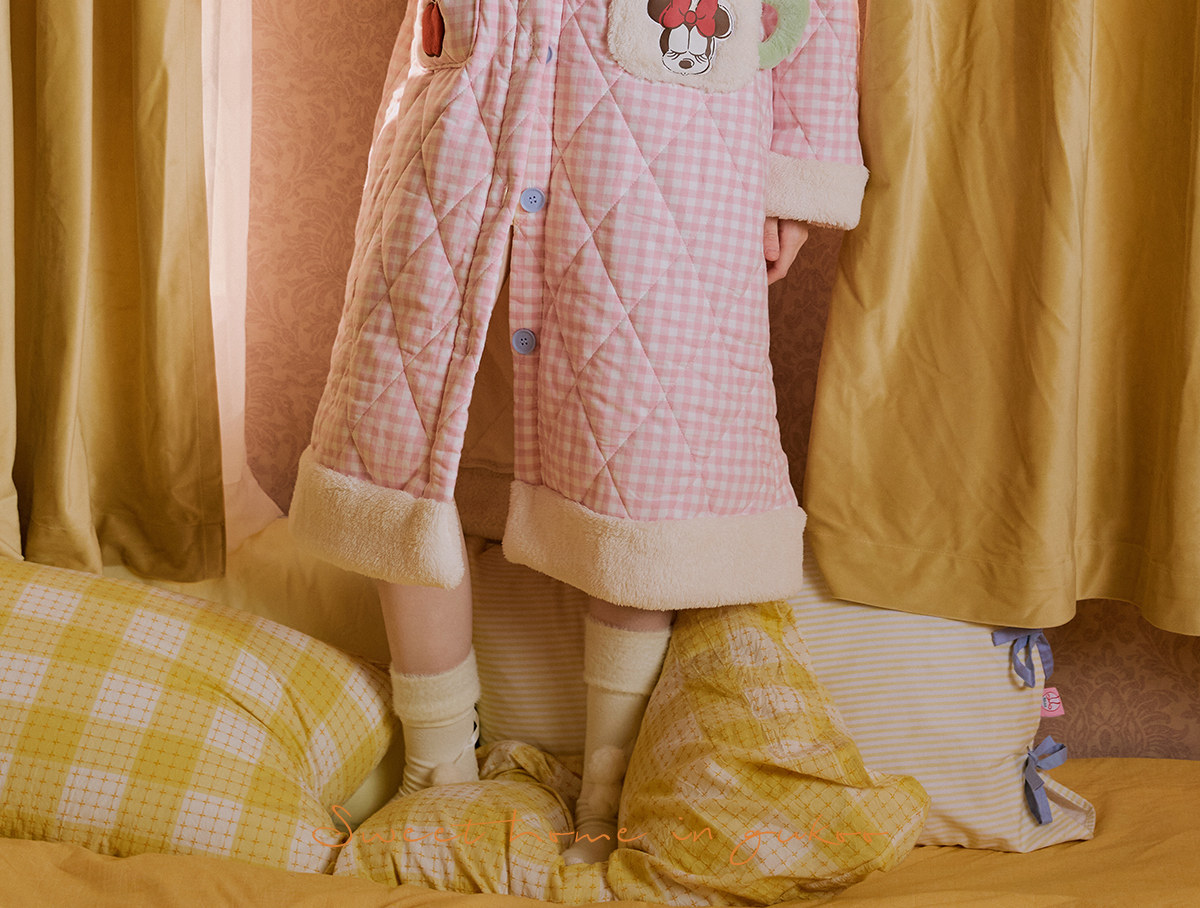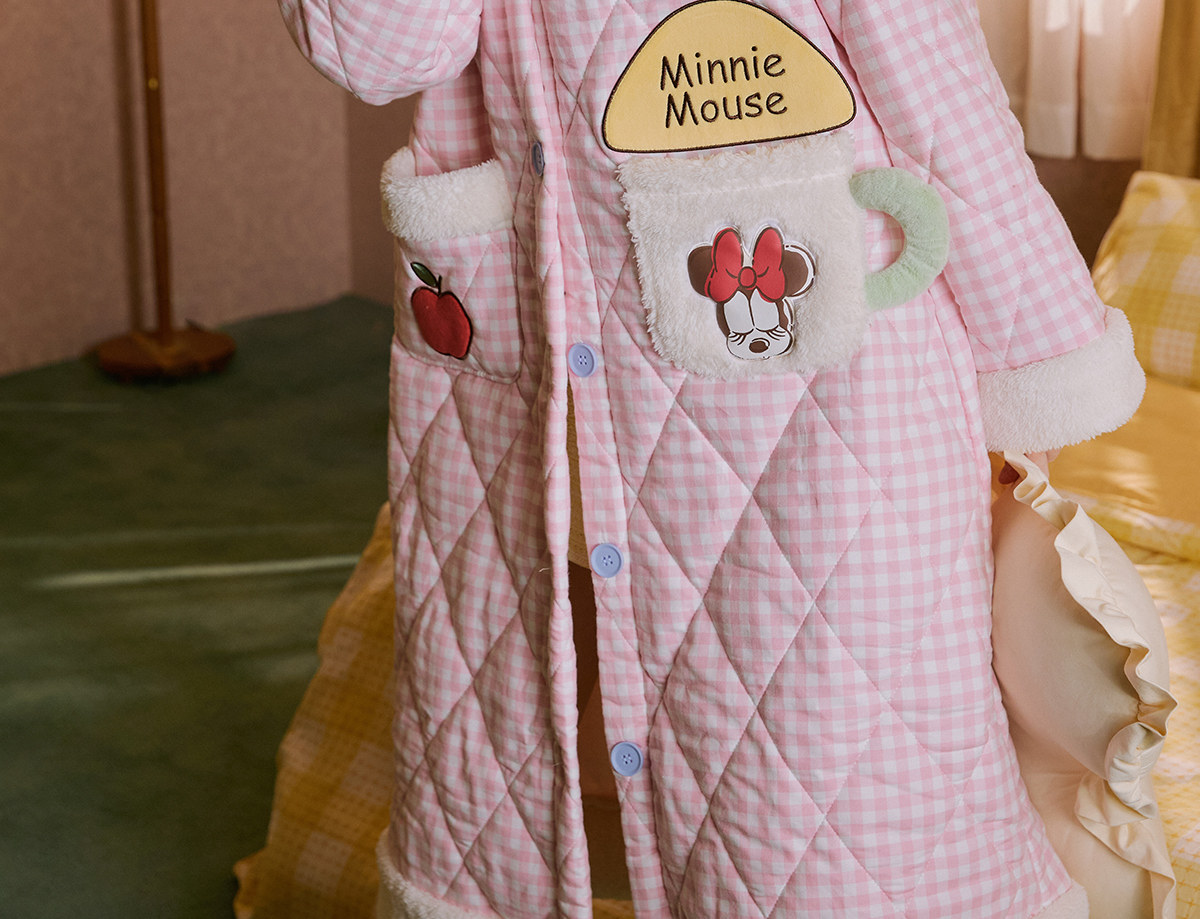 Gukoo/果壳睡袍冬季迪士尼联名新款格子夹棉可爱女士家居服睡袍D