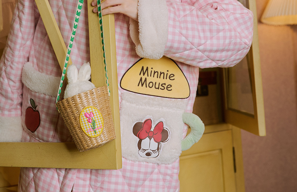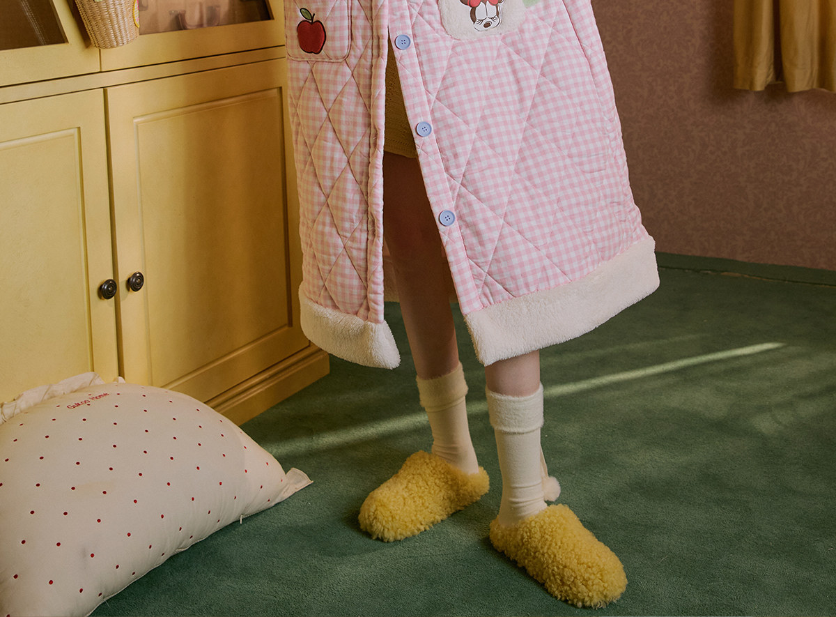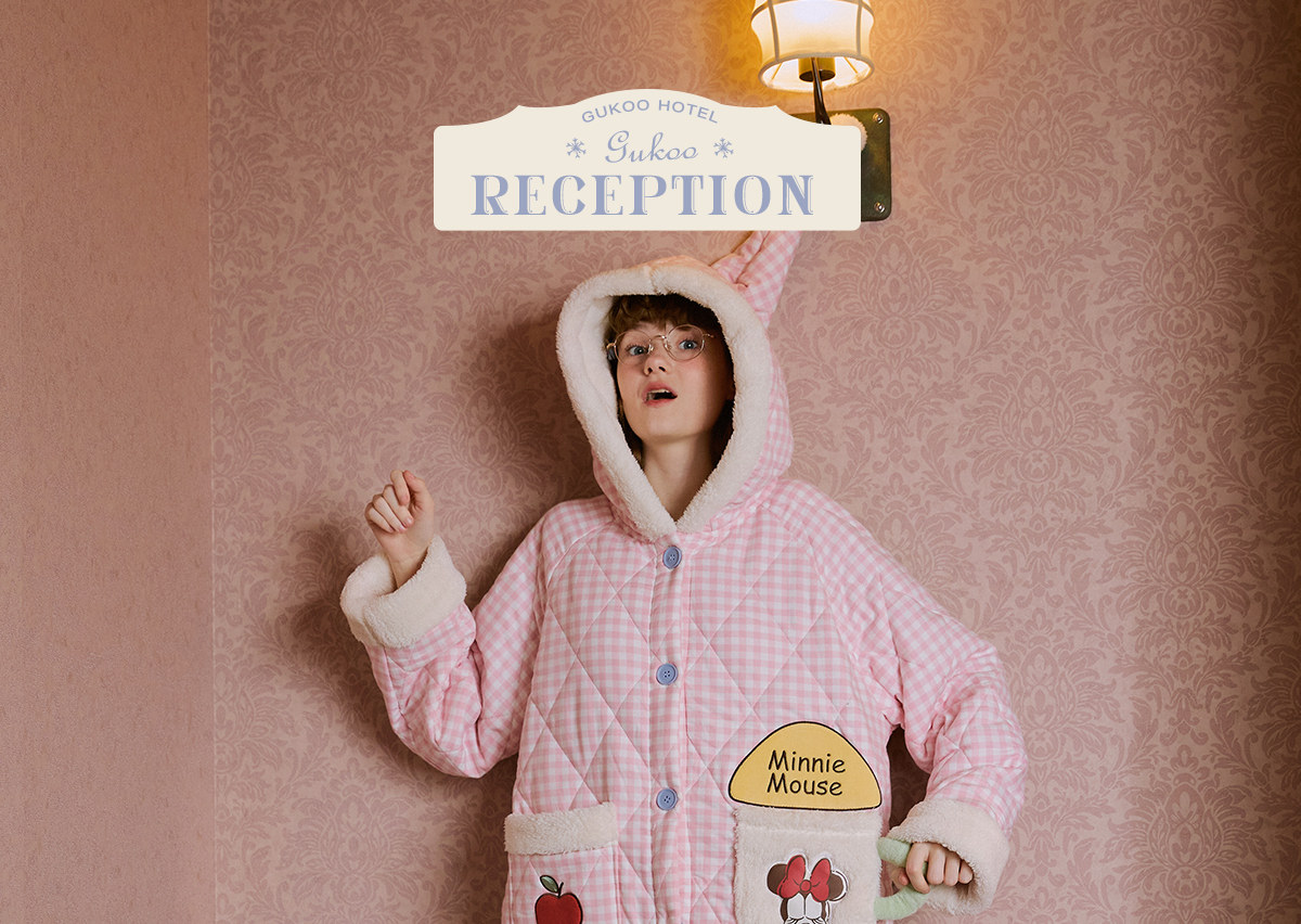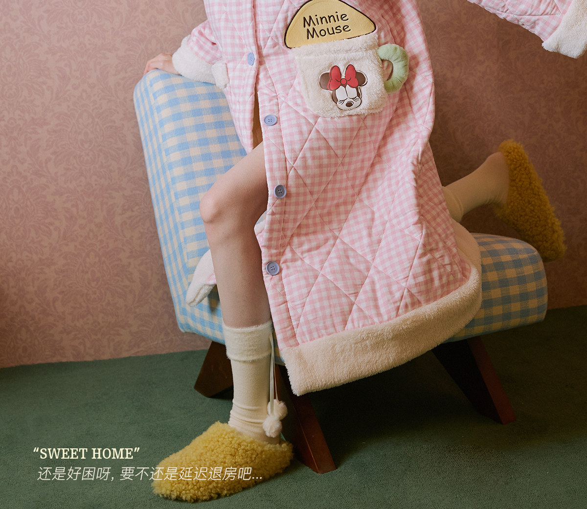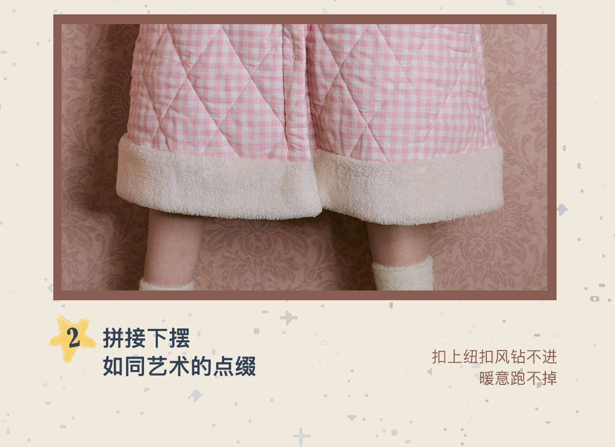 Gukoo/果壳睡袍冬季迪士尼联名新款格子夹棉可爱女士家居服睡袍D