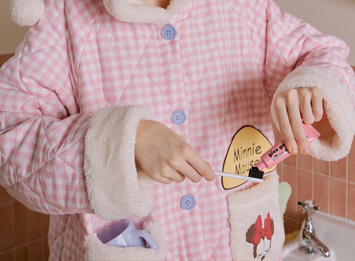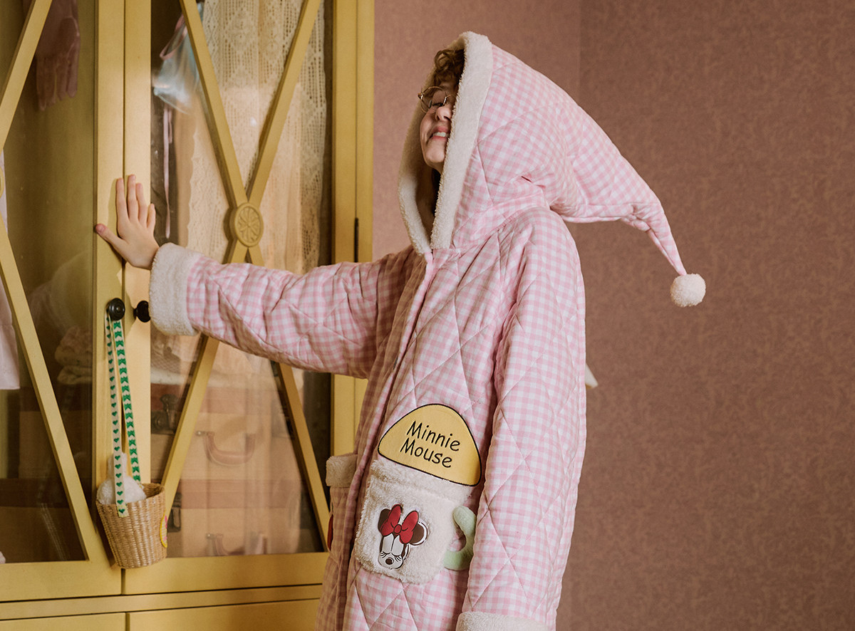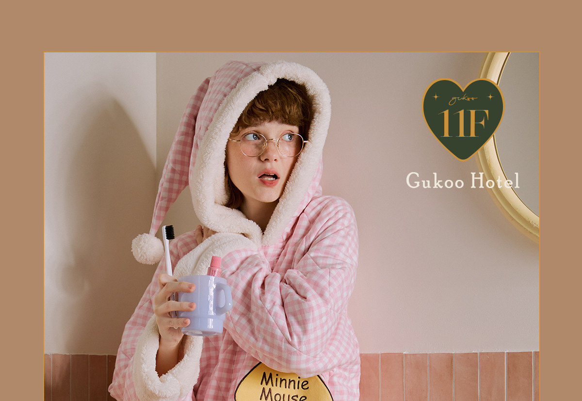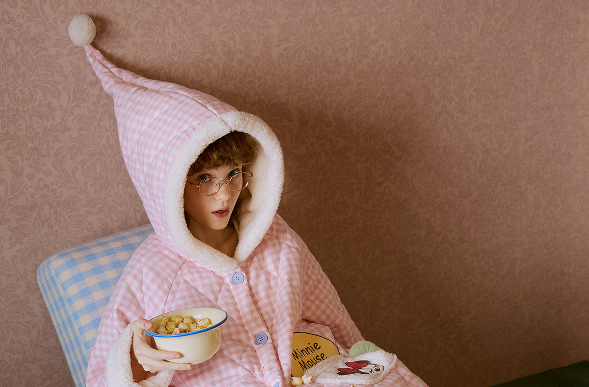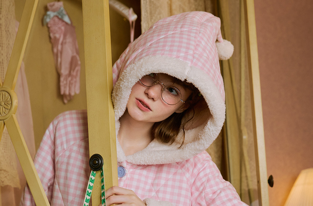 Gukoo/果壳睡袍冬季迪士尼联名新款格子夹棉可爱女士家居服睡袍D