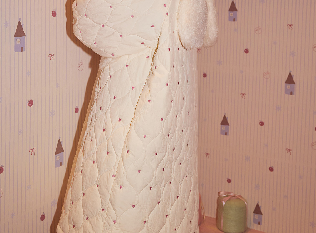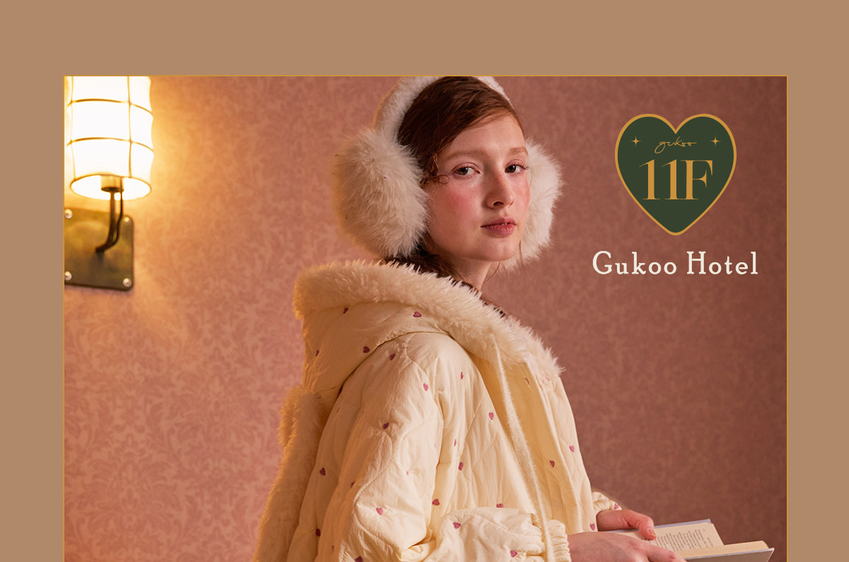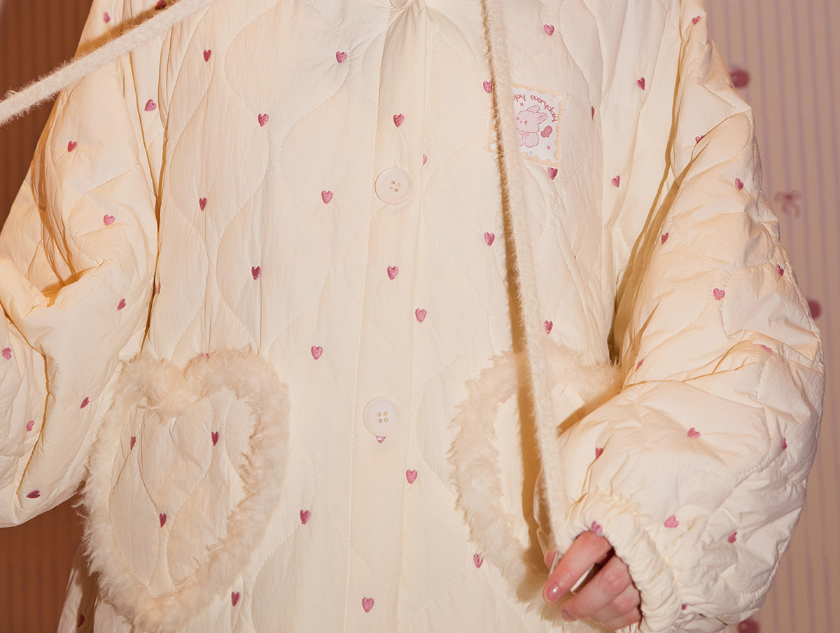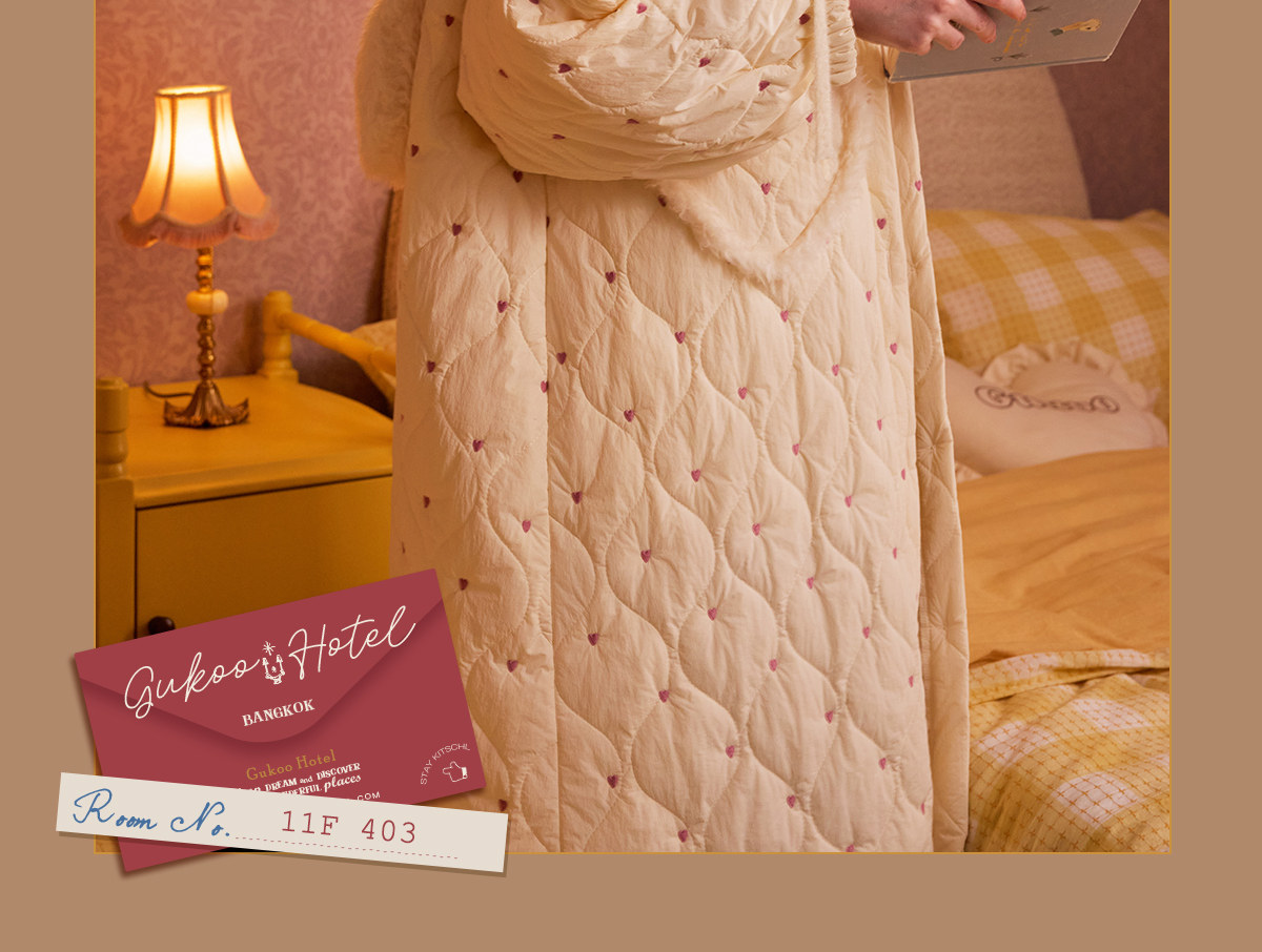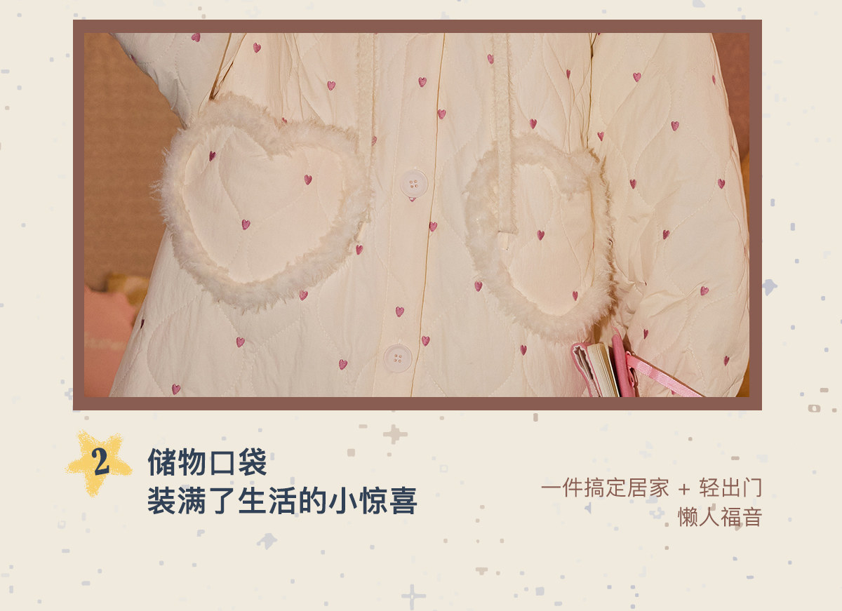 Gukoo/果壳睡袍女冬季夹棉保暖新款爱心满印女士简约家居服睡袍D