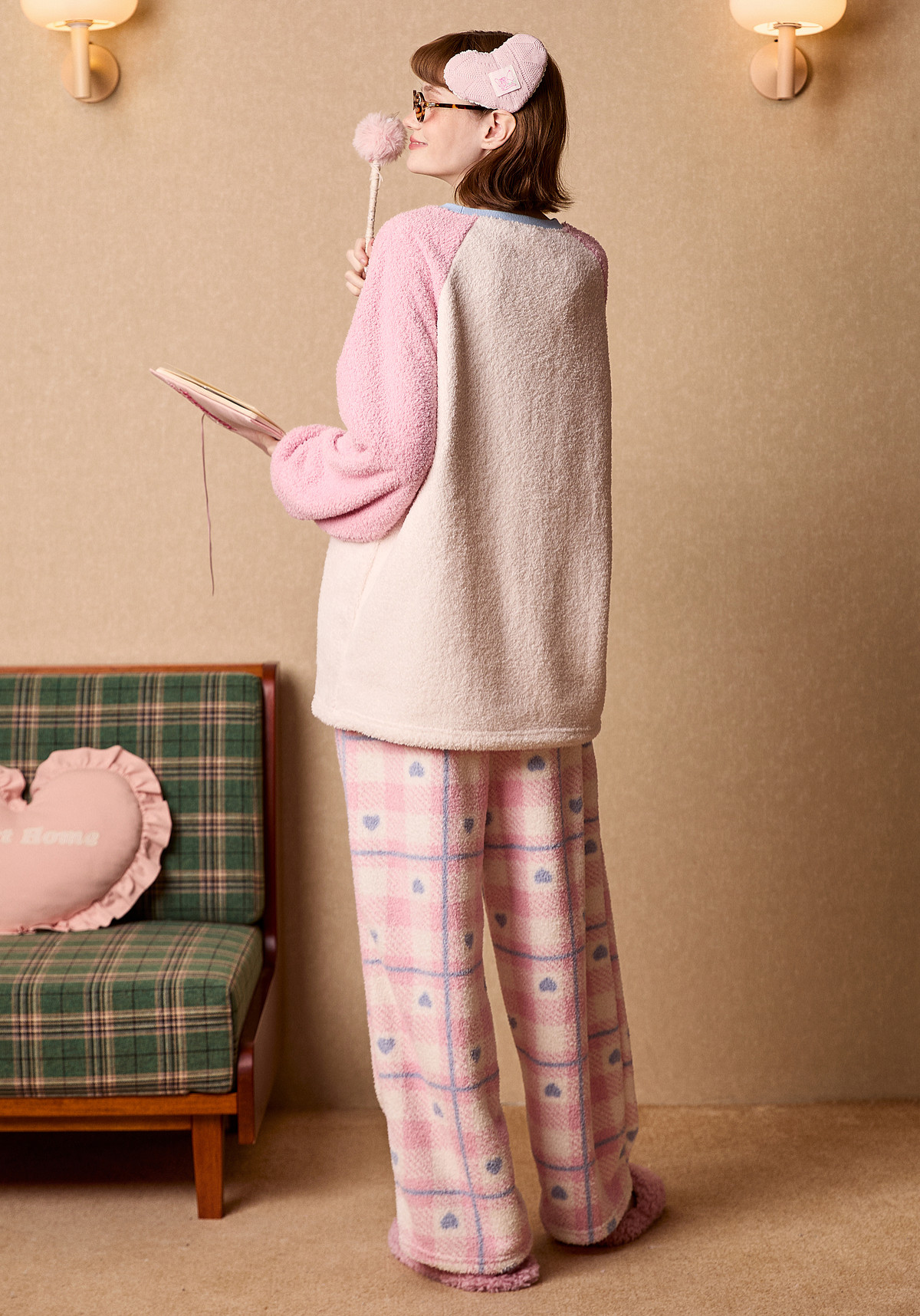 【mikko系列】睡衣女秋冬加绒加厚菱形格外穿家居套装