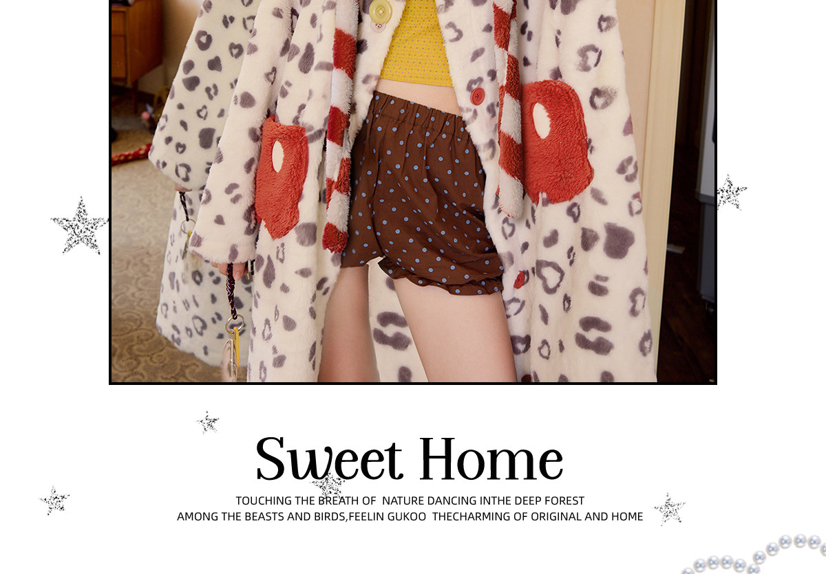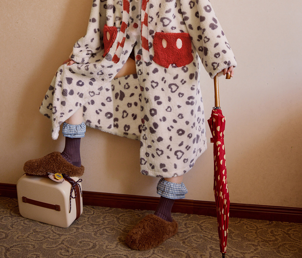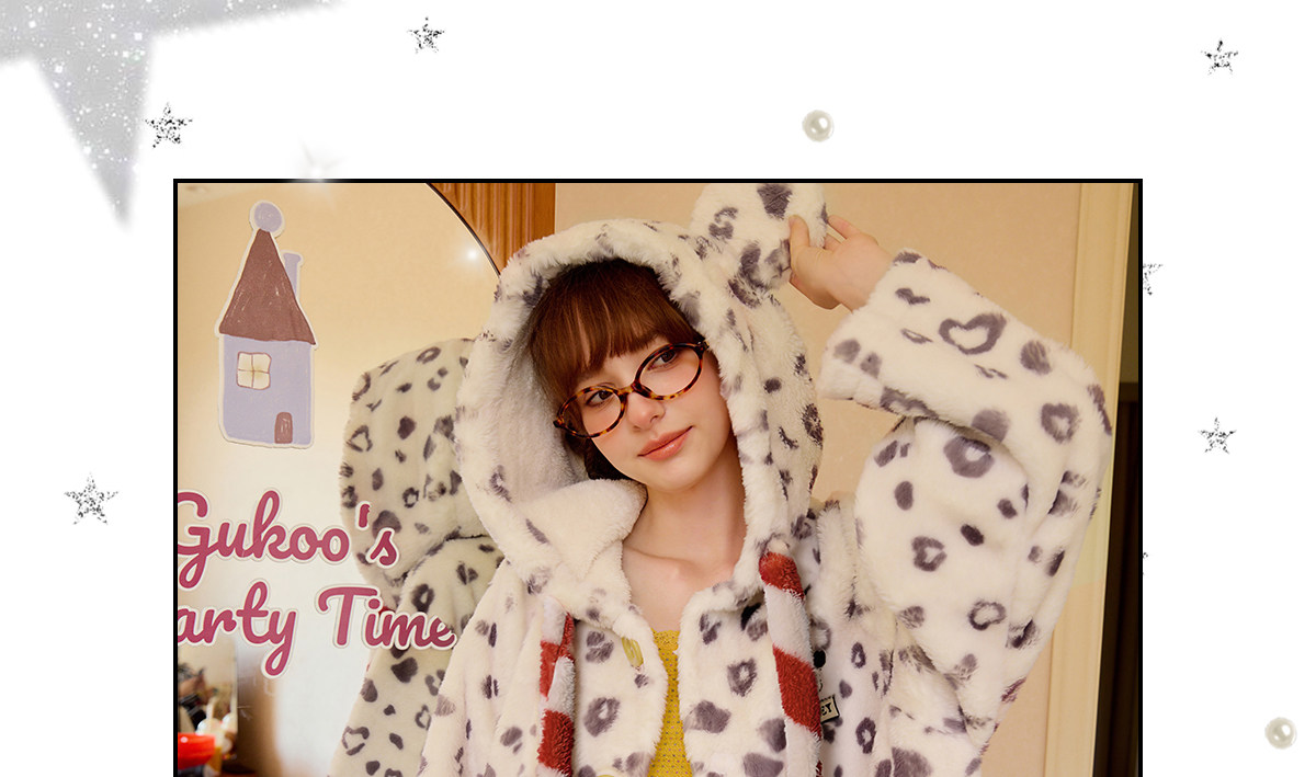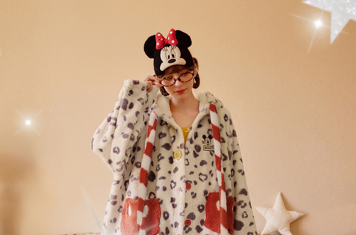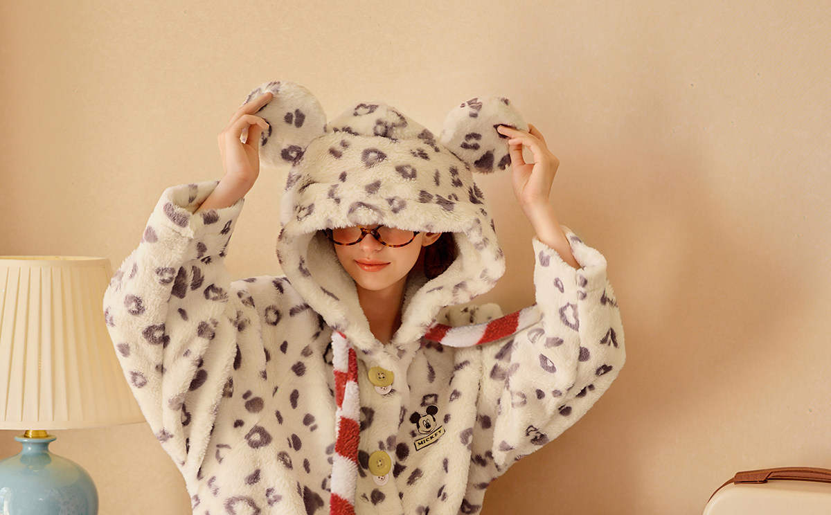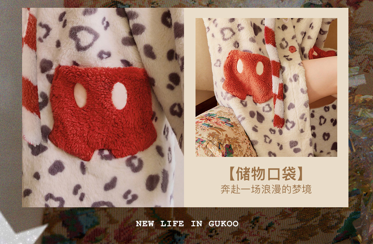 Gukoo/果壳睡袍冬季毛绒保暖新款迪士尼联名豹纹女士家居服睡袍D
