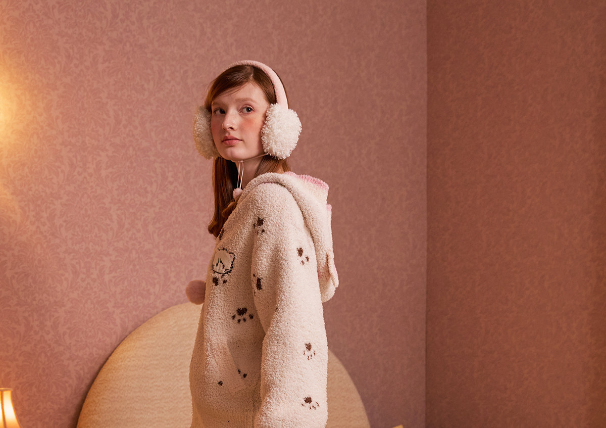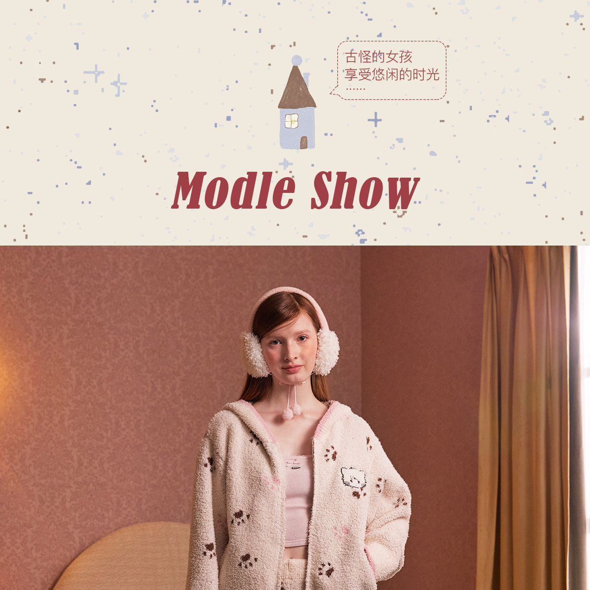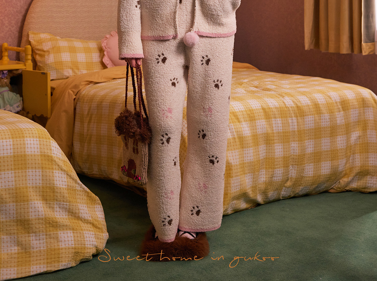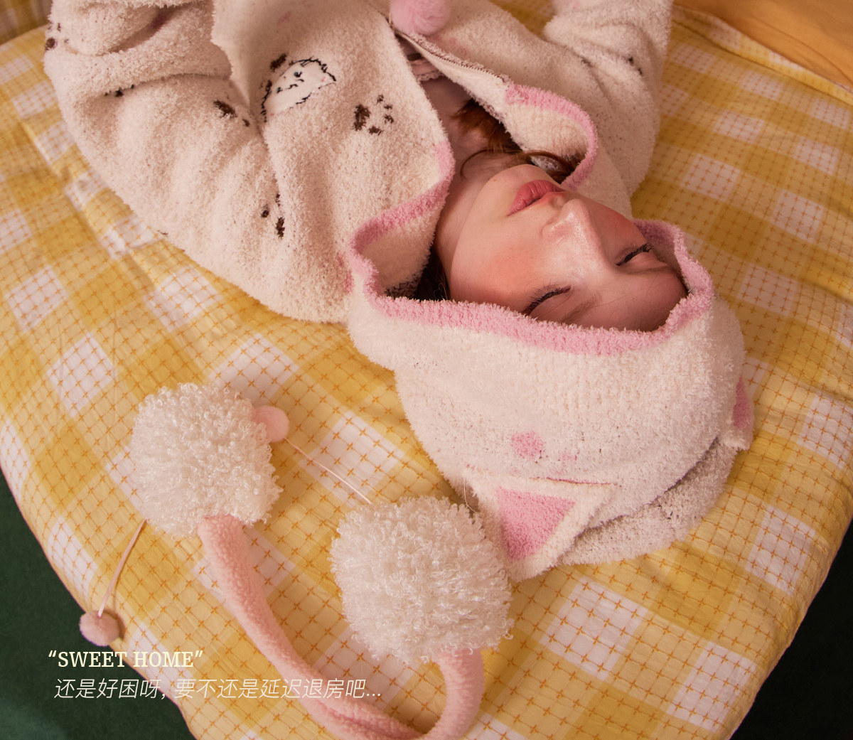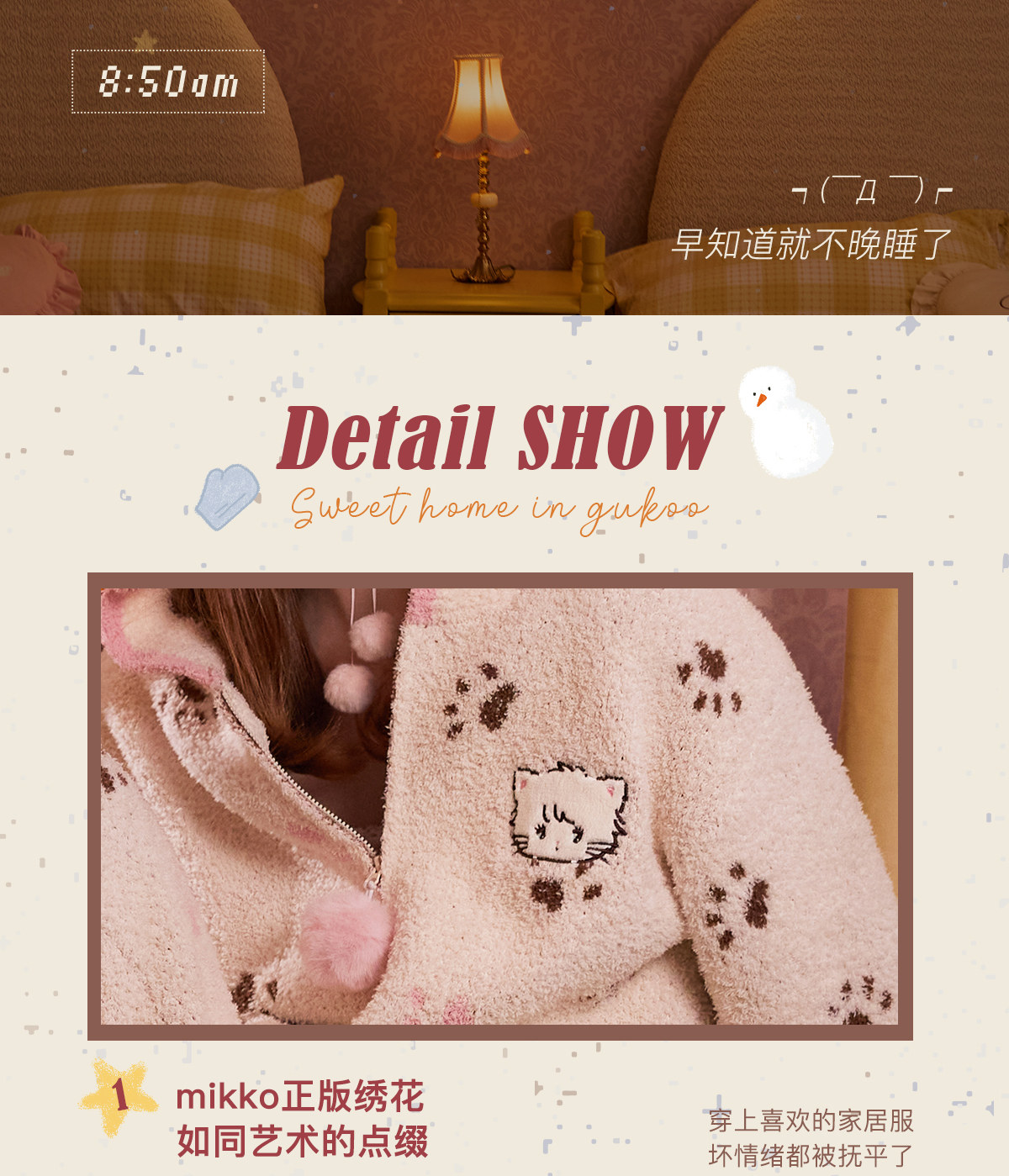 Gukoo/果壳睡衣女冬季半边绒保暖新款mikko联名女士家居服套装D