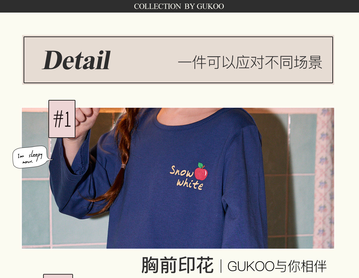 Gukoo/果壳儿童睡衣春秋款白雪公主联名新款纯棉女童家居服套装C