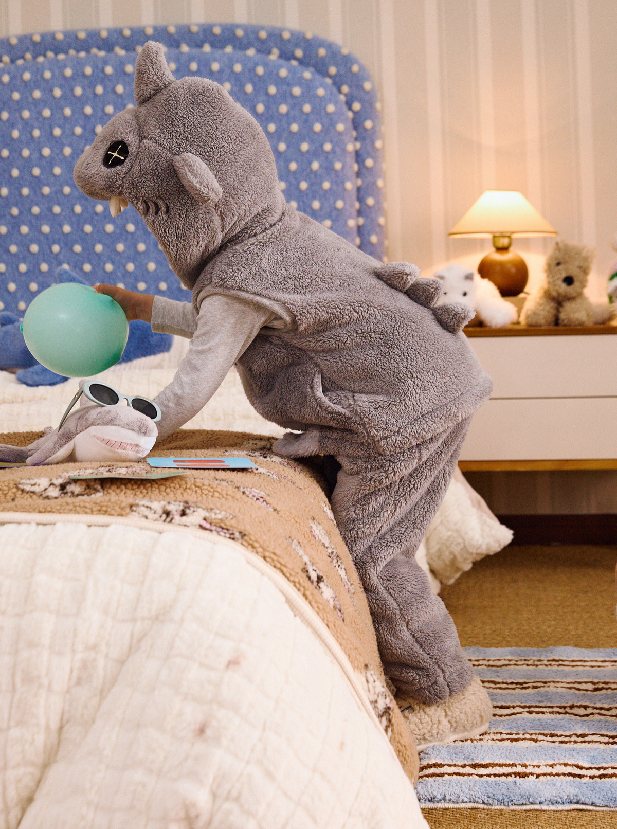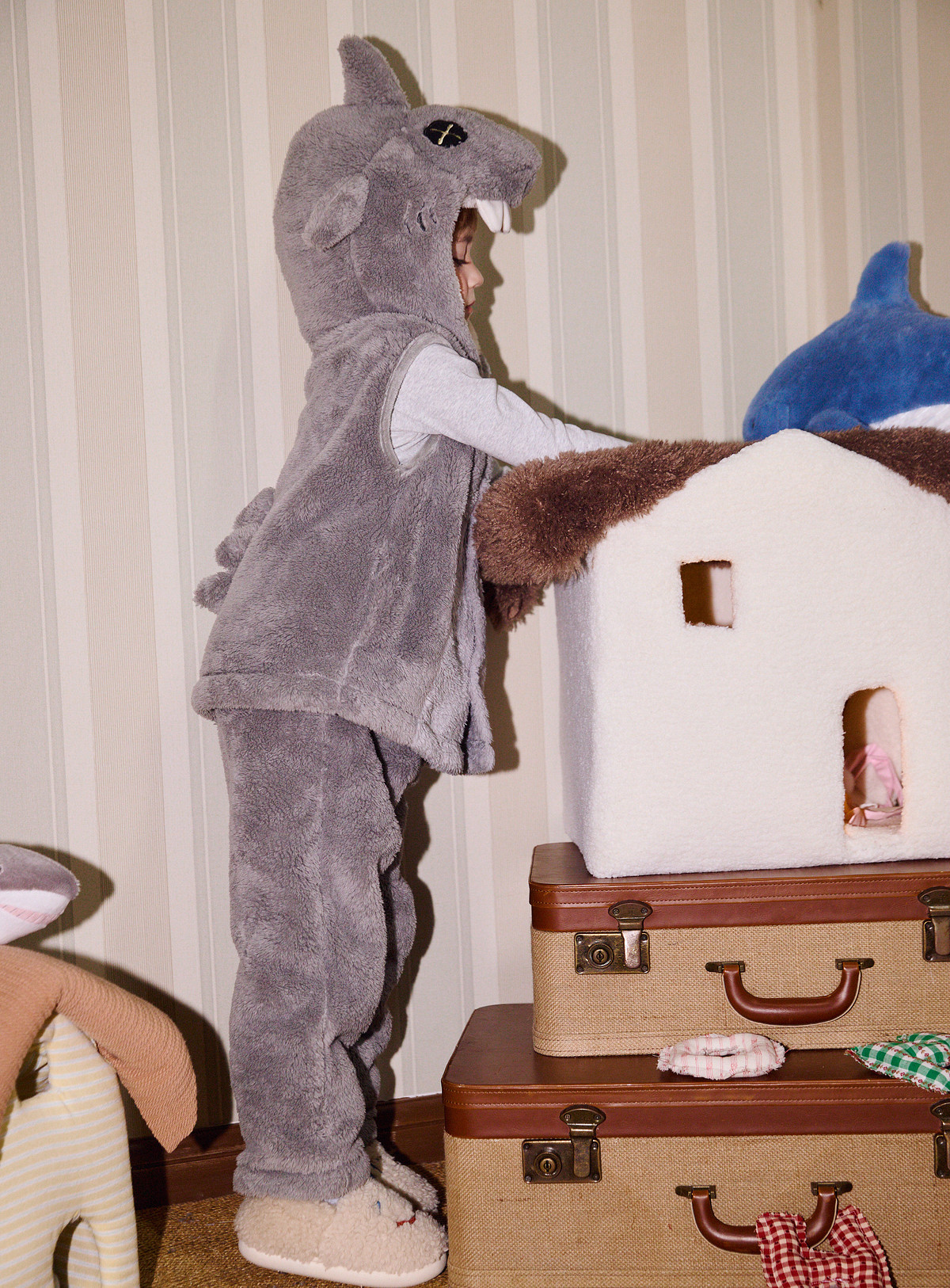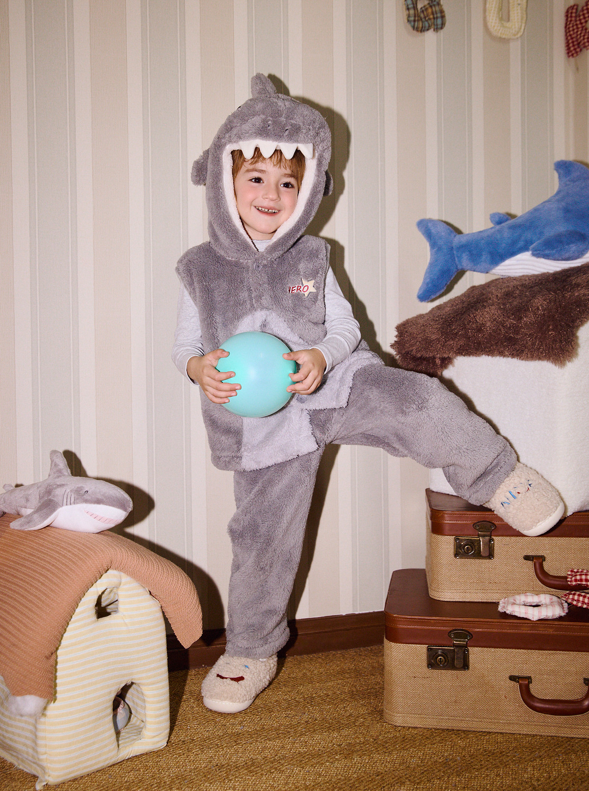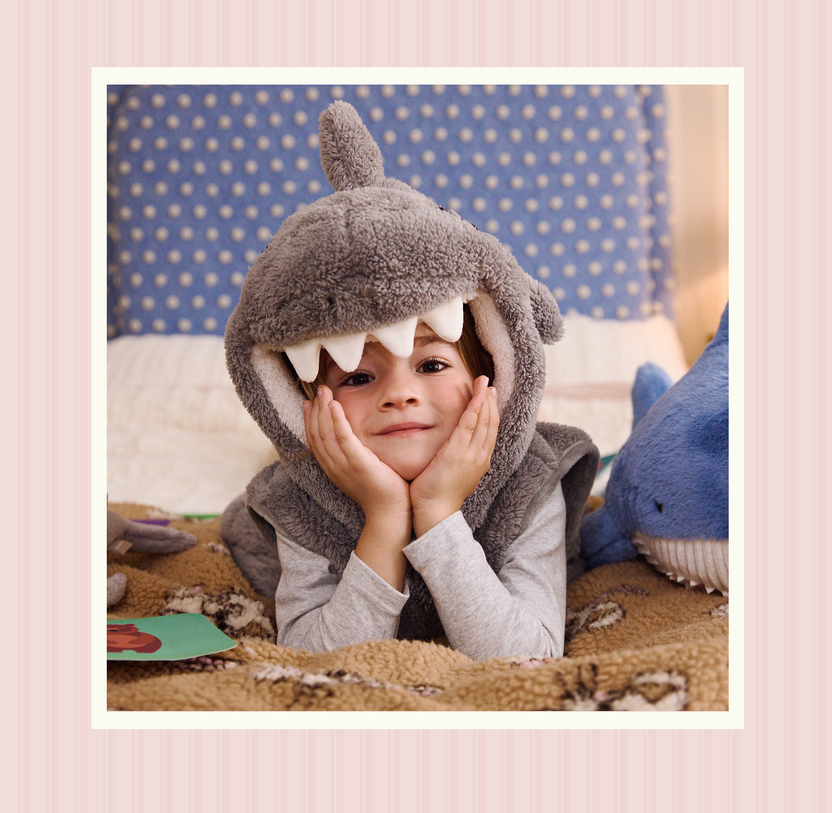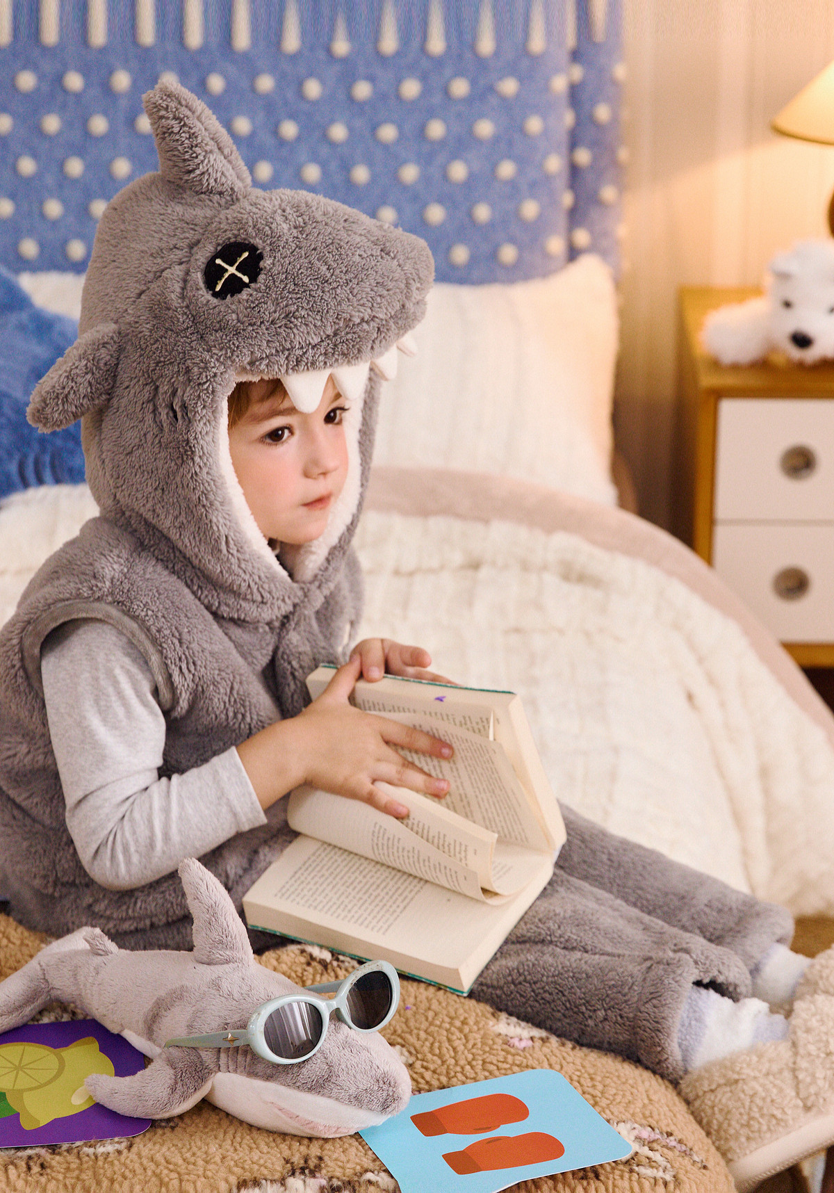 Gukoo/果壳儿童睡衣冬季毛绒保暖新款可爱小鲨鱼男童家居服套装D