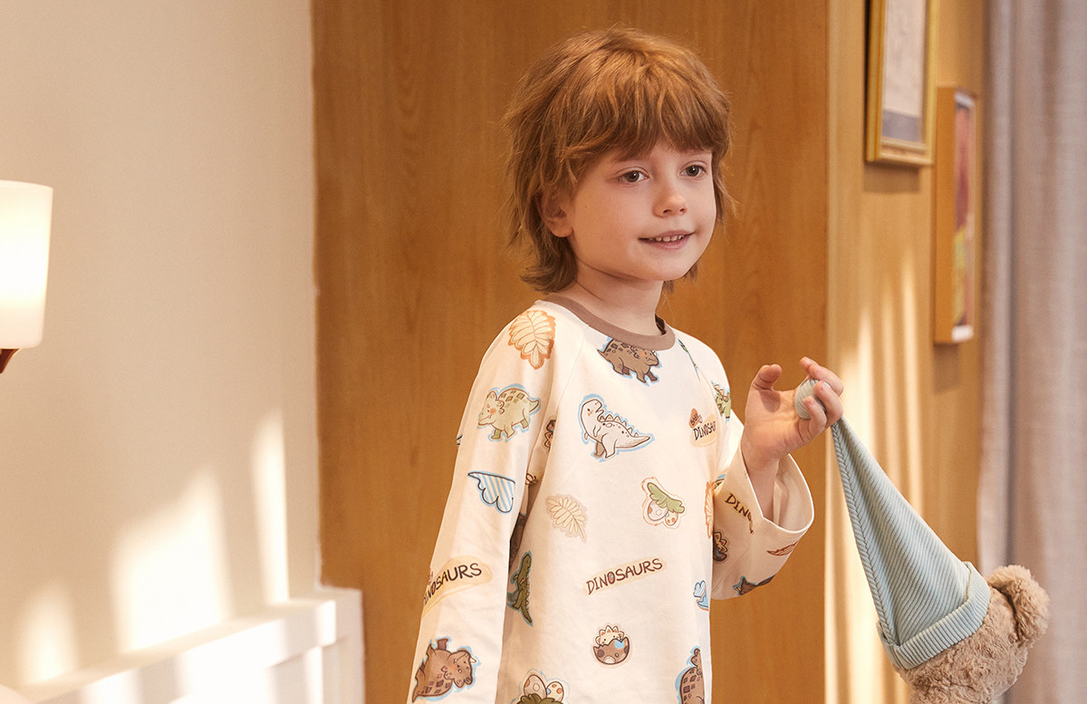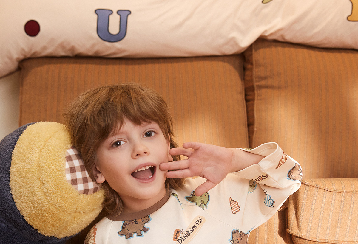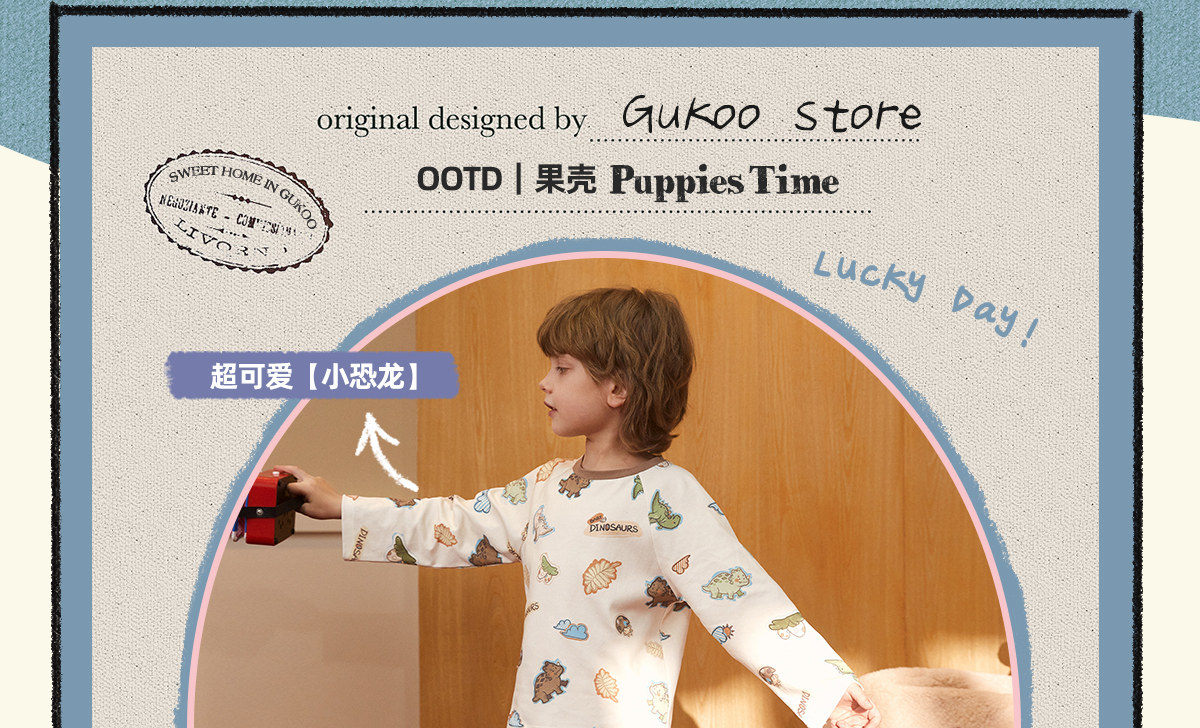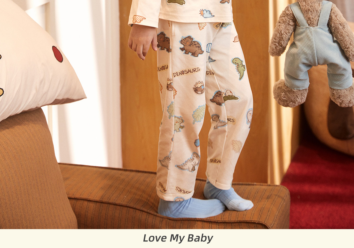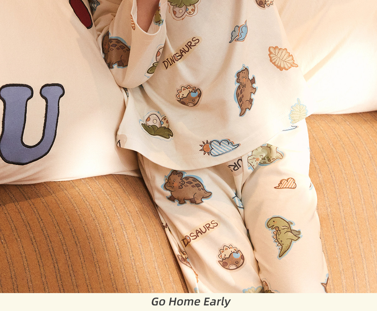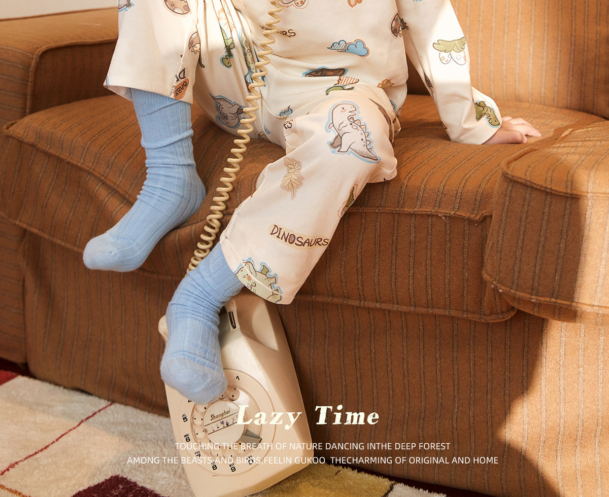 Gukoo/果壳睡衣儿童春秋款小恐龙印花新款可爱男童家居服套装A
