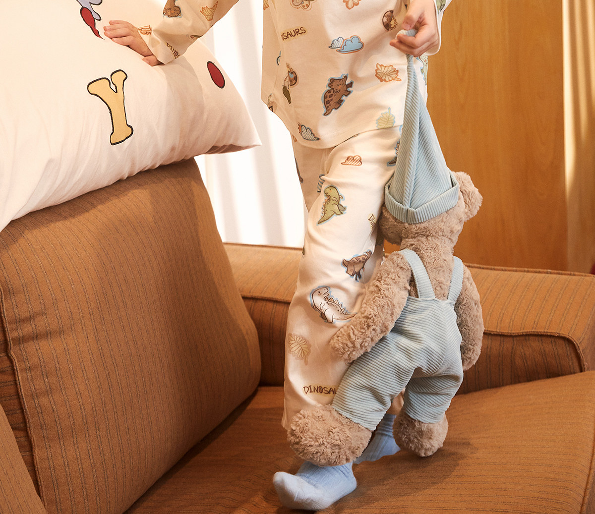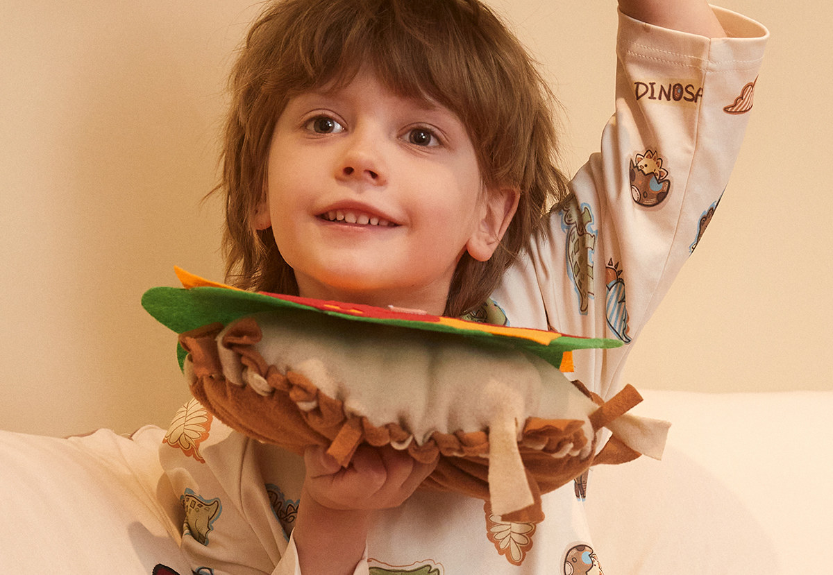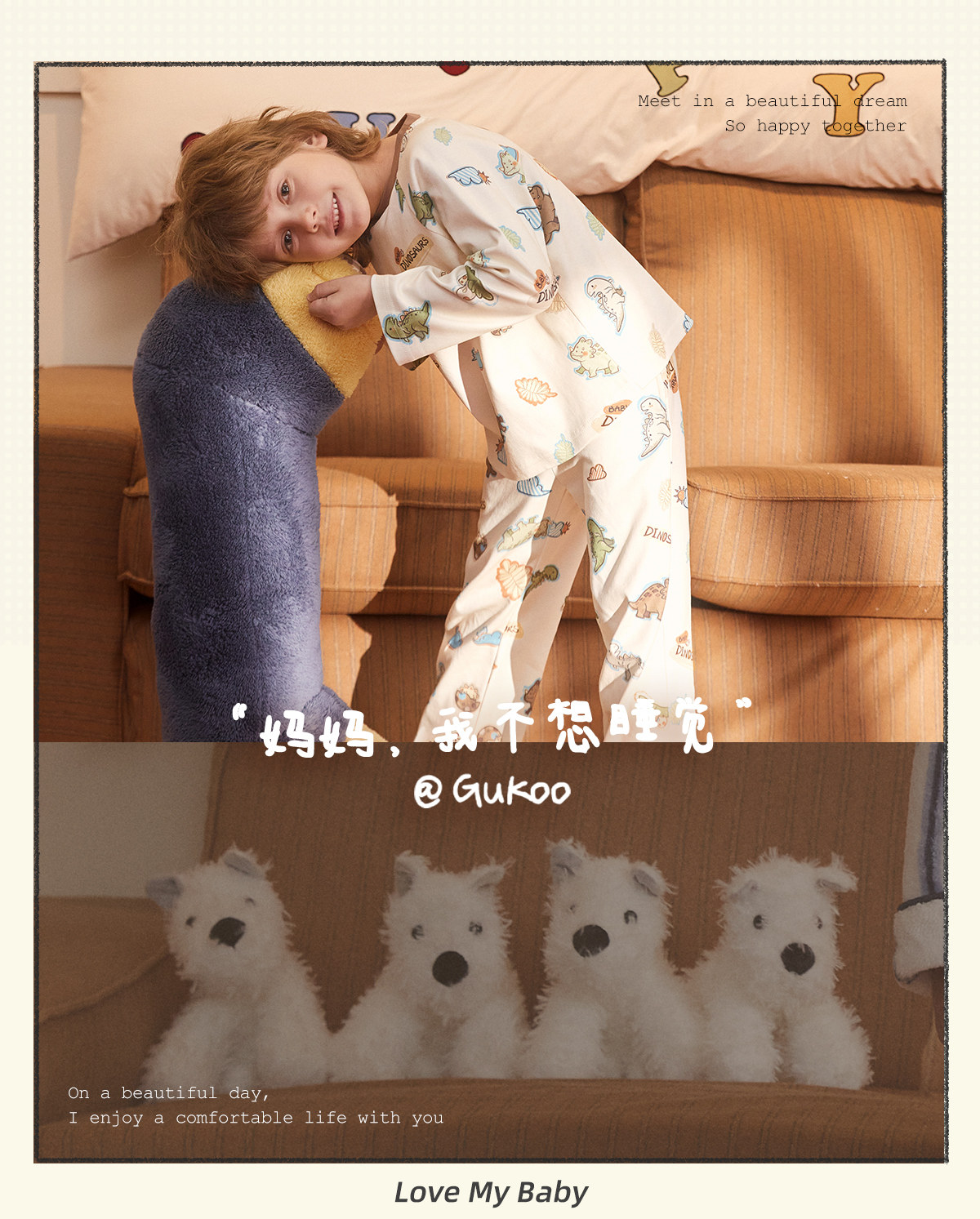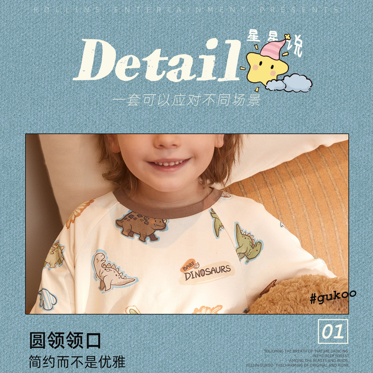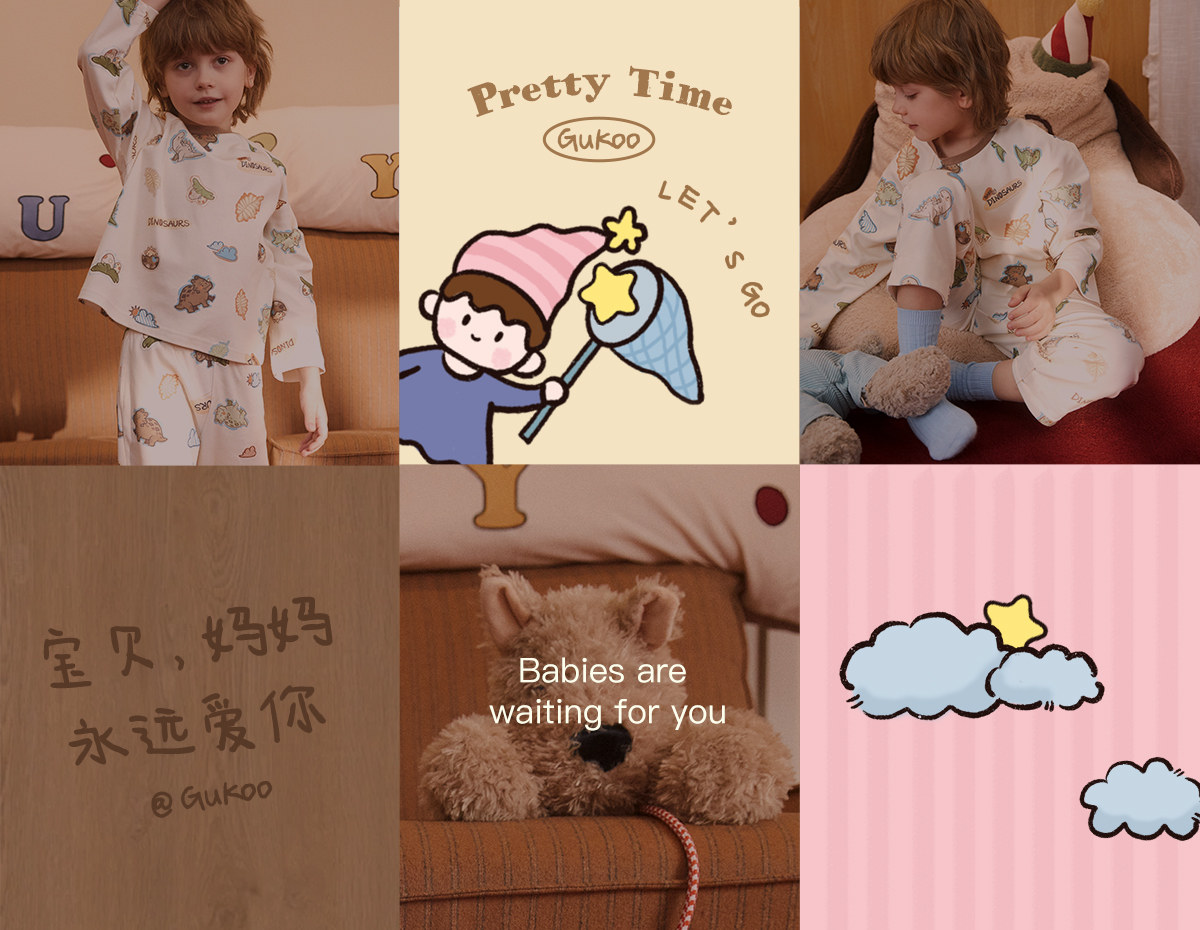 Gukoo/果壳睡衣儿童春秋款小恐龙印花新款可爱男童家居服套装A