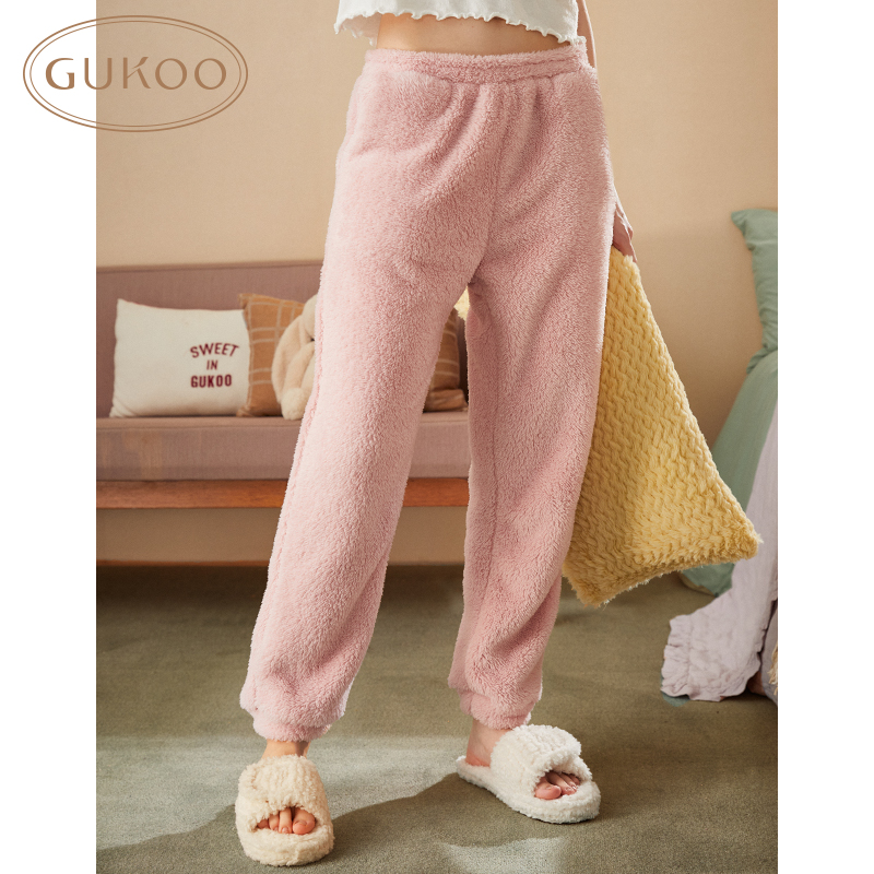 Gukoo/果壳冬珊瑚绒保暖弹力舒适女式家居休闲裤睡裤简约可外穿