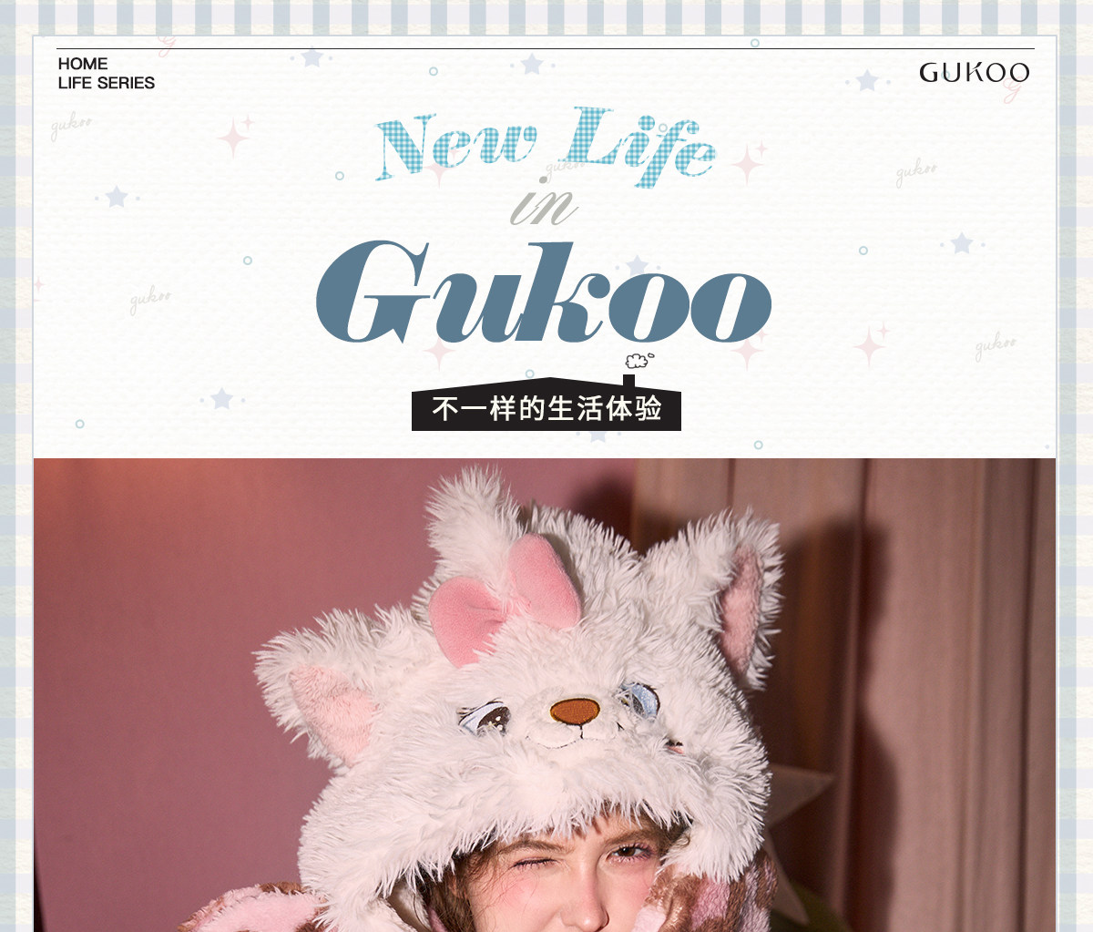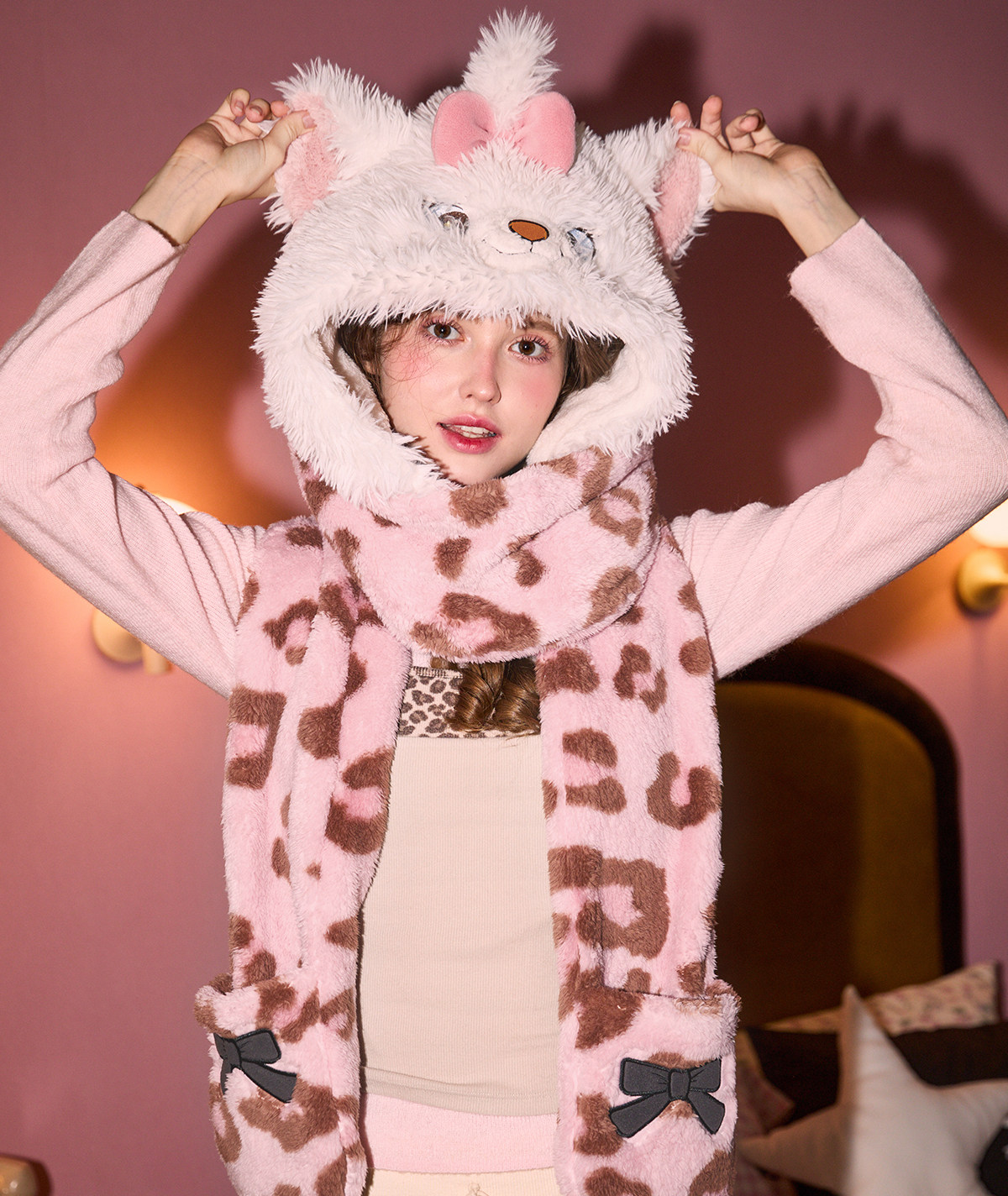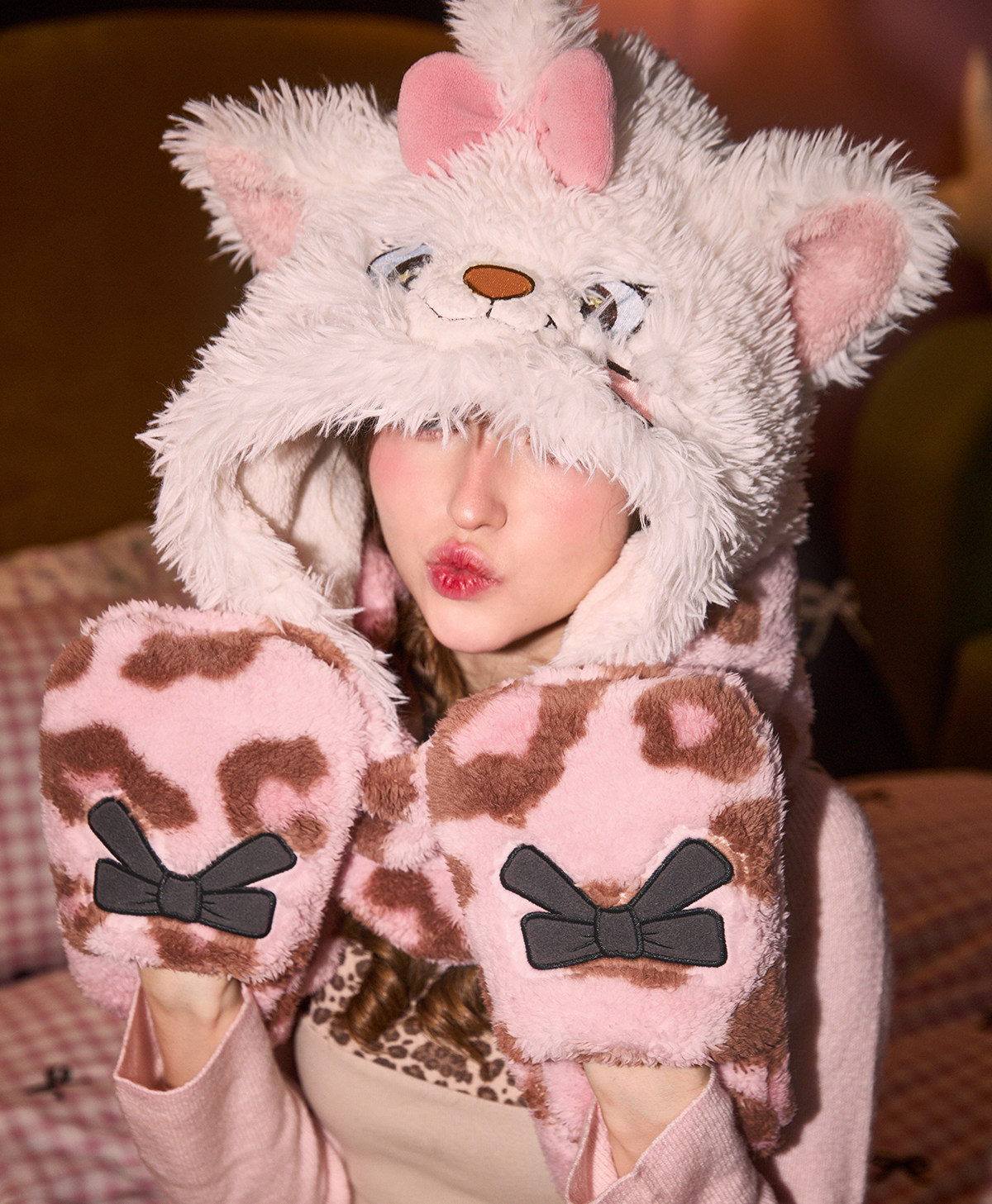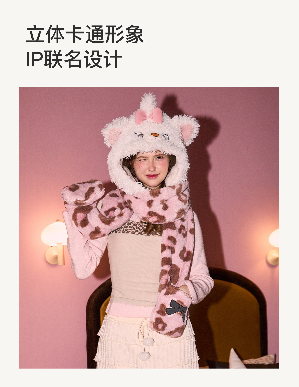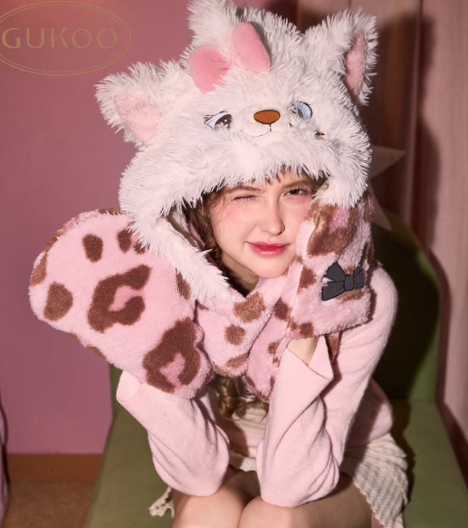 Gukoo/果壳帽子冬季毛绒保暖围脖手套一体新款玛丽猫联名女士帽子