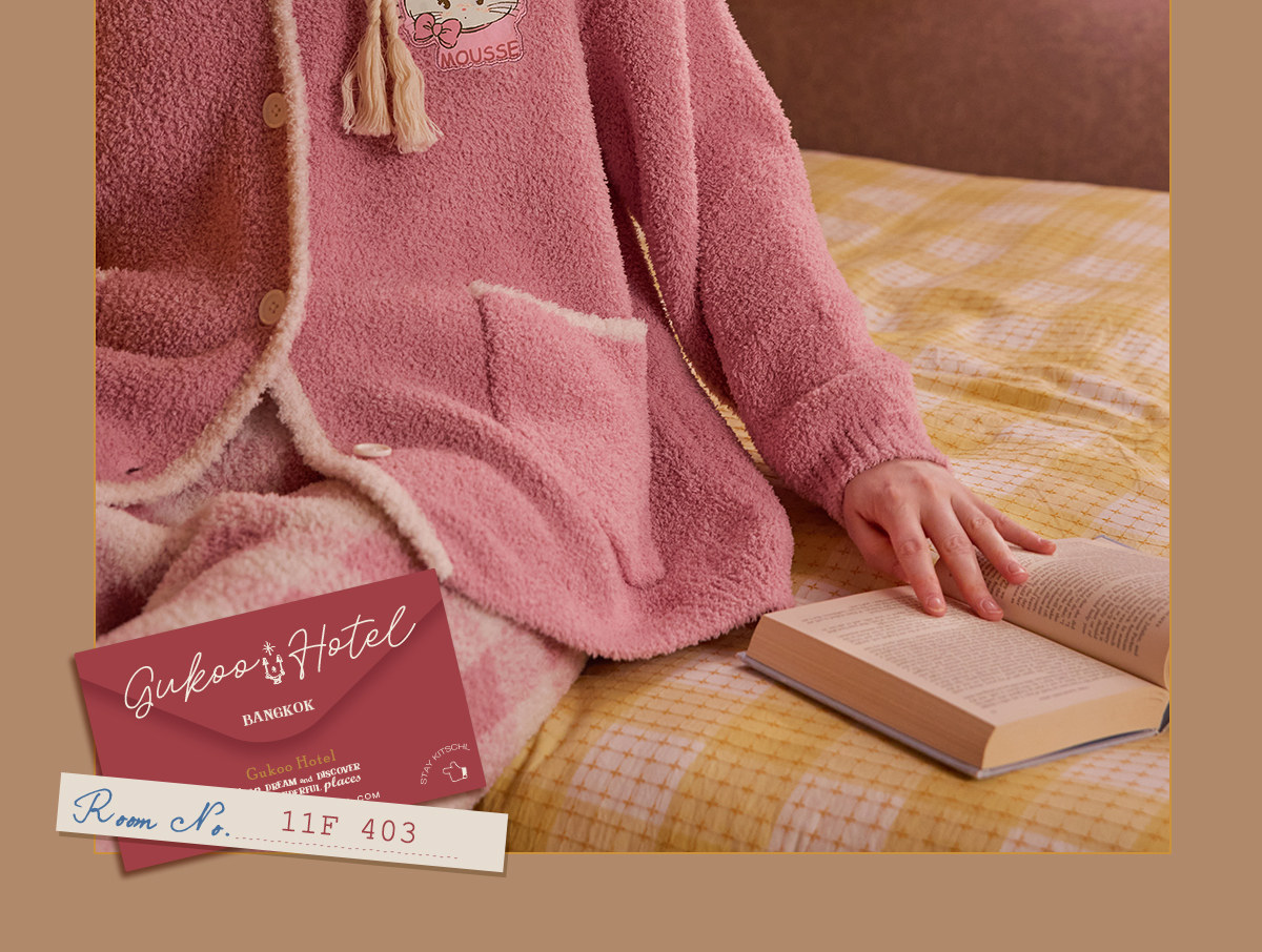 Gukoo/果壳睡衣女冬季mikko联名新款半边绒保暖女士家居服套装D