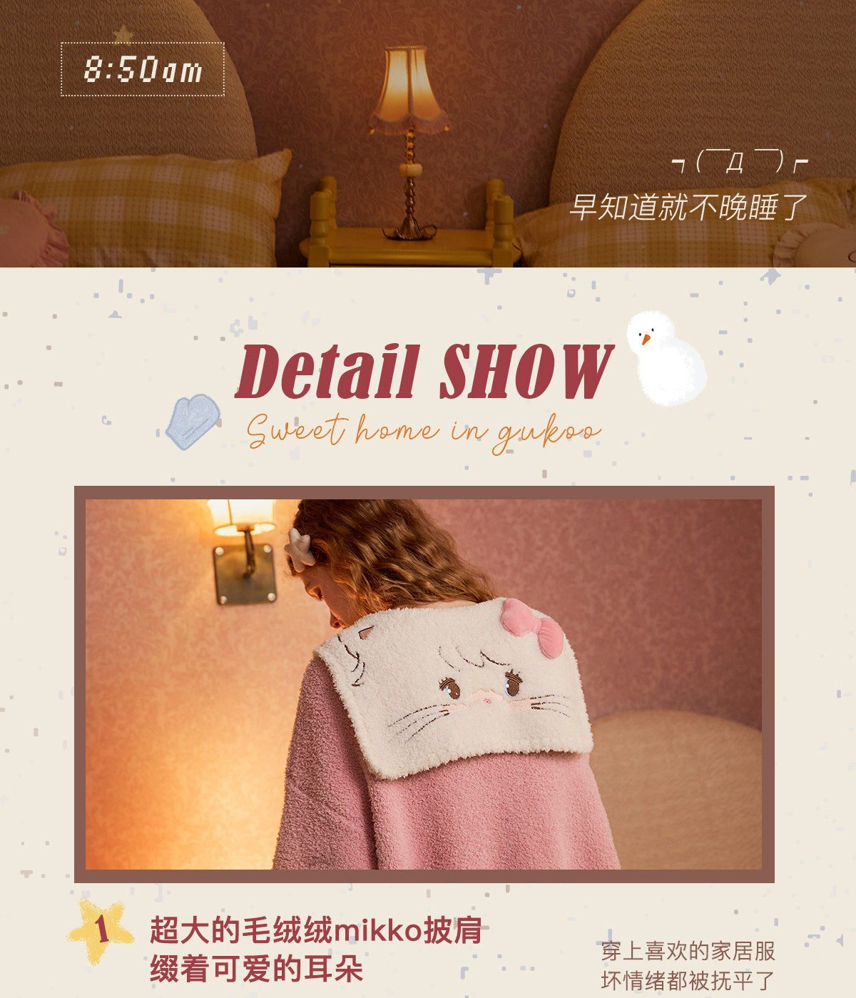 Gukoo/果壳玛丽猫连帽可爱加厚冬款睡袍卡通长款可外穿保暖