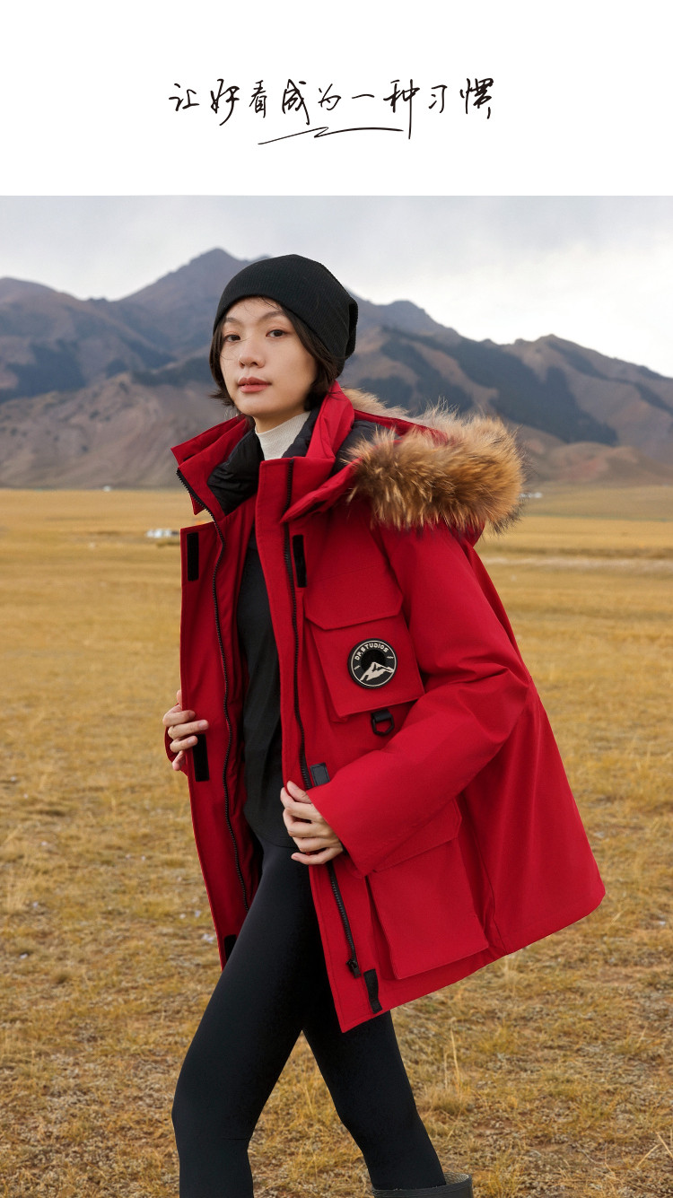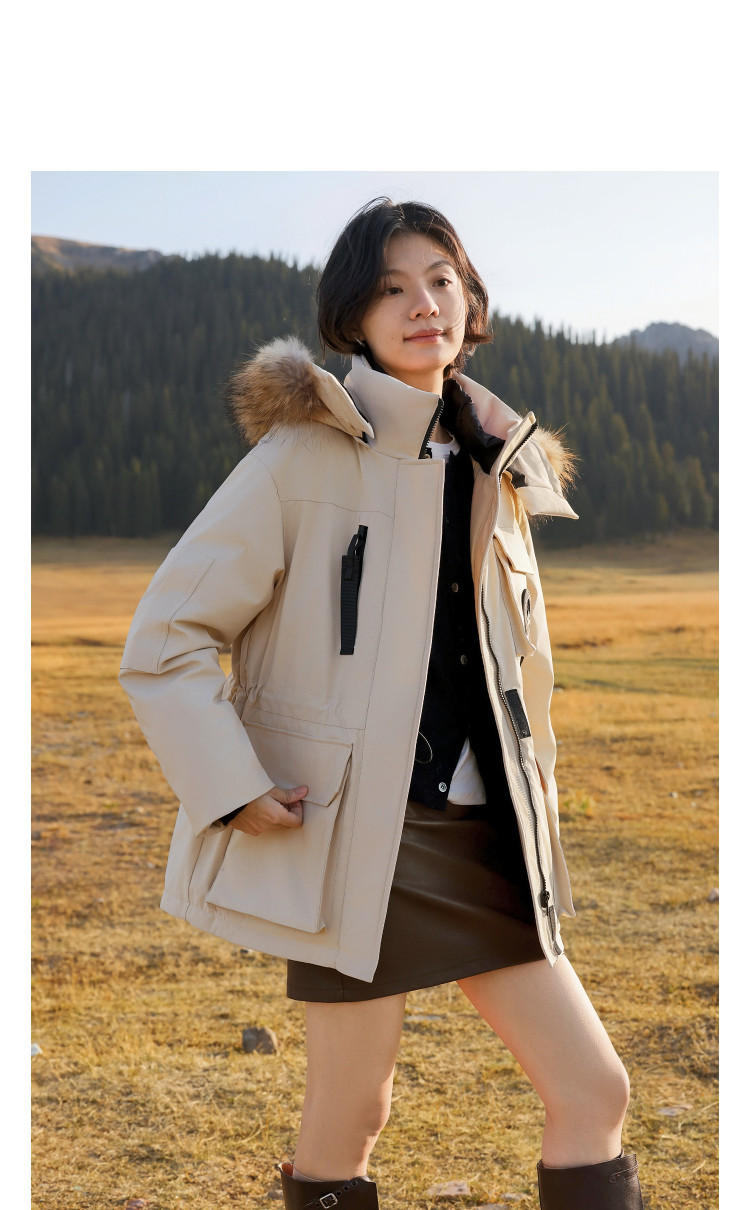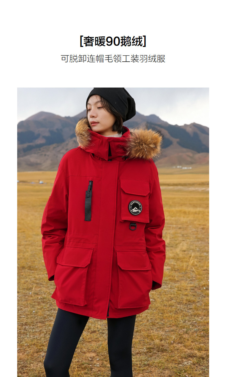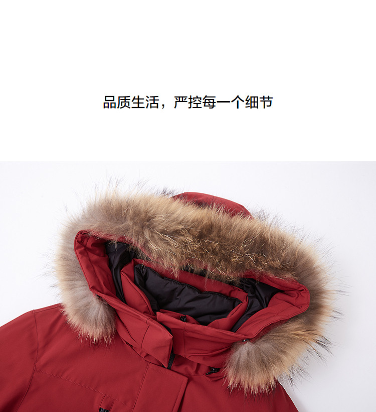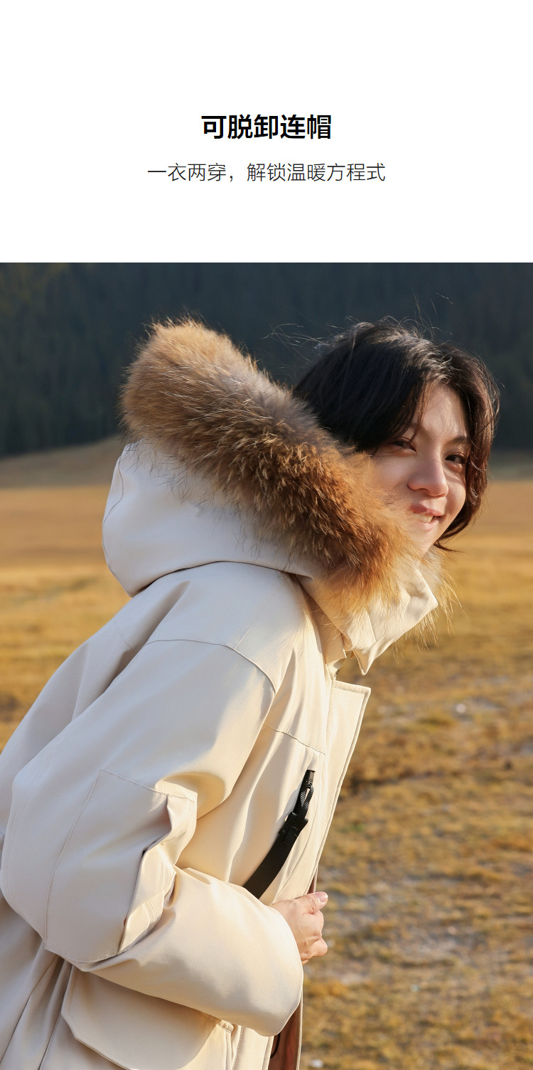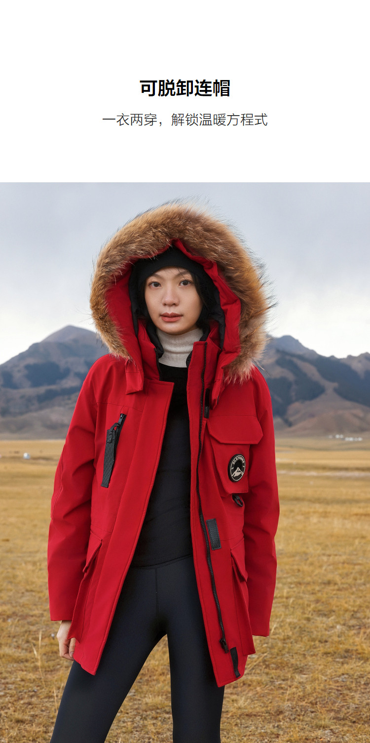 德玛纳【双旦三防系列】冬季90鹅绒可脱卸连帽毛领工装中长女式羽绒服G540421130015
