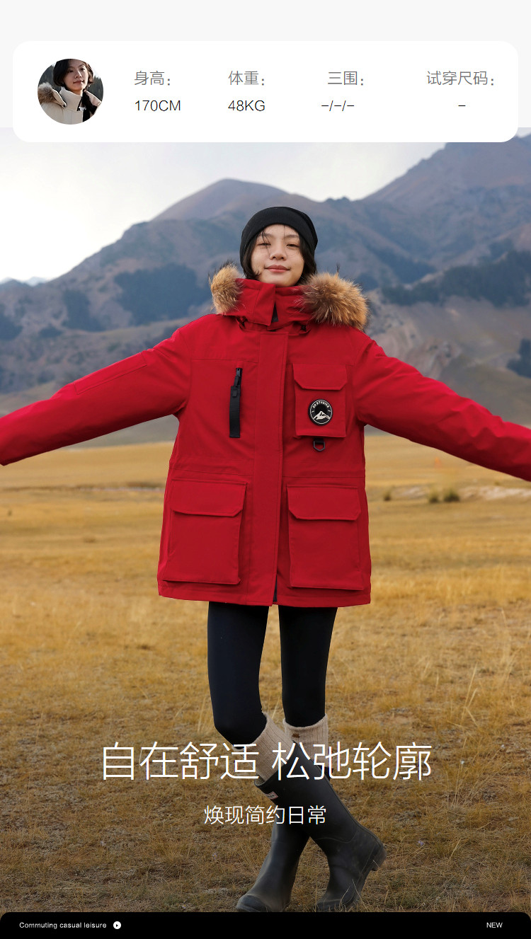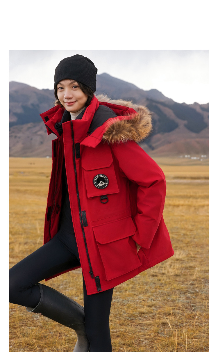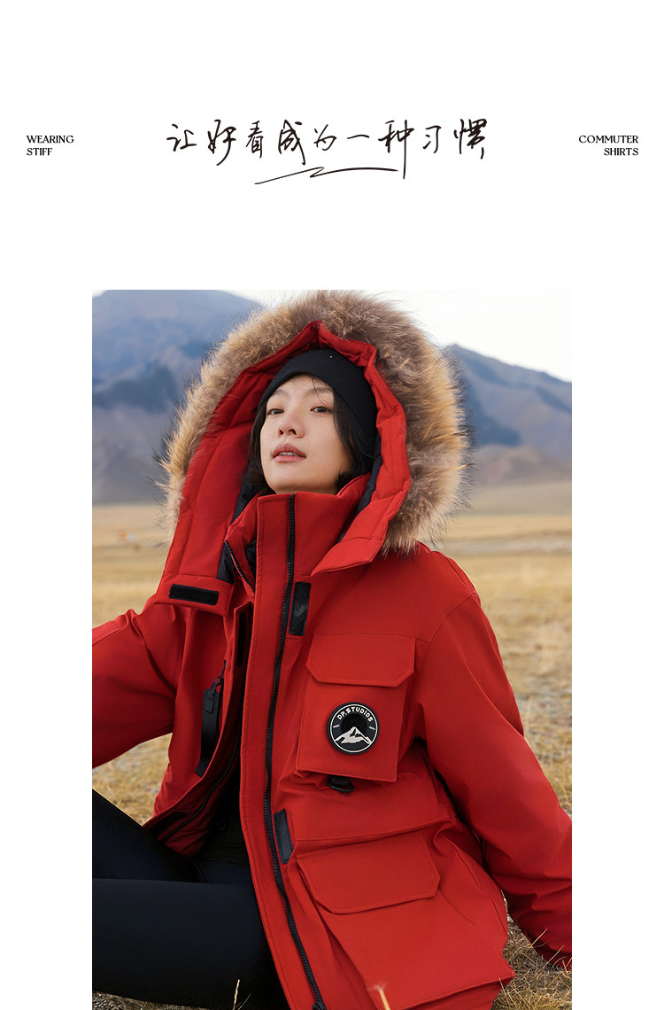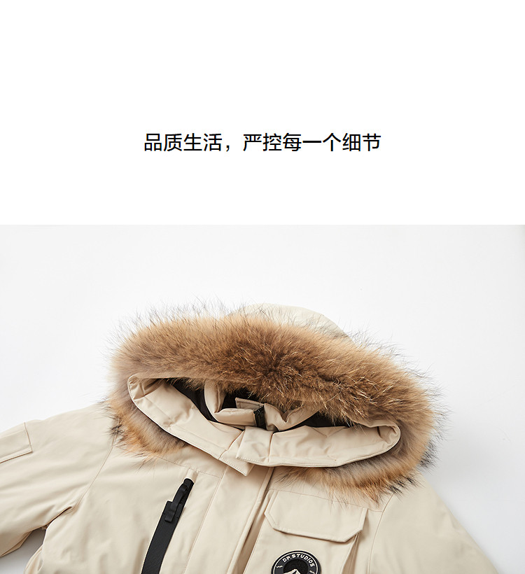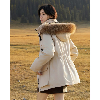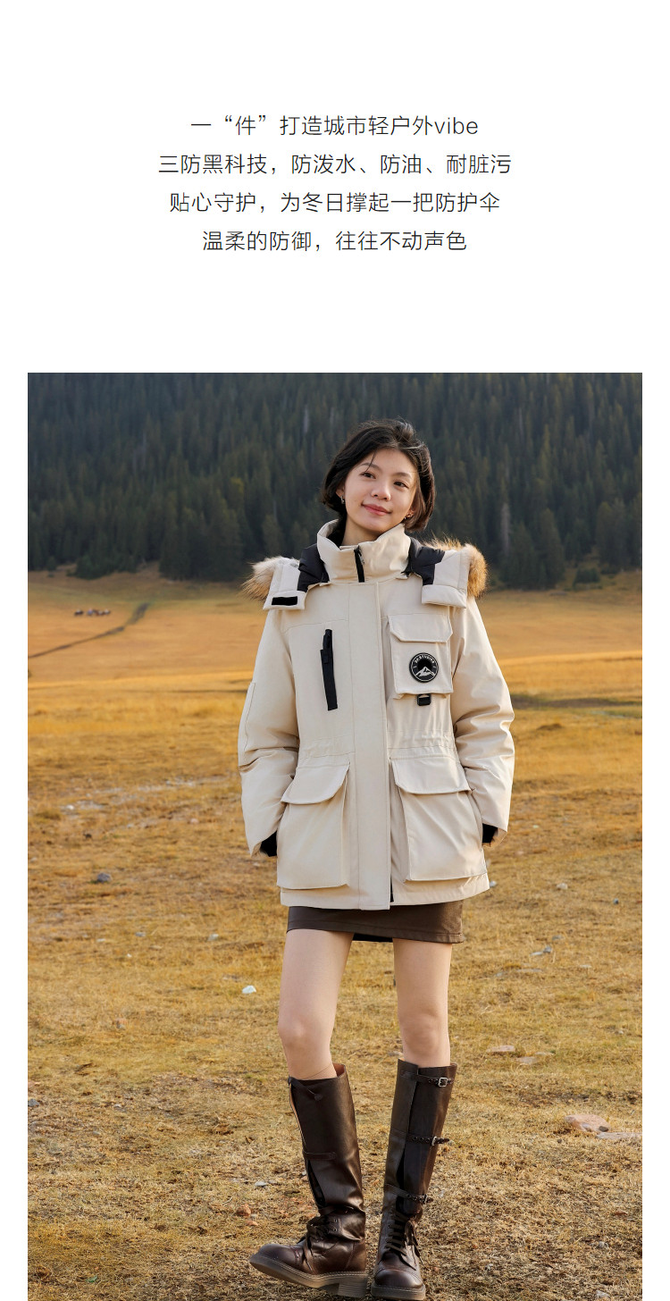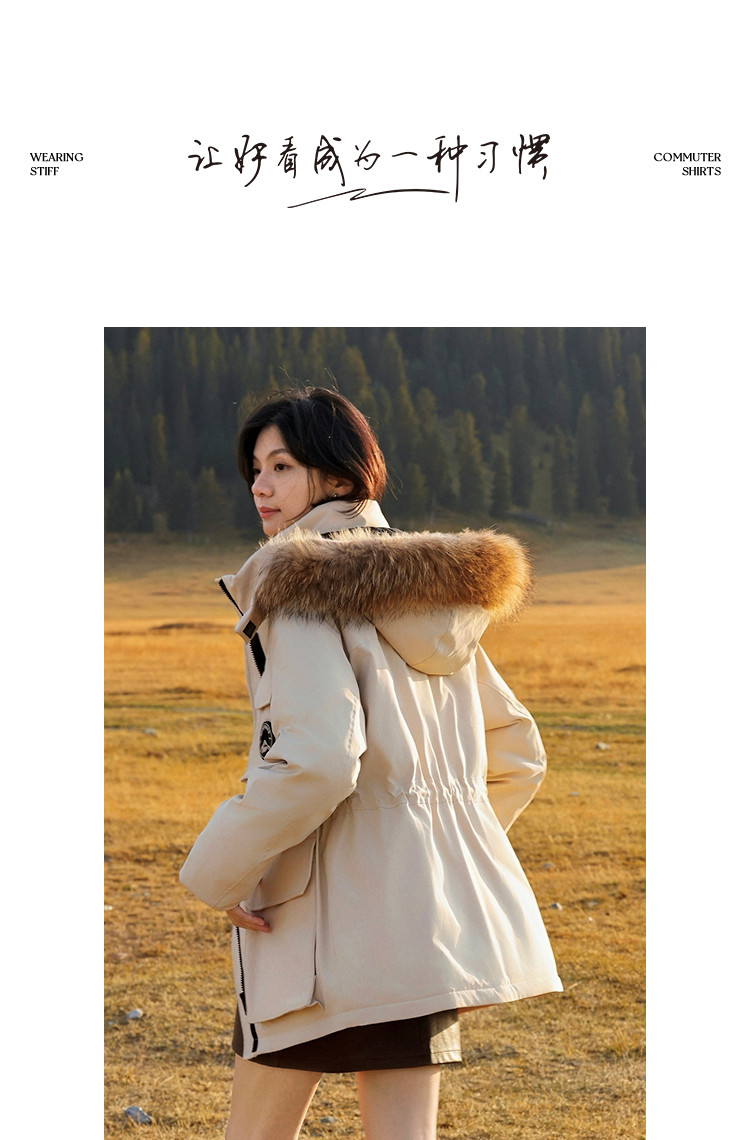 德玛纳【双旦三防系列】冬季90鹅绒可脱卸连帽毛领工装中长女式羽绒服G540421130015