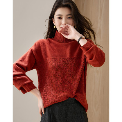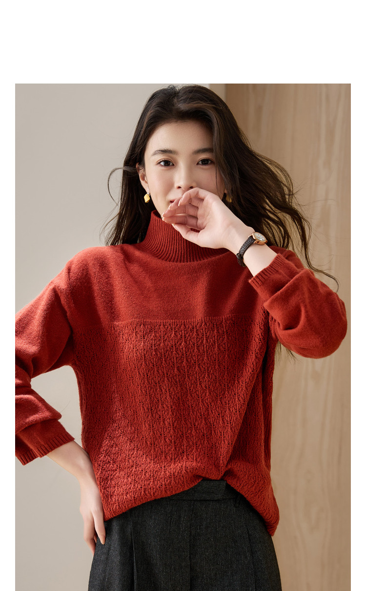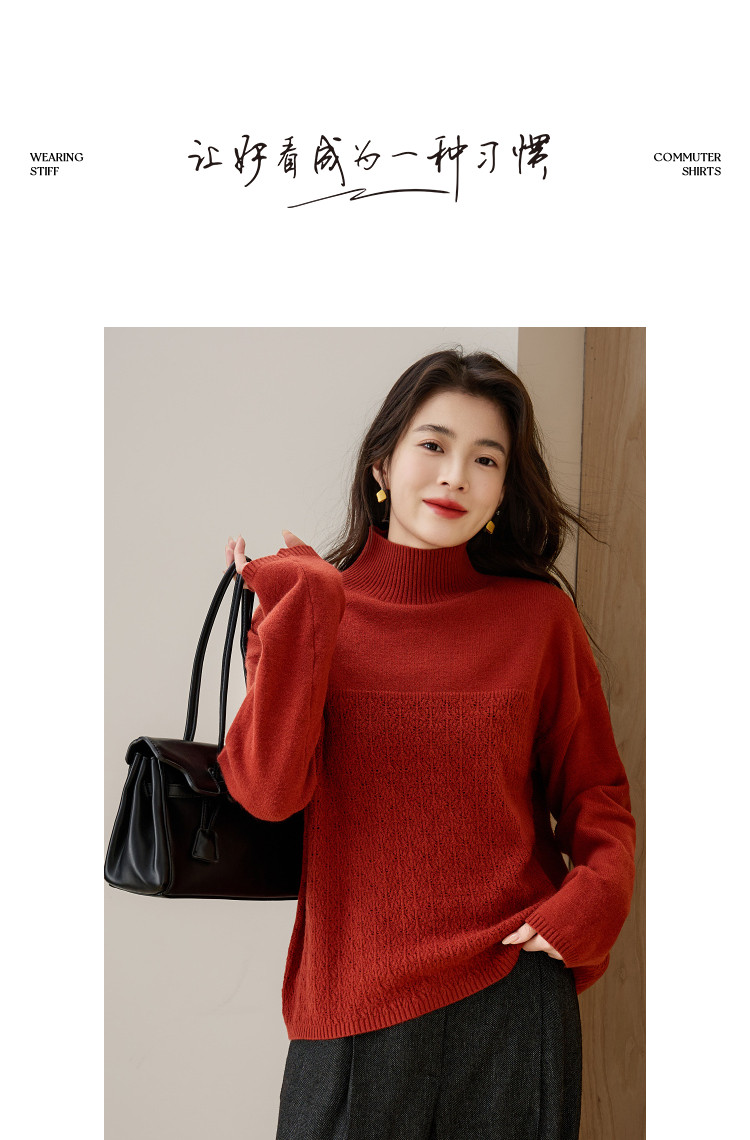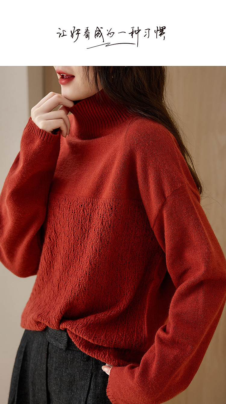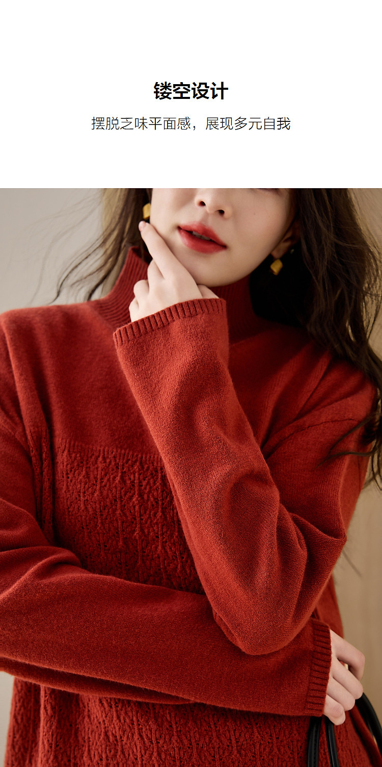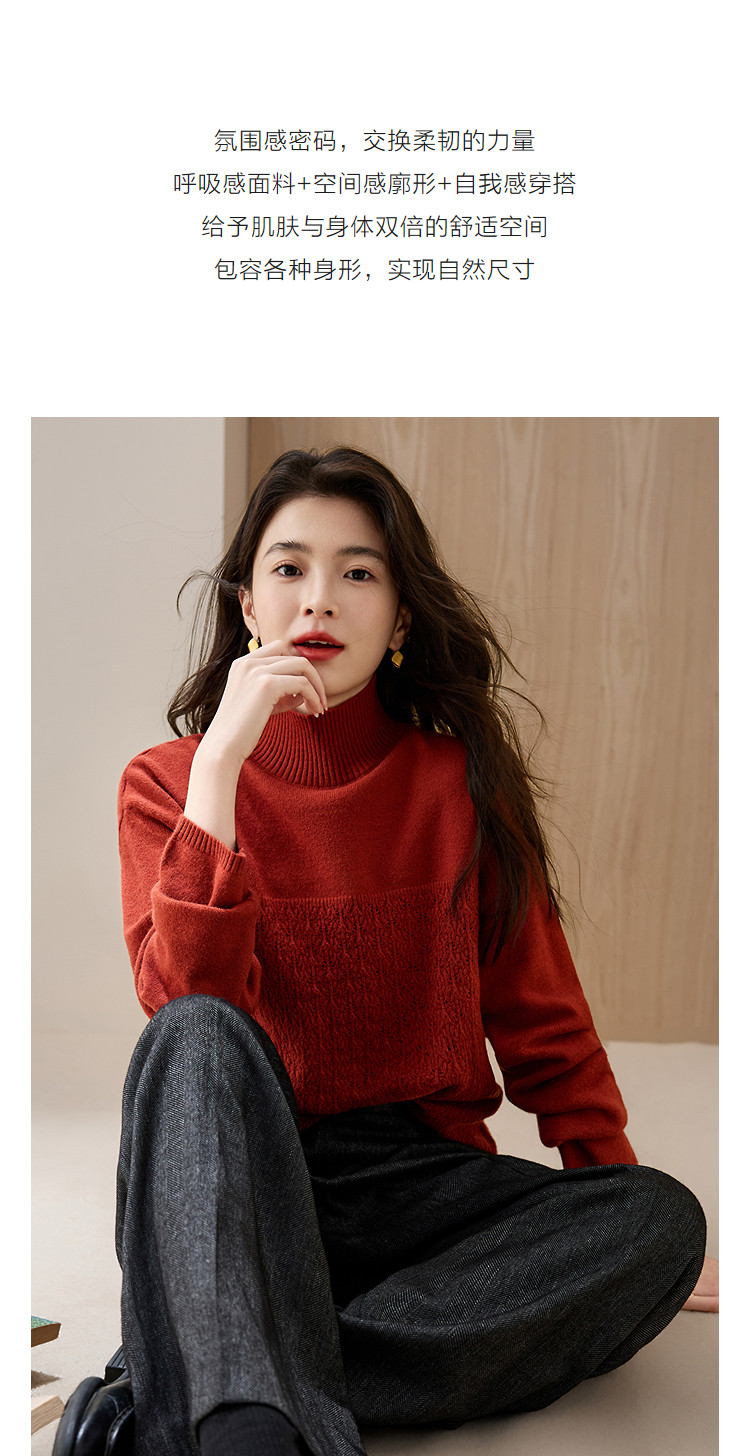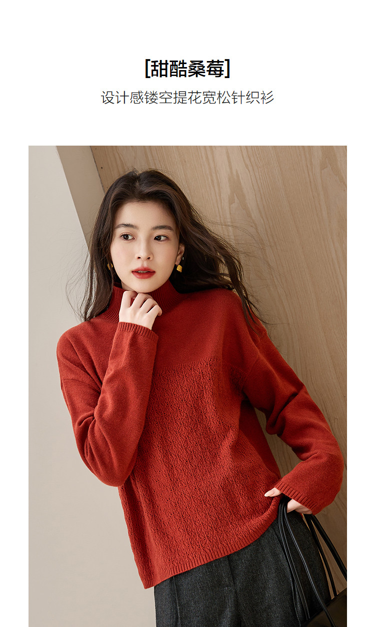 德玛纳【甜酷桑莓】冬季高领提花长袖线衫设计感镂空宽松针织衫女上衣G540420342402