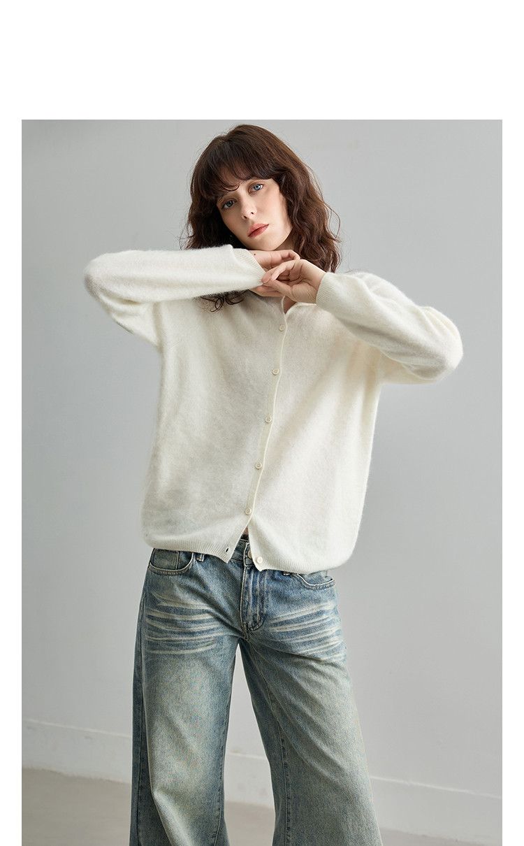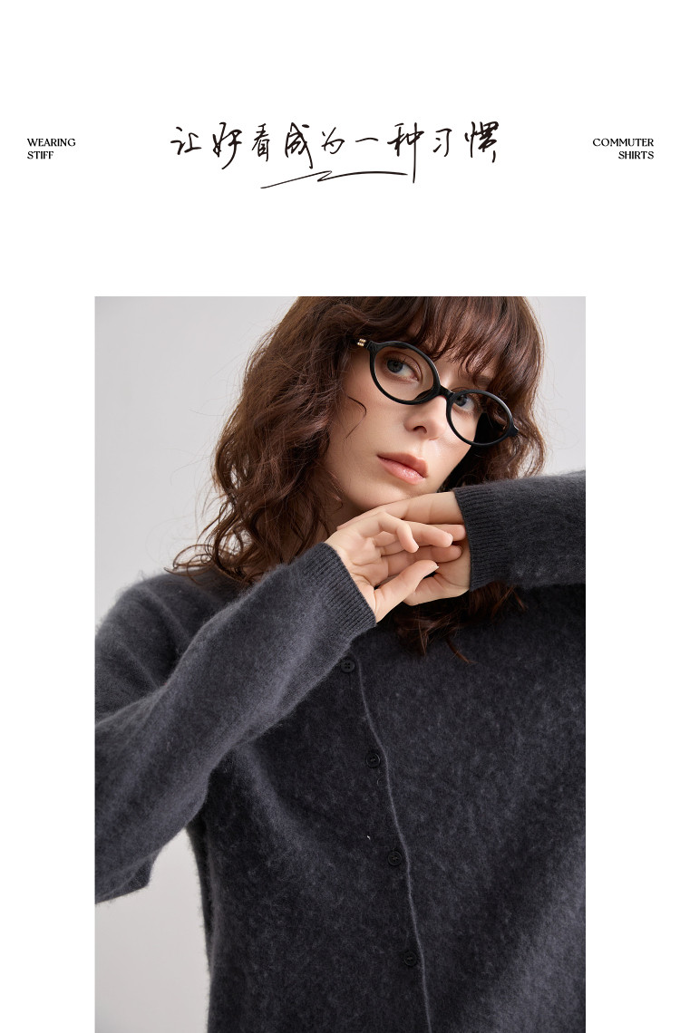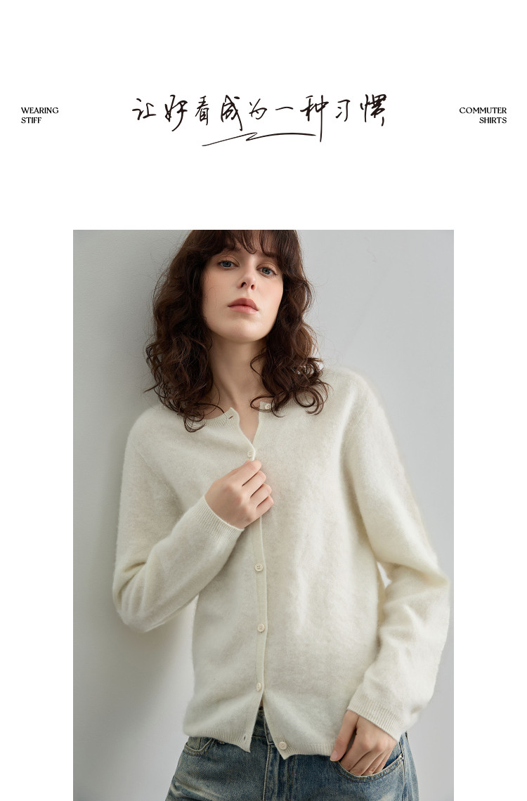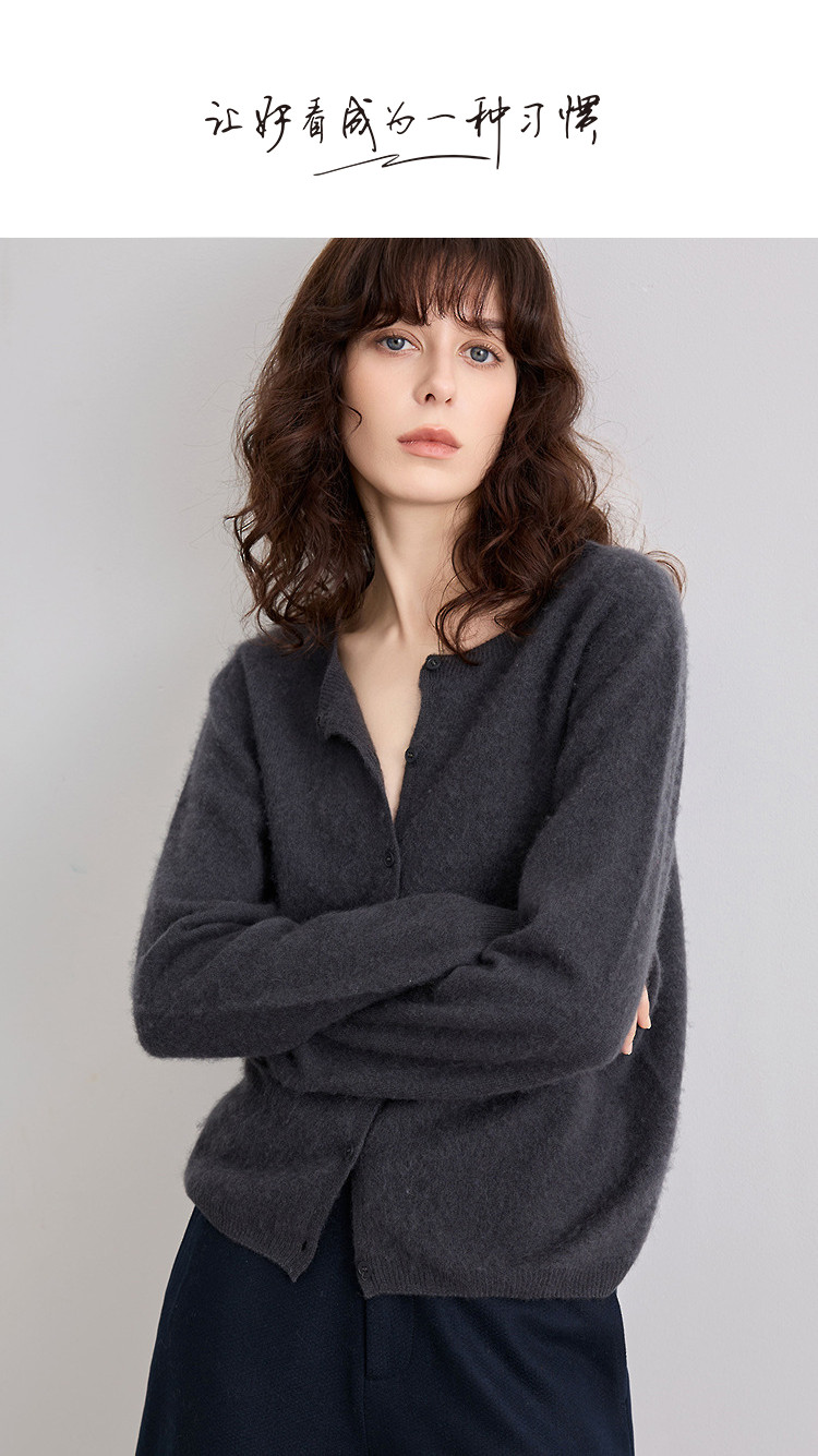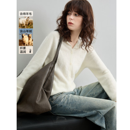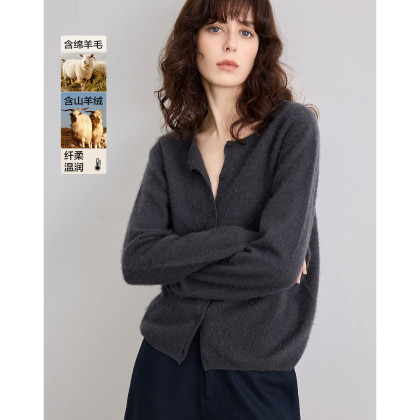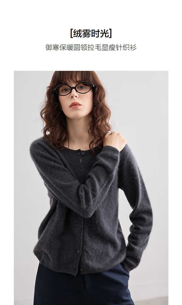 德玛纳【绵羊毛山羊绒混纺】冬季御寒保暖圆领拉毛线衫显瘦针织衫女高级G541320357902