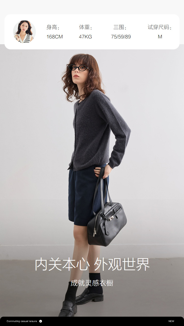 2024秋冬女圆领拼色开衫毛线衫简约百搭短款上衣设计感休闲