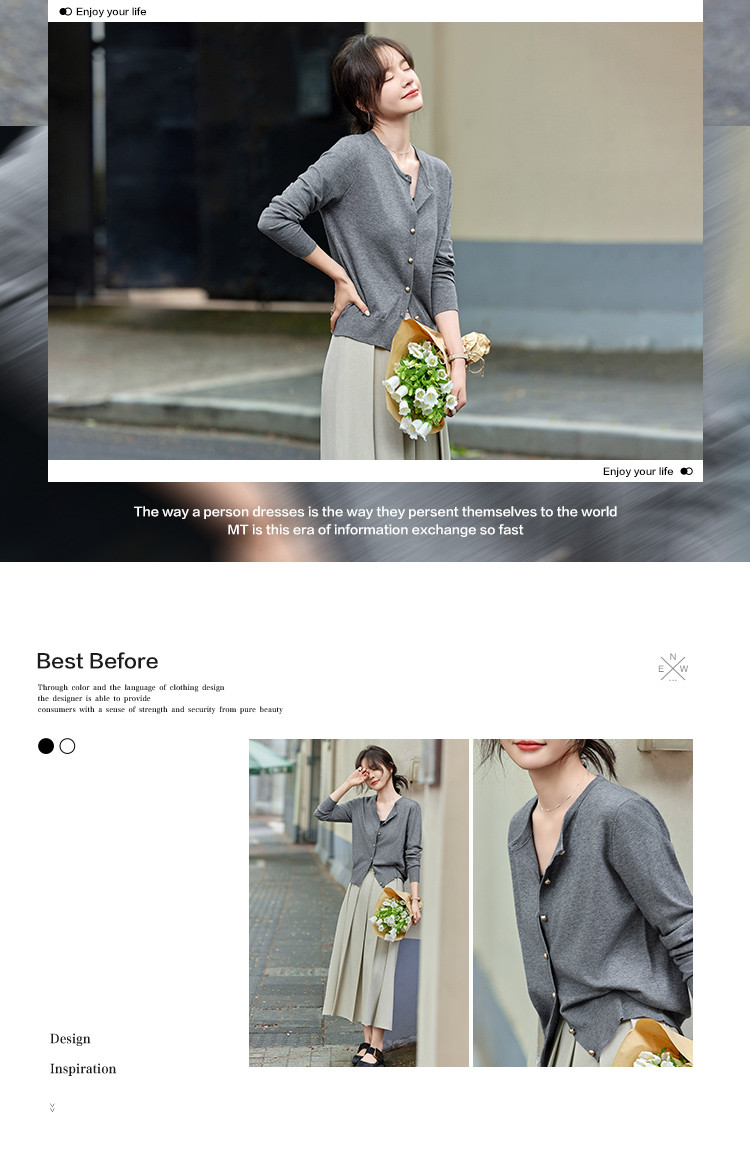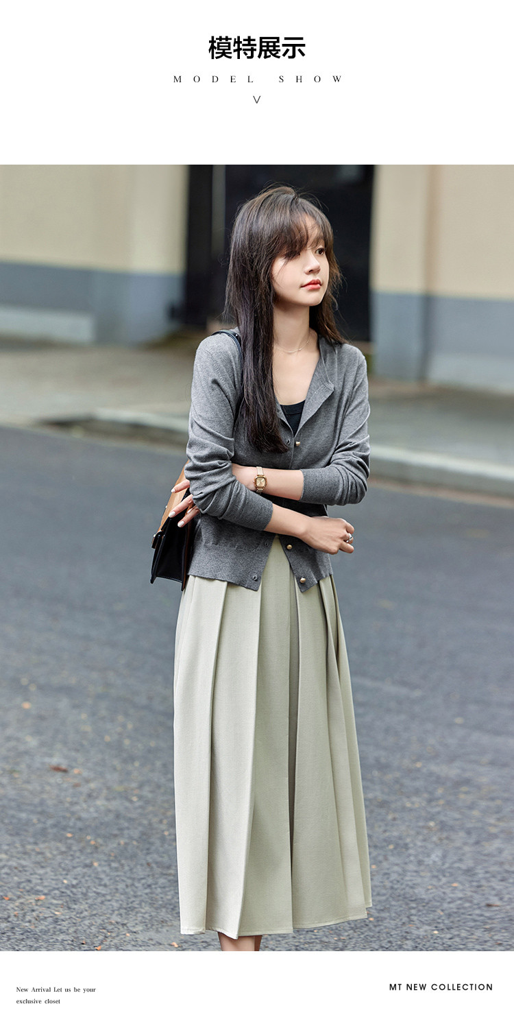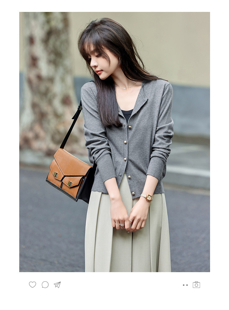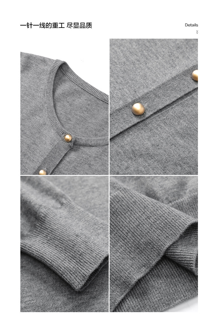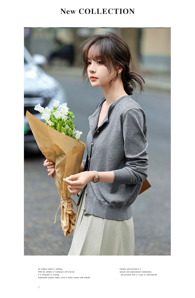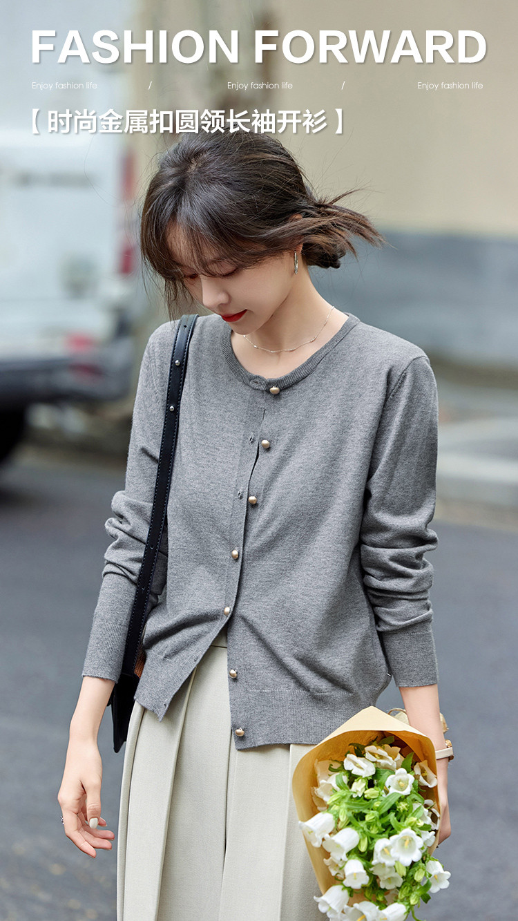 mt【格雷慵懒风】 秋季款经典纯色时尚金属扣圆领长袖开衫M539320739101