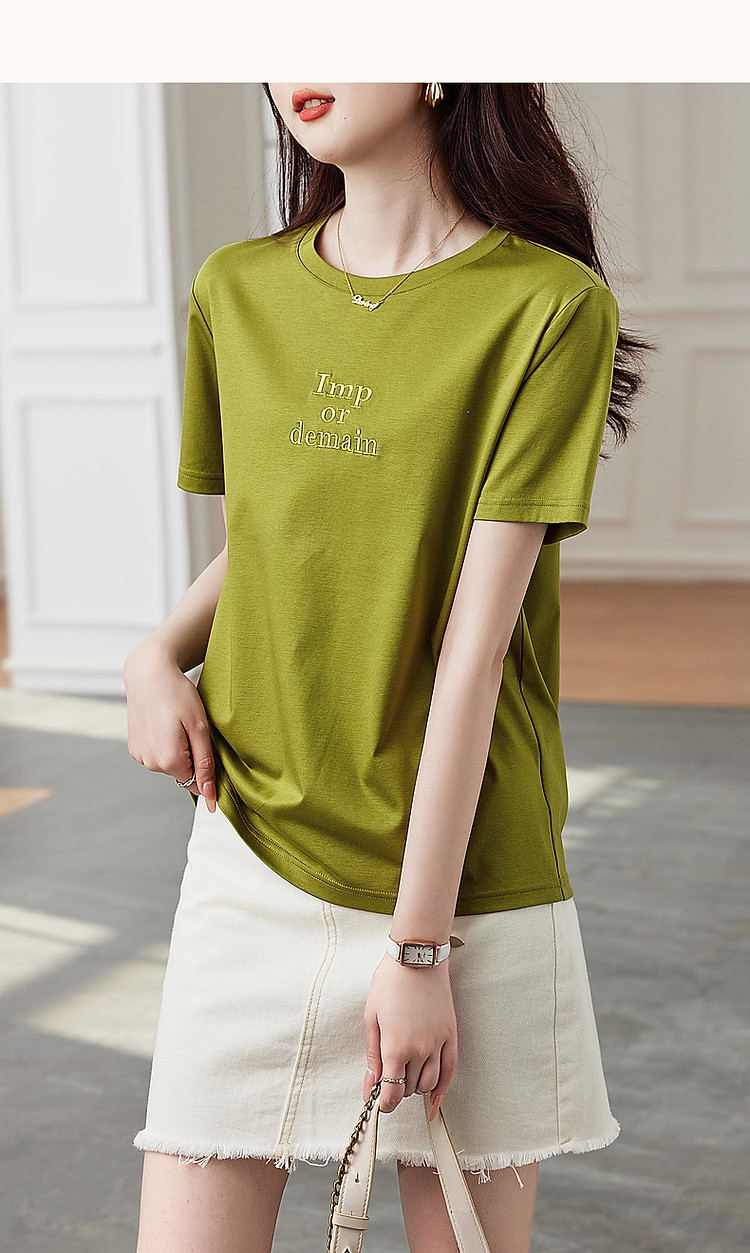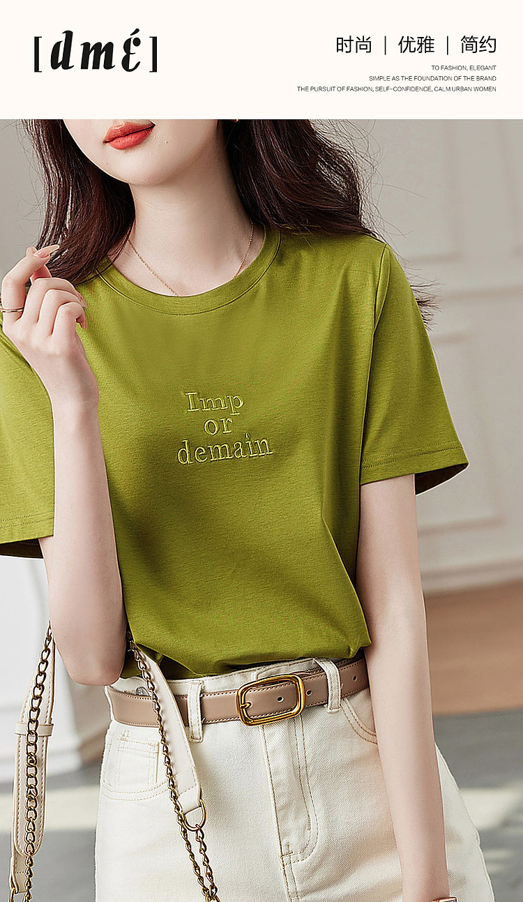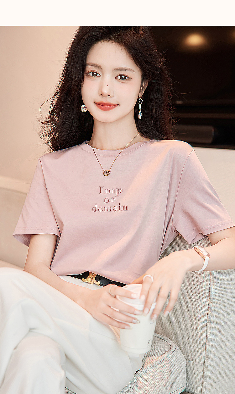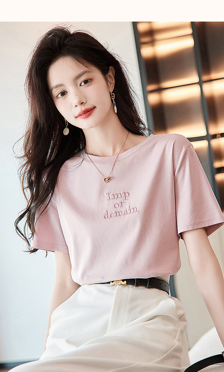 德玛纳【像吃了一口云朵】夏季含桑蚕丝/丝光棉字母绣花小个子女式t恤G538220122548