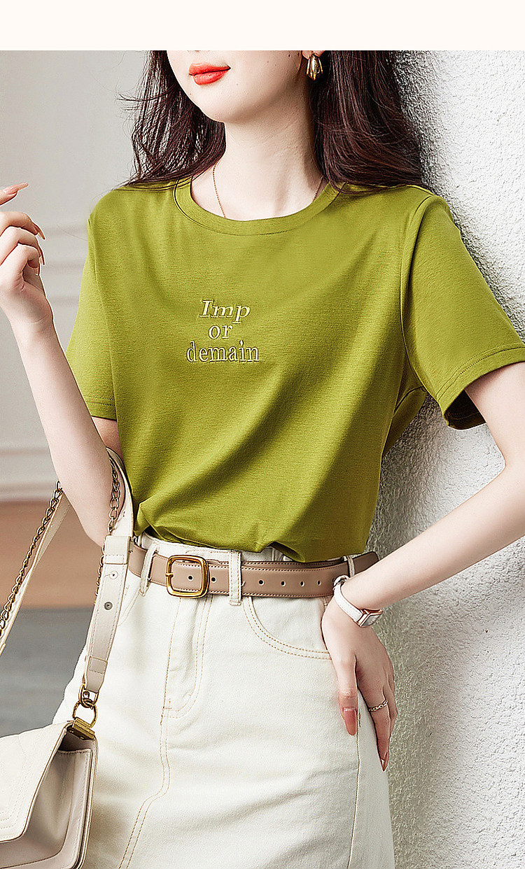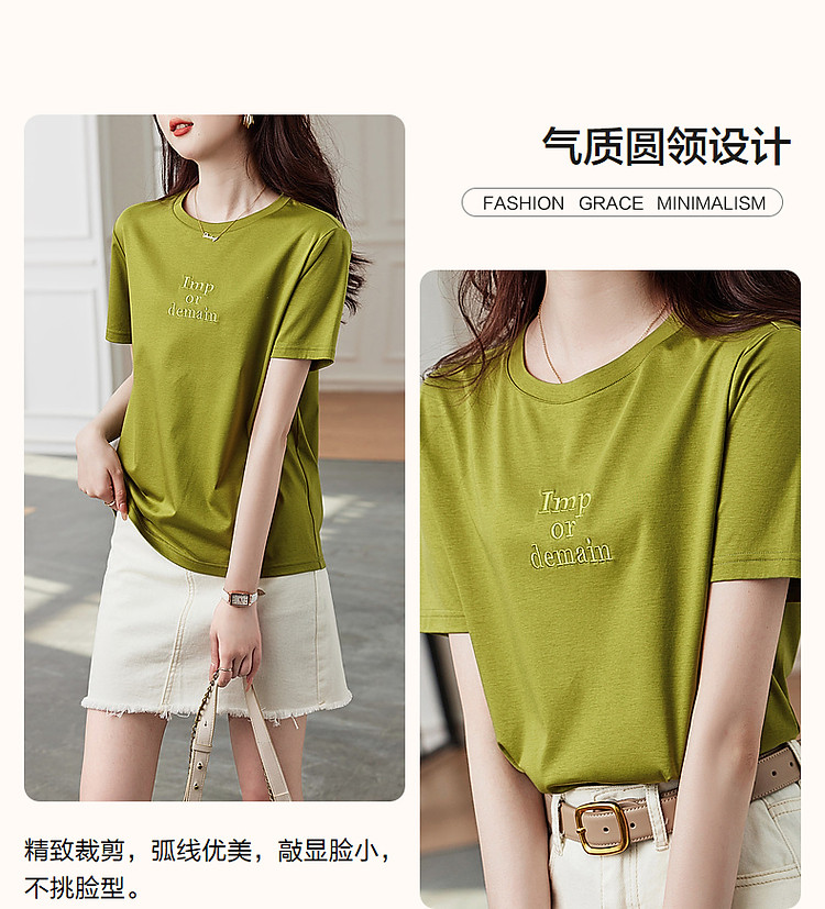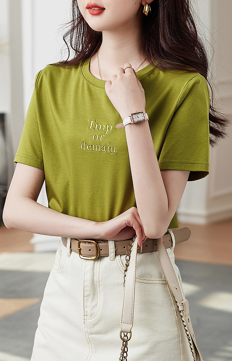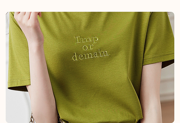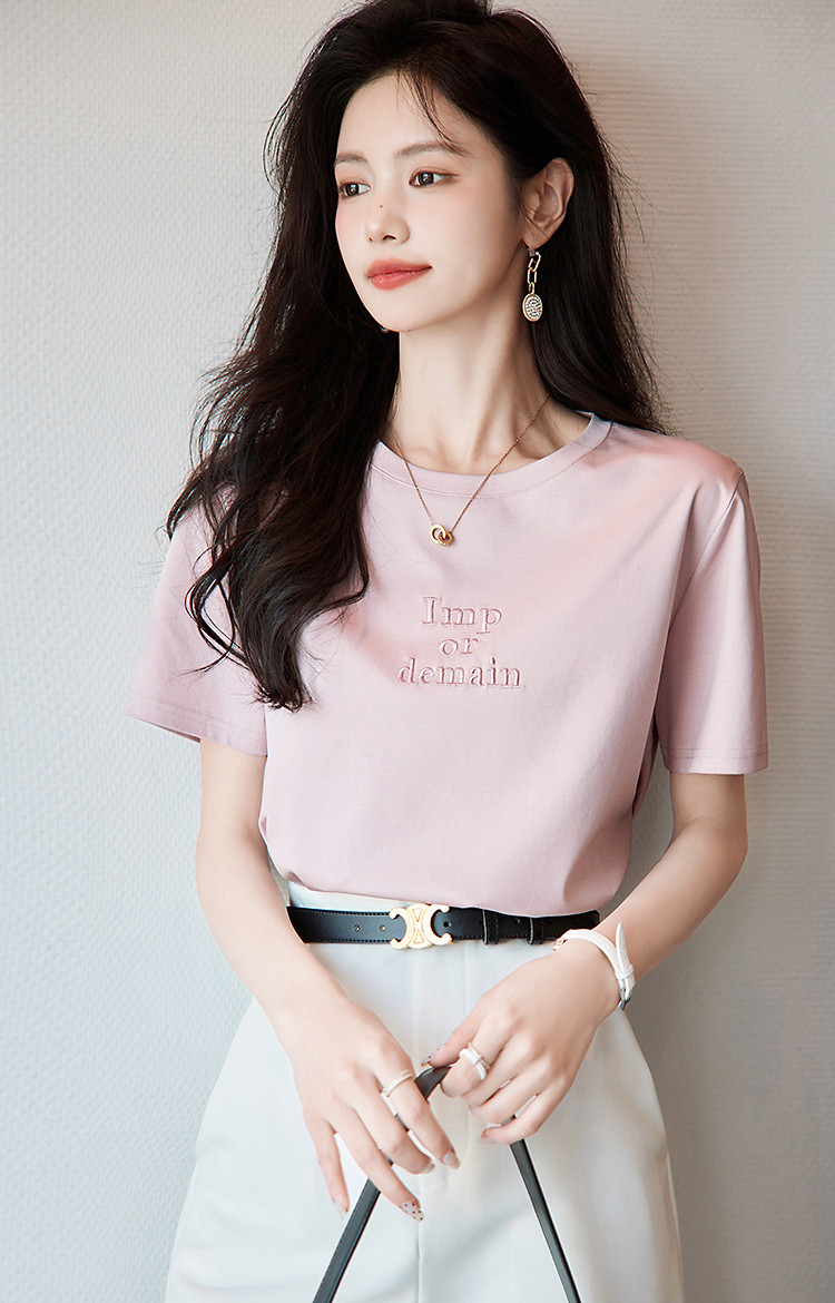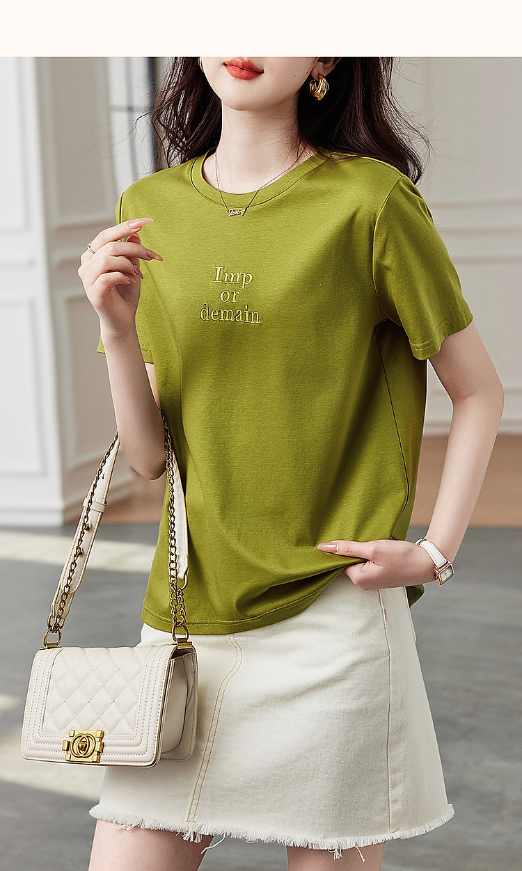 德玛纳【像吃了一口云朵】夏季含桑蚕丝/丝光棉字母绣花小个子女式t恤G538220122548