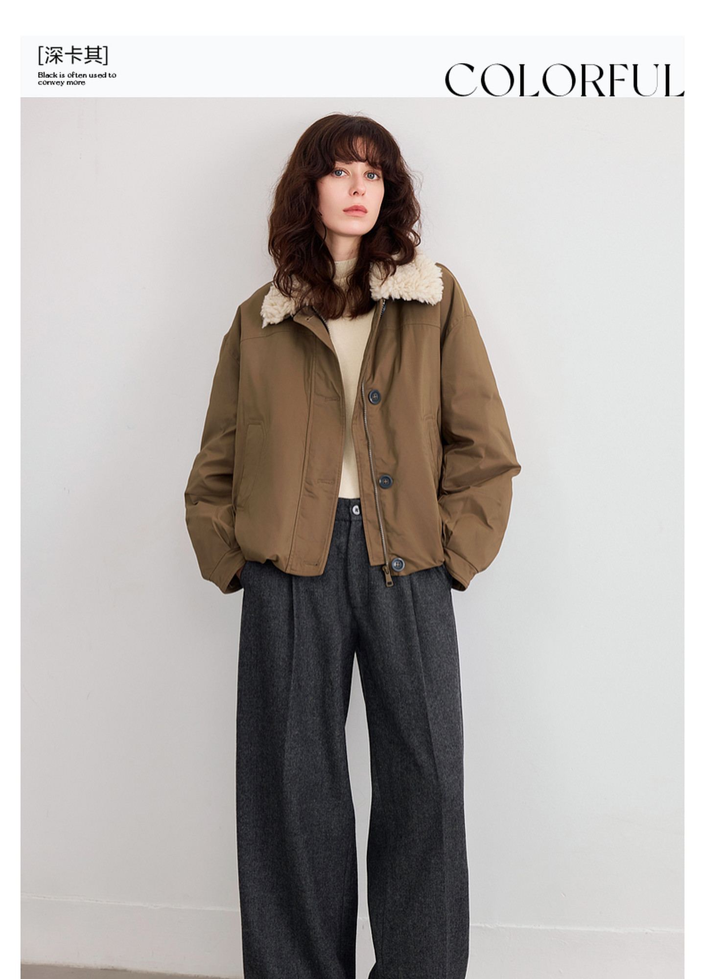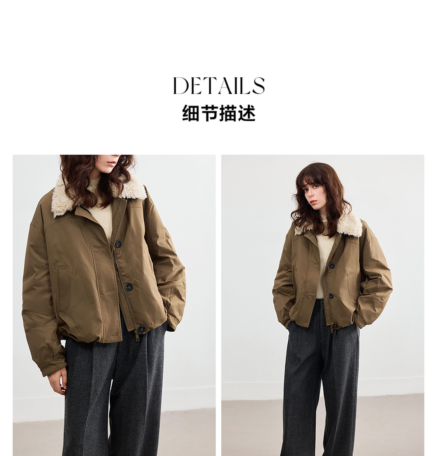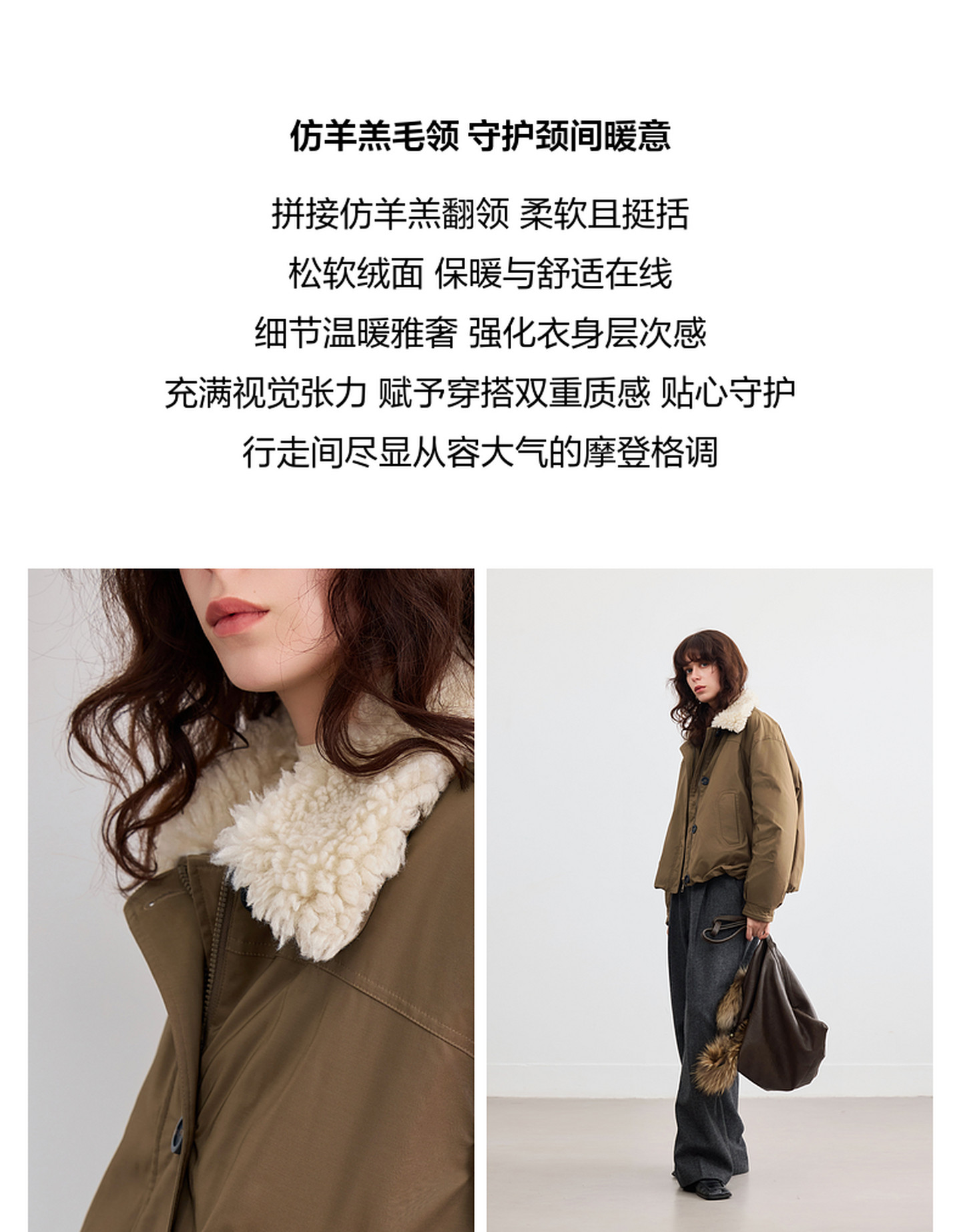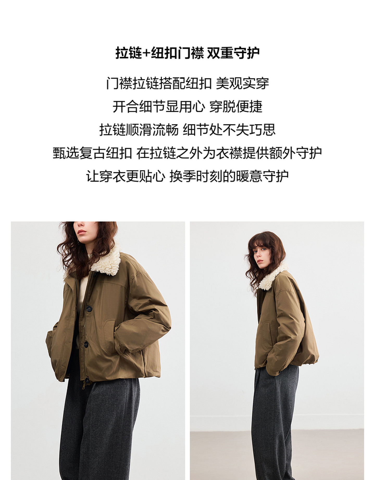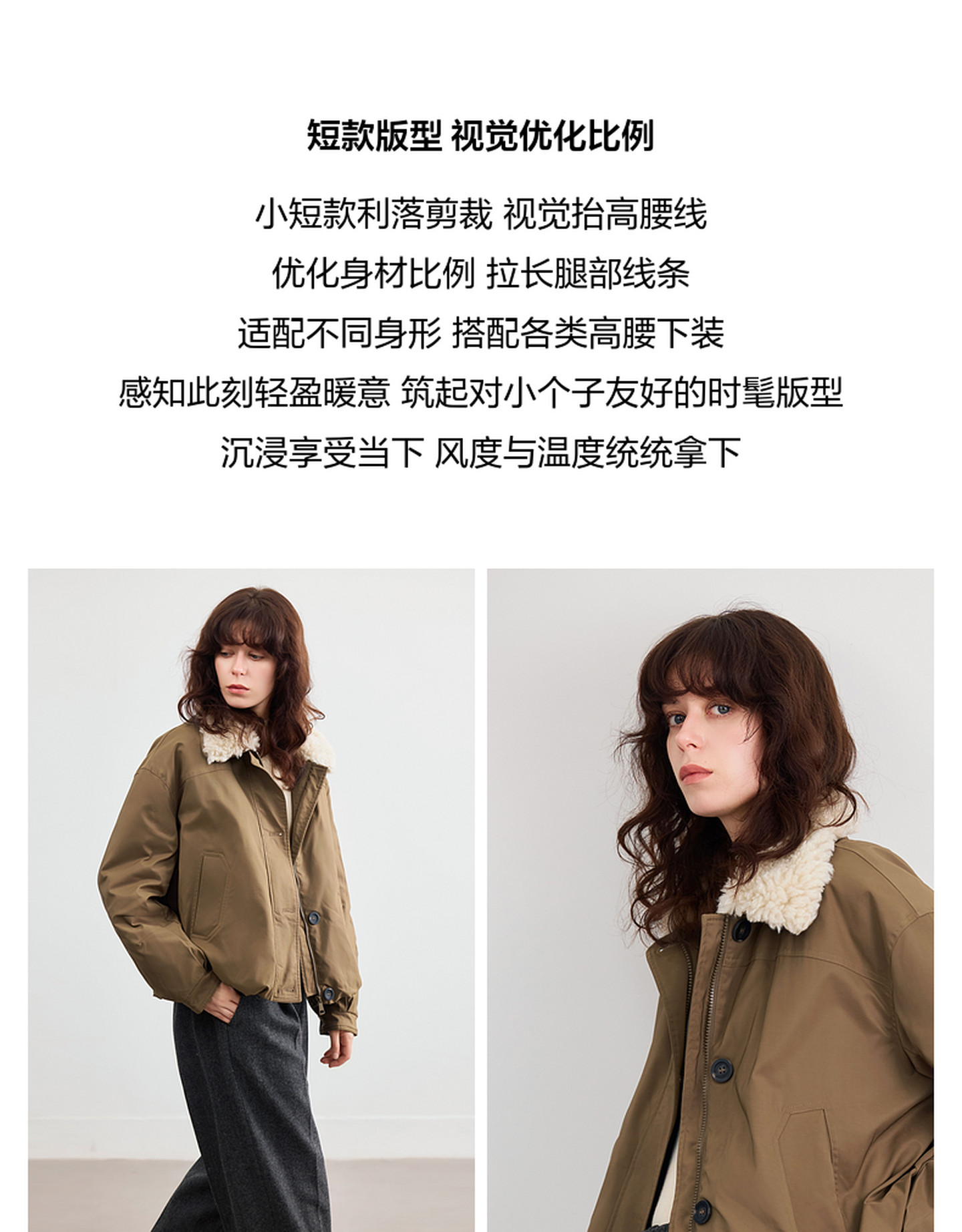 德玛纳【漫热都市】冬季保暖90鸭绒仿羊羔毛翻领短款显瘦羽绒服女高级G541421126002