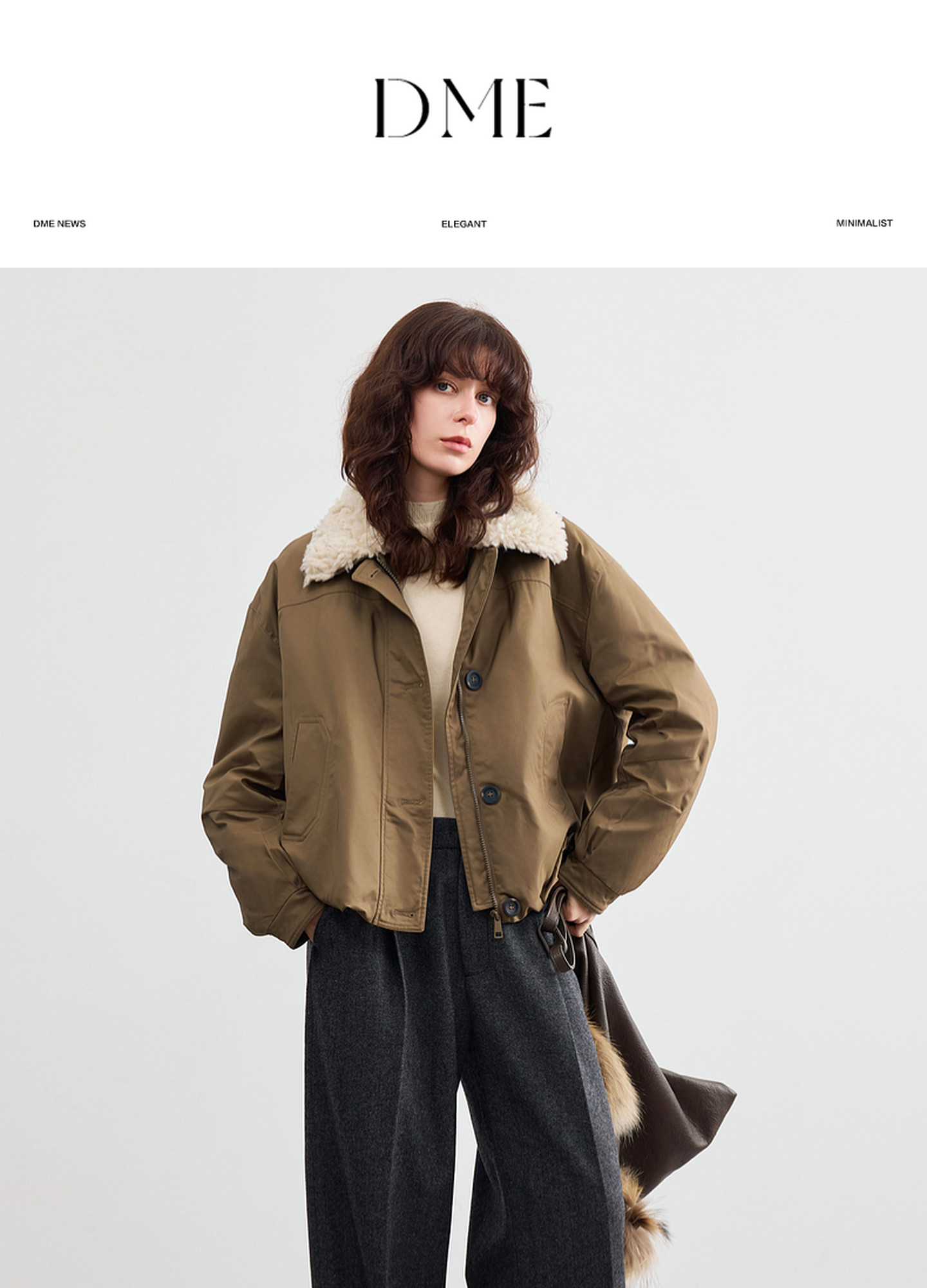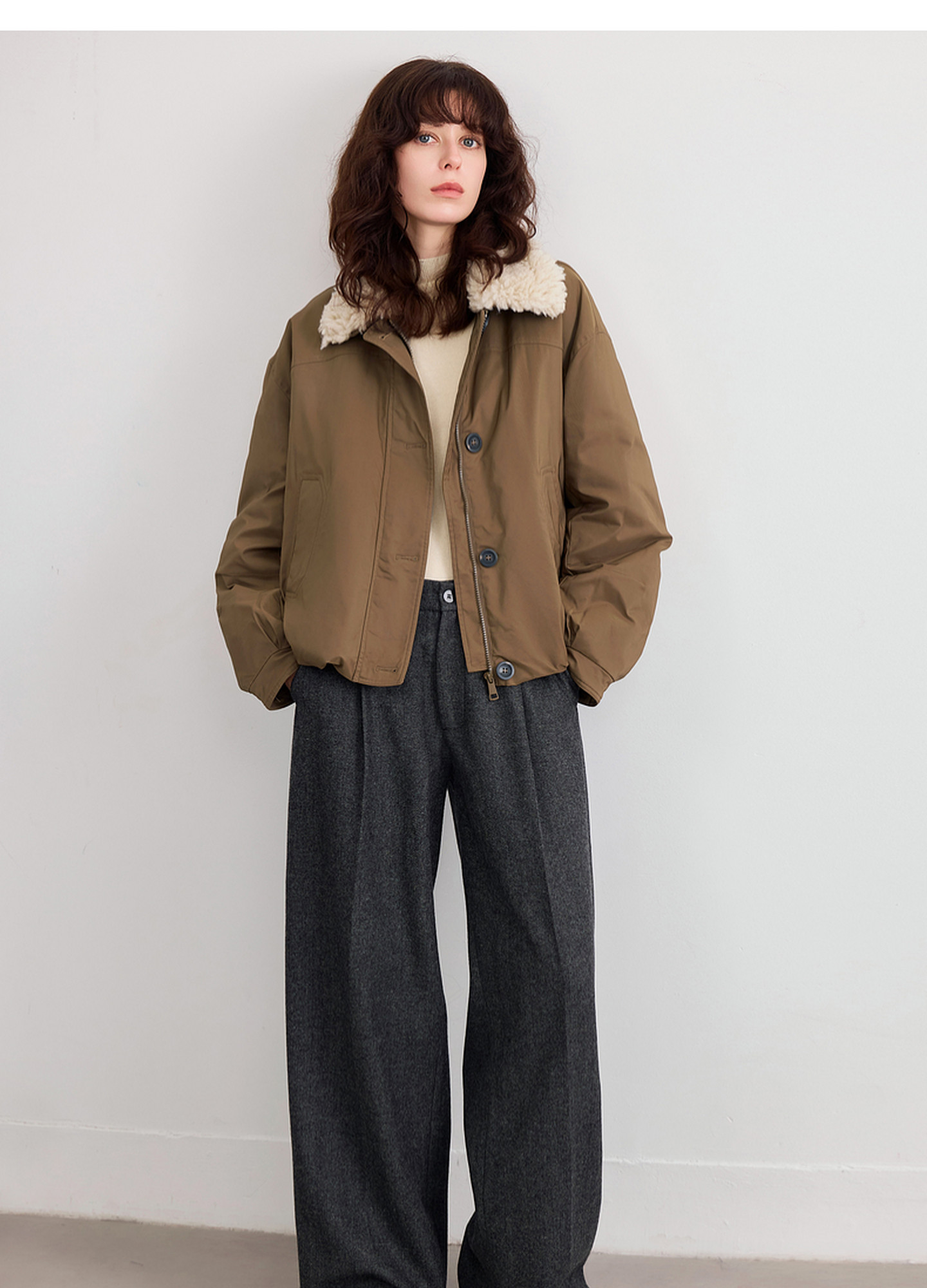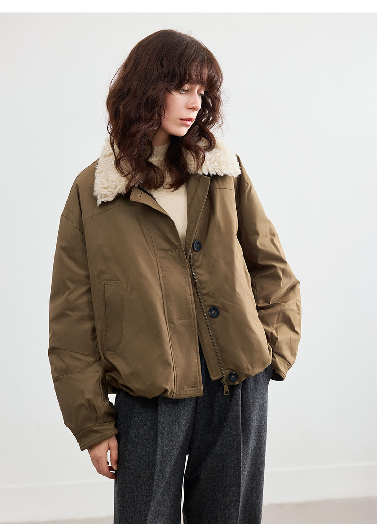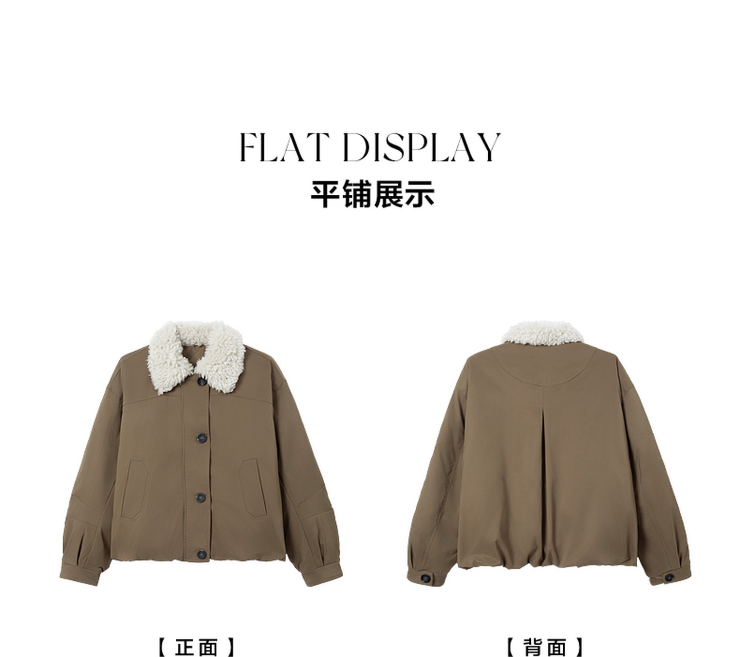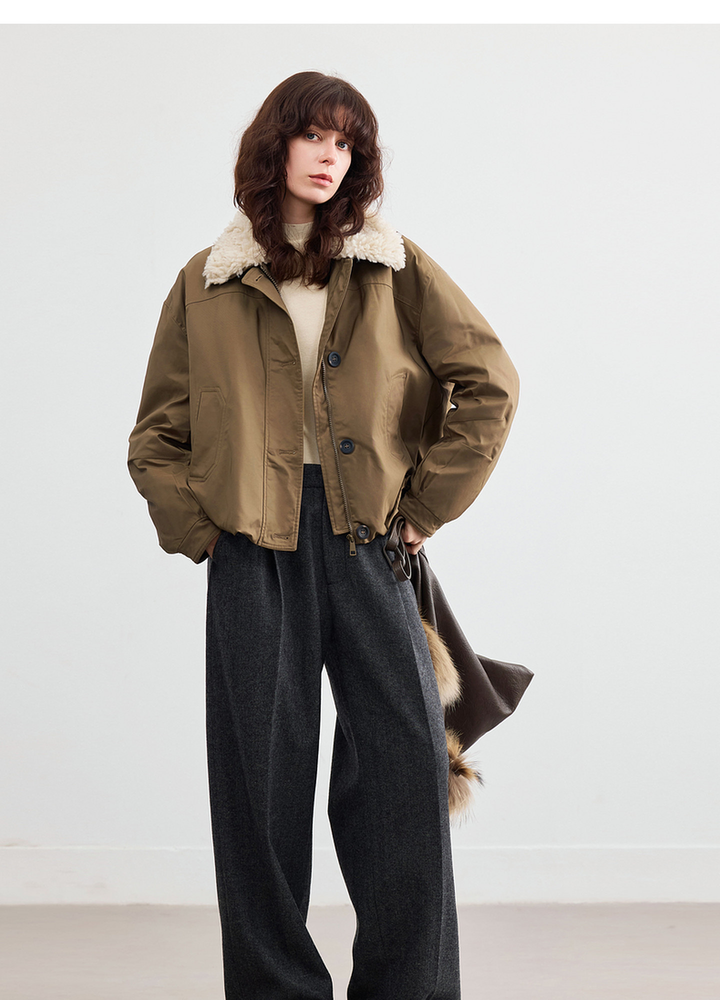 德玛纳【漫热都市】冬季保暖90鸭绒仿羊羔毛翻领短款显瘦羽绒服女高级G541421126002
