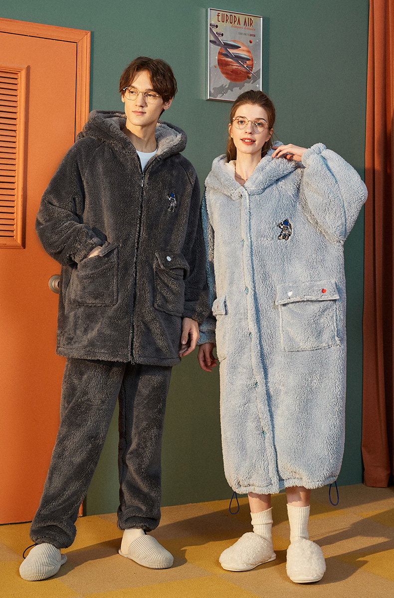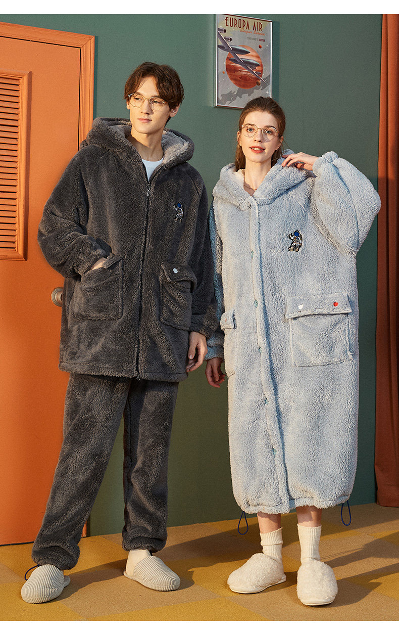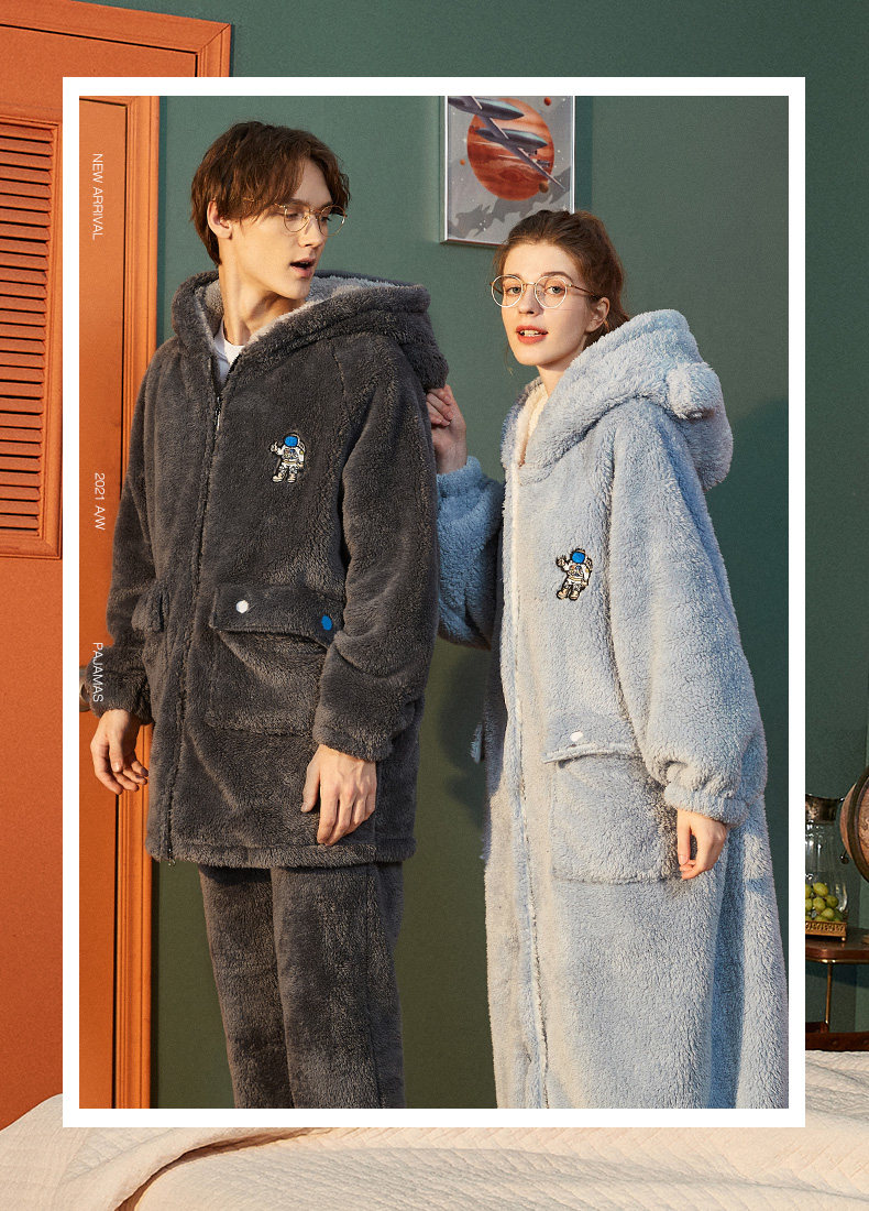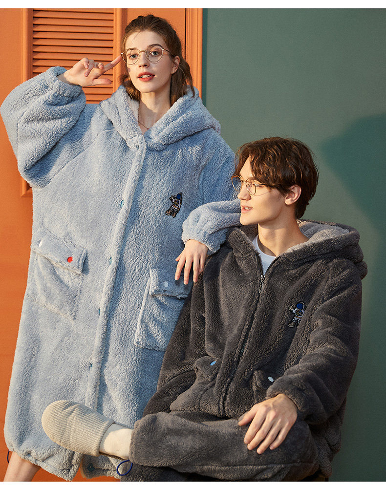 yso情侣睡衣女冬季款男士珊瑚绒睡袍厚大码男睡衣法兰绒家居服