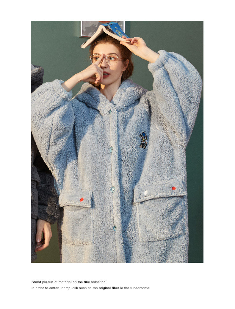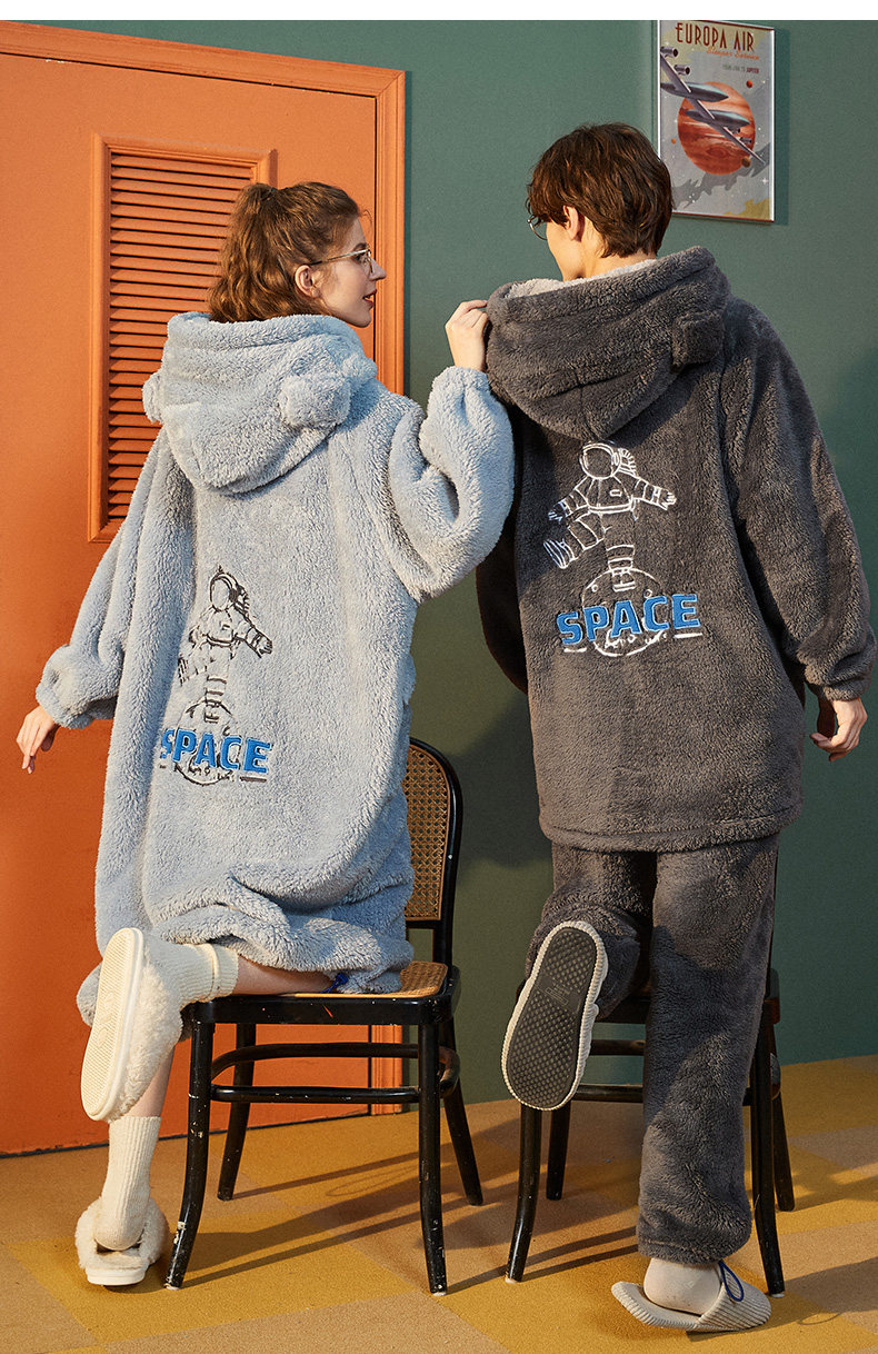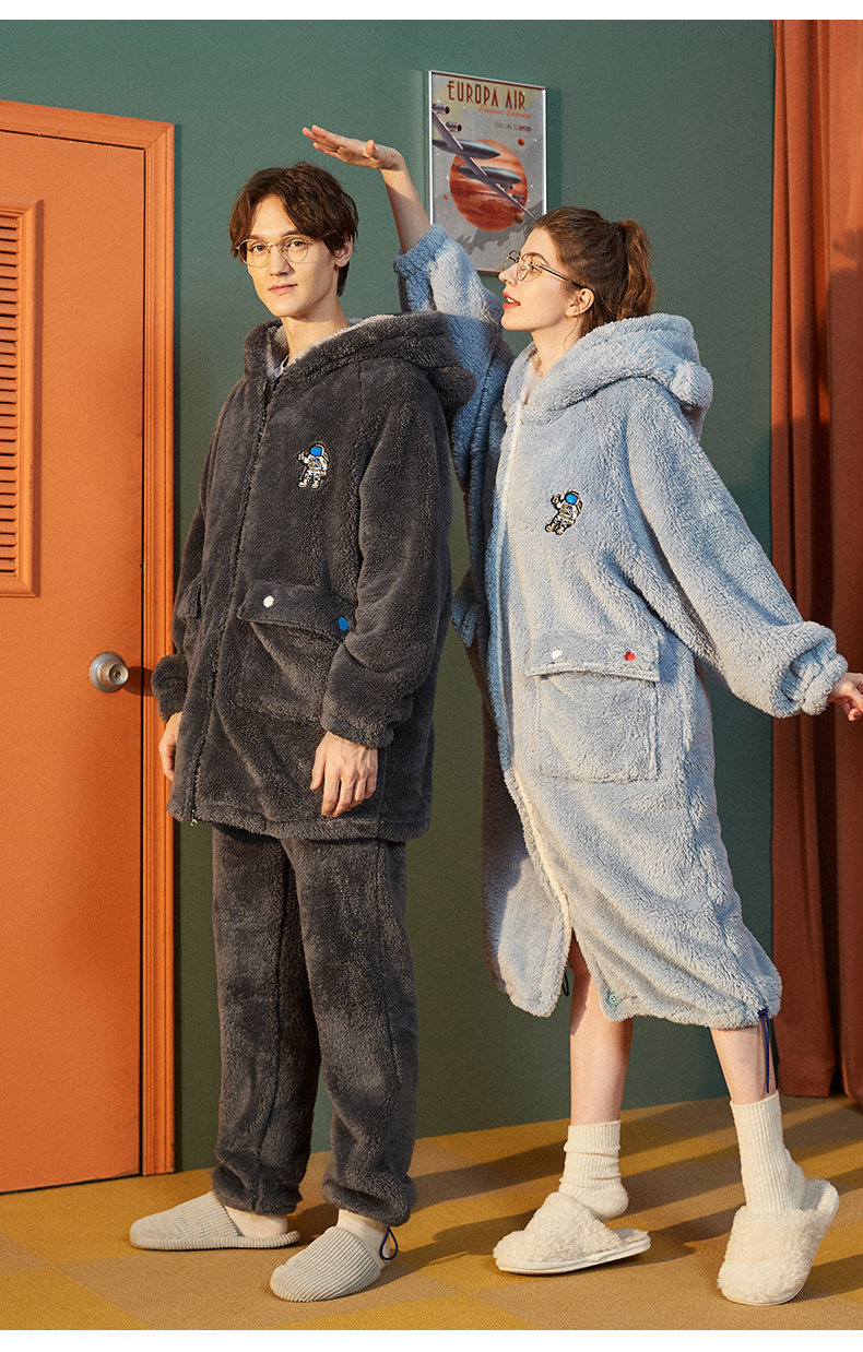 yso情侣睡衣女冬季款男士珊瑚绒睡袍厚大码男睡衣法兰绒家居服