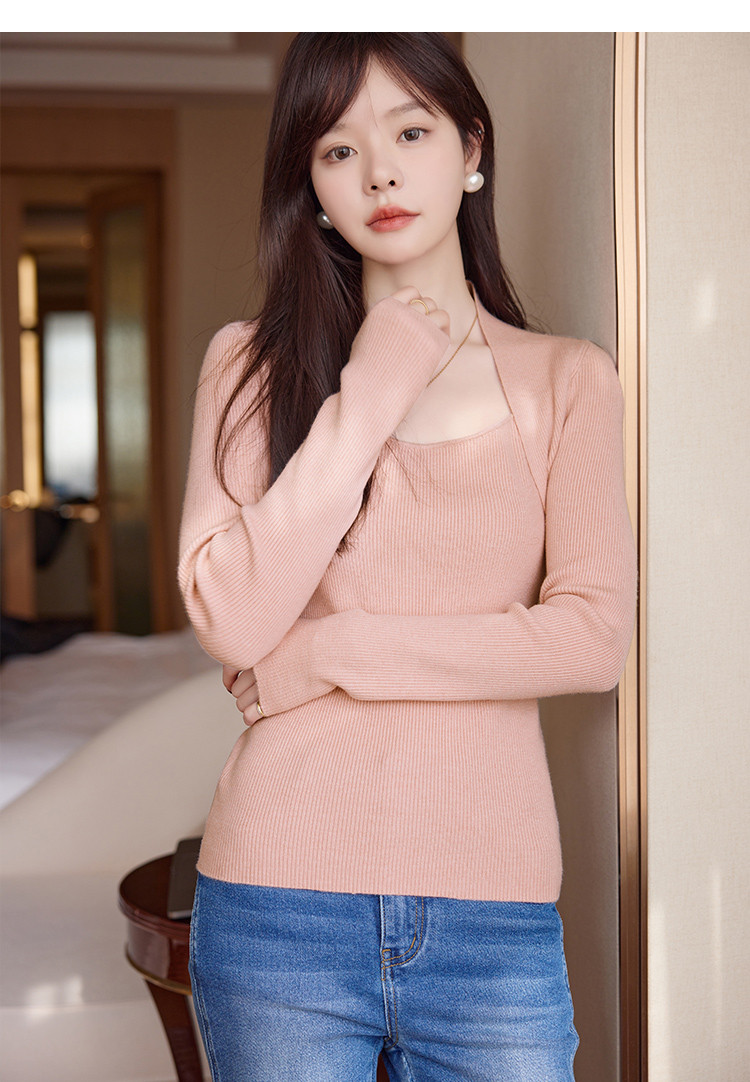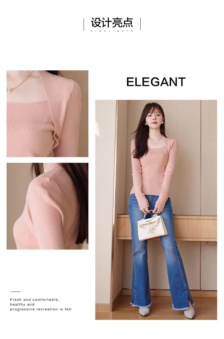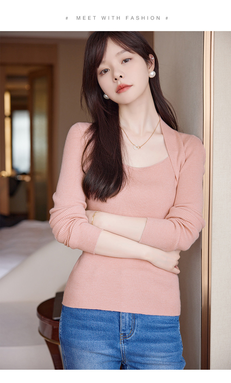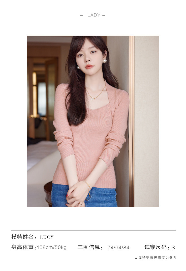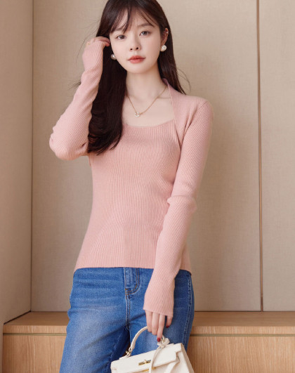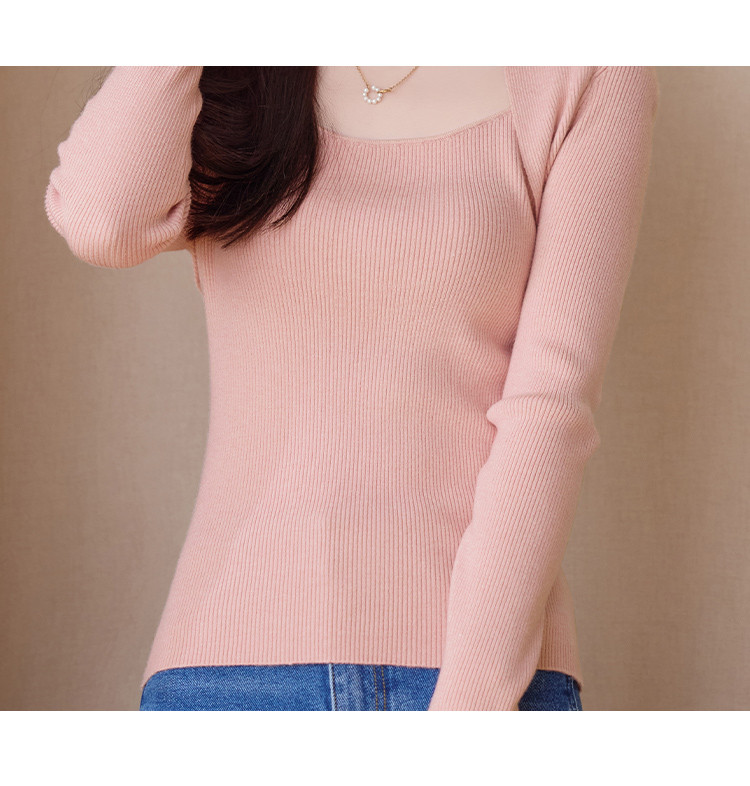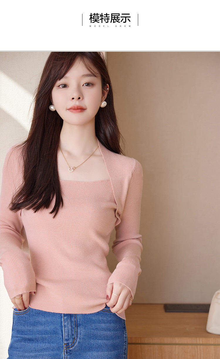 【简约纯色】2023年春季新款简约风露锁骨方领套头长袖线衫女