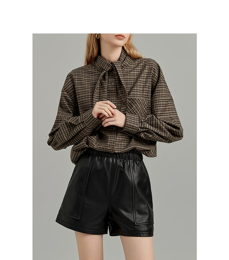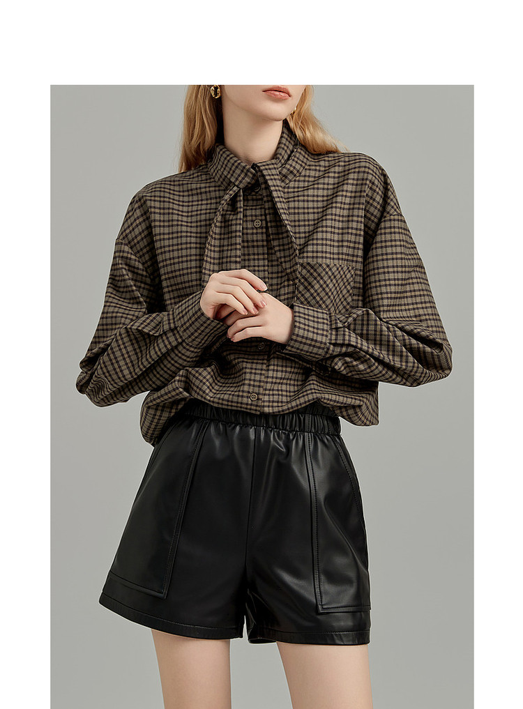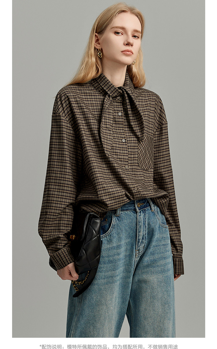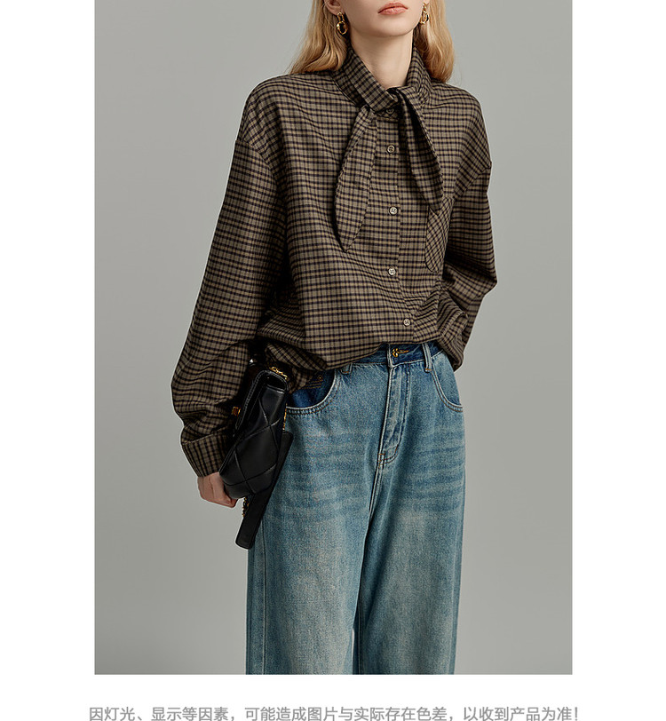弹性: 无弹 版型: 常规 衣长: 常规 风格: 休闲 流行元素: 口袋,纽扣,系带 适用季节: 秋,冬 领型: 系带领 袖型: 衬衫袖 袖长: 长袖 面料: 涤纶/聚酯纤维 肩型: 落肩 上市年份: 2023 生产/经销/进口厂家: 宁波德玛纳瑞品服饰有限公司 适用性别: 女士 厂家地址: 安徽省芜湖市三山经济开发区保定街道焦弯路3号 洗涤说明: 凡是棉、麻、丝、毛天然面料都会有轻微褪色、变型、起皱、缩水现象,为减少或避免以上情况发生在洗涤保养上需特别小心。洗涤时应选用冷水(30度以下),中性或酸性洗衣手洗(丝、毛面料应选用专业洗衣液),不宜浸泡(2分钟左右),即泡即洗,不可氯漂。为避免染色,清洗与晾晒时,深浅色应分开,不宜拧过干,反面阴干 详细材质信息: 97.7%聚酯纤维 2.3%氨纶 主款式: 格纹衬衫 主风格: 都市休闲 执行标准: Q/DMN 017-2023 产地: 中国 商品配件: 暂无 商品编码: G138421242402813 收起商品展示IMAGE