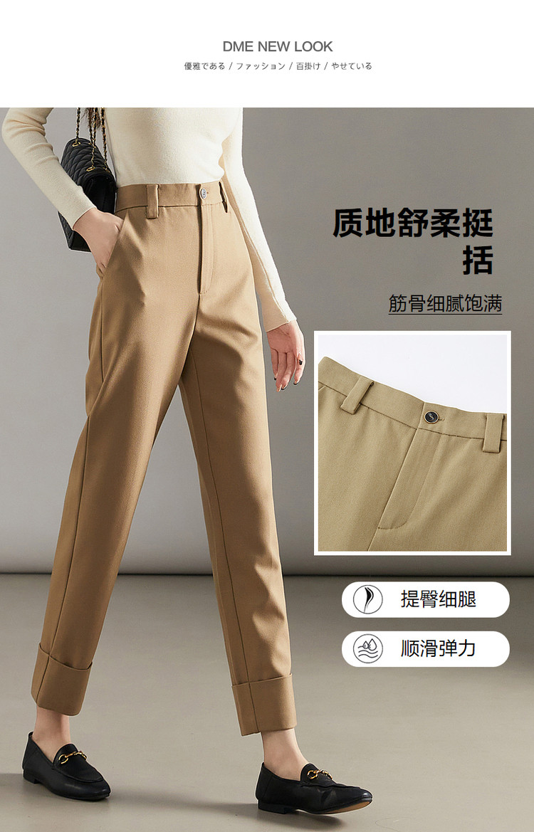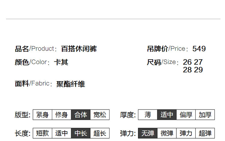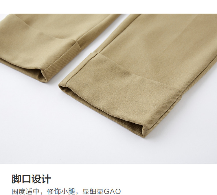 弹性: 无弹 版型: 常规 厚薄: 常规 裤长: 长裤 风格: 通勤风 适用季节: 春,秋 适用人群: 青年 面料: 涤纶/聚酯纤维 款式: 锥形裤 裤门襟: 拉链 生产/经销/进口厂家: 宁波德玛纳瑞品服饰有限公司 适用性别: 女士 厂家地址: 安徽省芜湖市三山经济开发区保定街道焦弯路3号 洗涤说明: 凡是棉、麻、丝、毛天然面料都会有轻微褪色、变型、起皱、缩水现象,为减少或避免以上情况发生在洗涤保养上需特别小心。洗涤时应选用冷水(30度以下),中性或酸性洗衣手洗(丝、毛面料应选用专业洗衣液),不宜浸泡(2分钟左右),即泡即洗,不可氯漂。为避免染色,清洗与晾晒时,深浅色应分开,不宜拧过干,反面阴干 详细材质信息: 100%聚酯纤维 主款式: 锥形裤 主风格: 商务通勤 执行标准: Q/DMN 017-2018 产地: 中国 商品配件: 暂无 商品编码: G538322242401806 收起商品展示IMAGE