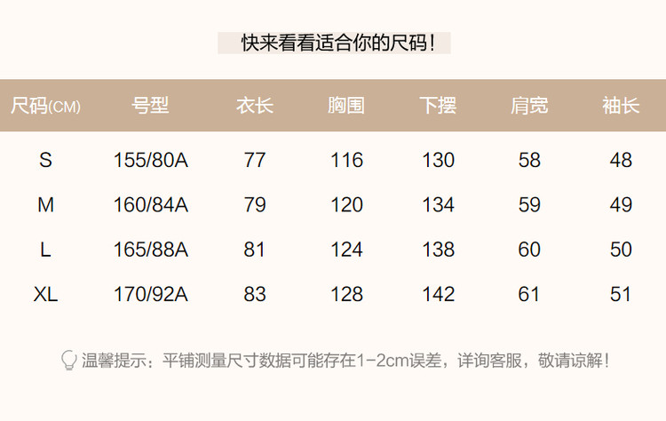 温馨提示尺码对照表: