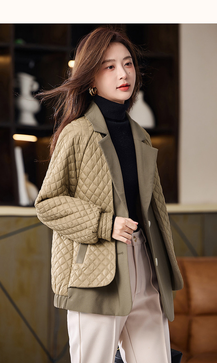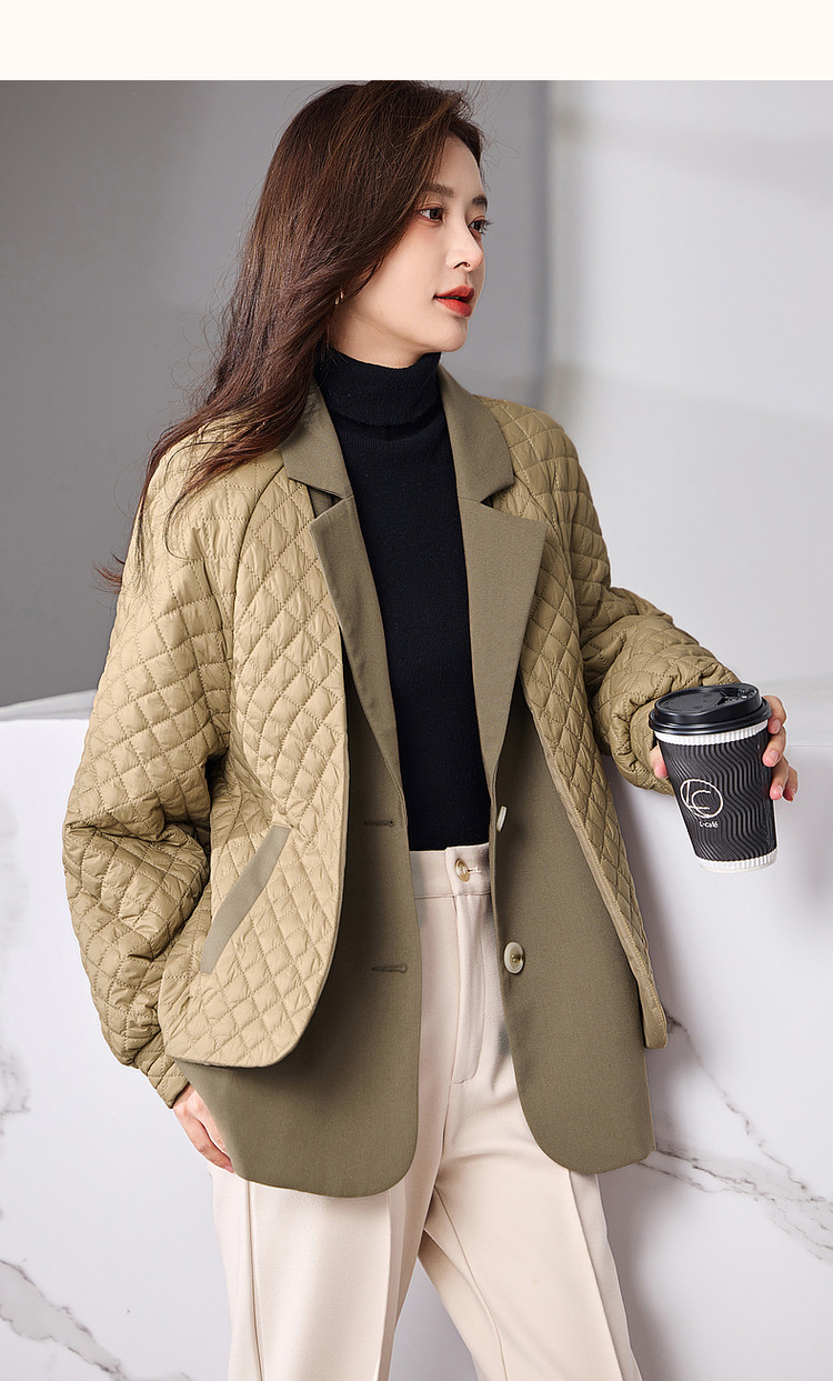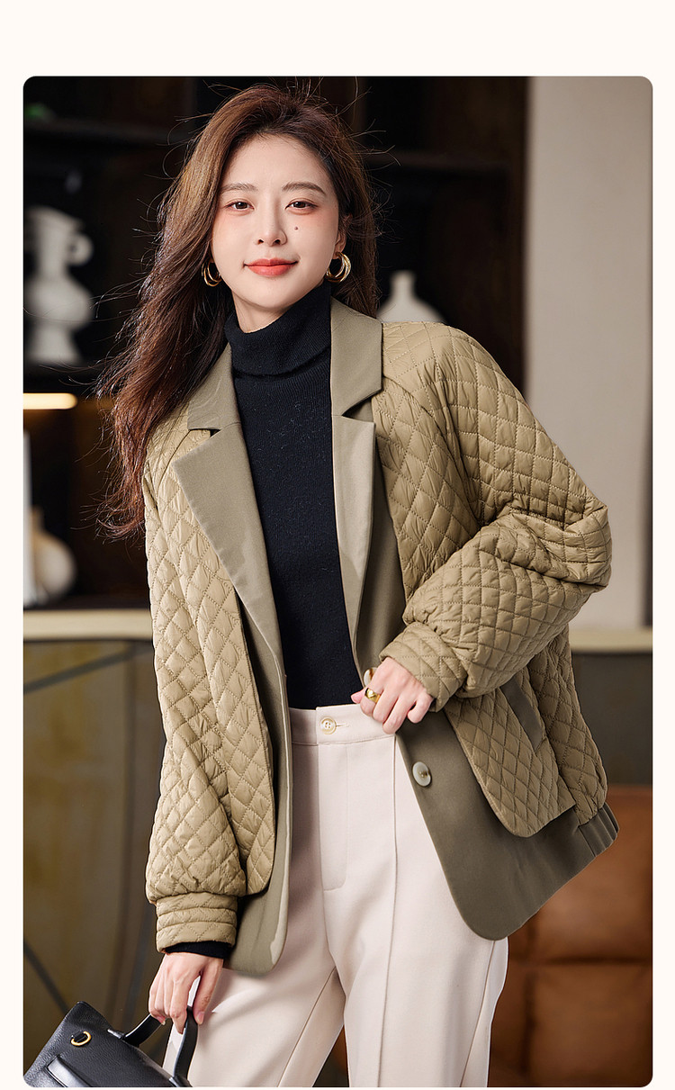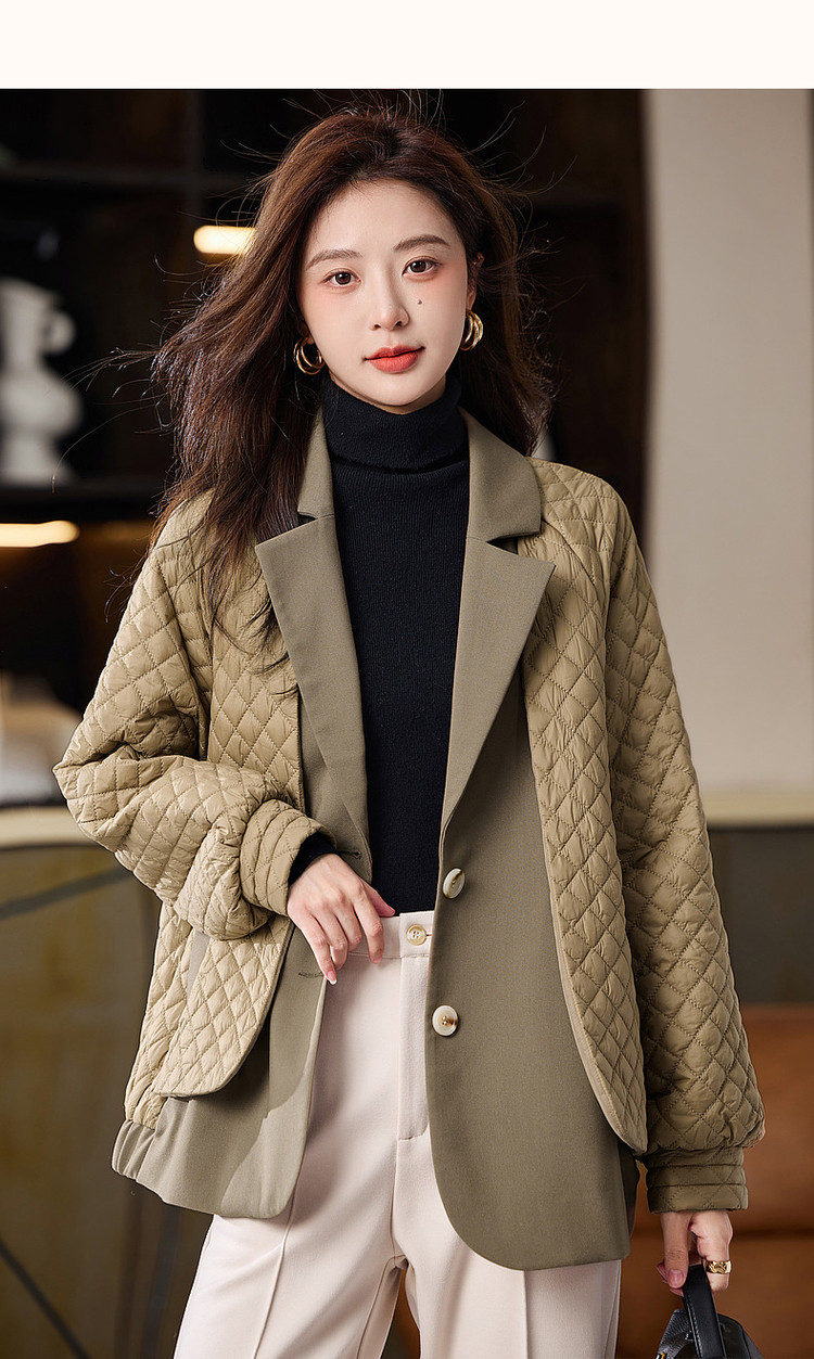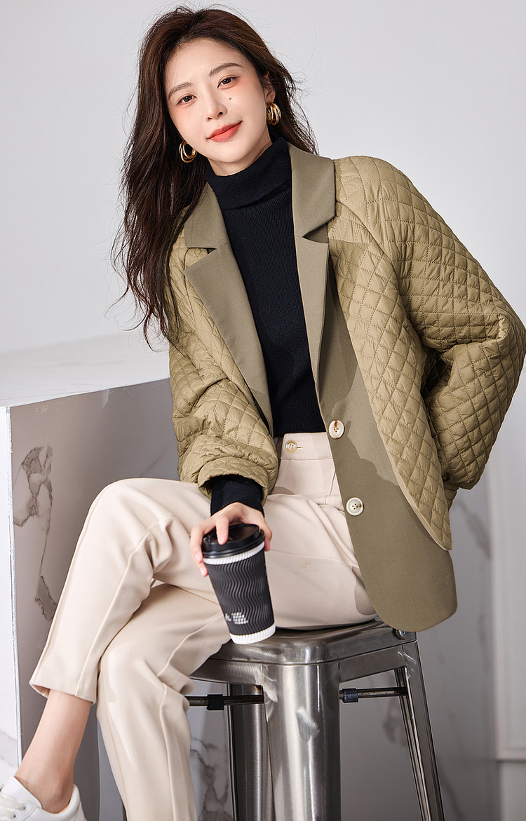 弹性: 微弹 版型: 常规 衣长: 常规 厚薄: 常规 风格: 时尚 适用季节: 秋,冬 领型: 西装领 衣门襟: 纽扣 袖型: 插肩袖 袖长: 长袖 适用人群: 青年 面料: 锦纶/尼龙 填充物: 涤纶/聚酯纤维 里材质: 涤纶/聚酯纤维 生产/经销/进口厂家: 宁波德玛纳瑞品服饰有限公司 适用性别: 女士 厂家地址: 安徽省芜湖市三山经济开发区保定街道焦弯路3号 洗涤说明: 凡是棉、麻、丝、毛天然面料都会有轻微褪色、变型、起皱、缩水现象,为减少或避免以上情况发生在洗涤保养上需特别小心。洗涤时应选用冷水(30度以下),中性或酸性洗衣手洗(丝、毛面料应选用专业洗衣液),不宜浸泡(2分钟左右),即泡即洗,不可氯漂。为避免染色,清洗与晾晒时,深浅色应分开,不宜拧过干,反面阴干 是否双面可穿: 否 是否连帽可脱卸: 否 详细材质信息: 主面料:100%锦纶 相拼面料:81.4%聚酯纤维 16.7%粘纤 1.9%氨纶 里料:100%聚酯纤维 填充物:100%聚酯纤维 (无纺衬除外) 主款式: 翻领棉服 主风格: 都市休闲 执行标准: GB/T2662-2017 产地: 中国 商品配件: 暂无 商品编码: G538421031203809 收起商品展示IMAGE