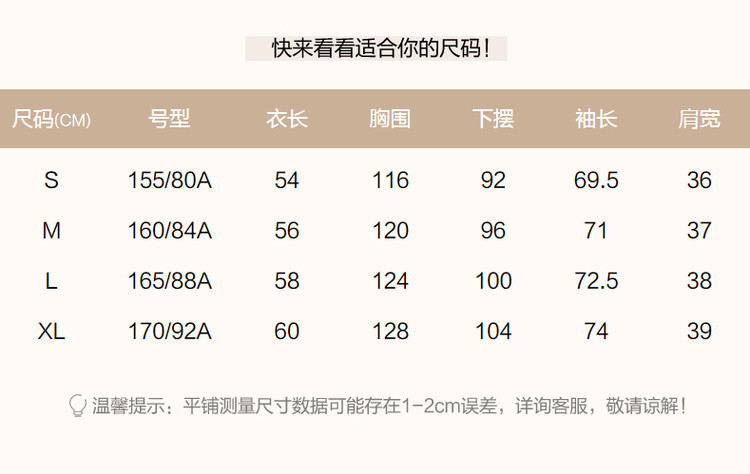 温馨提示尺码对照表: