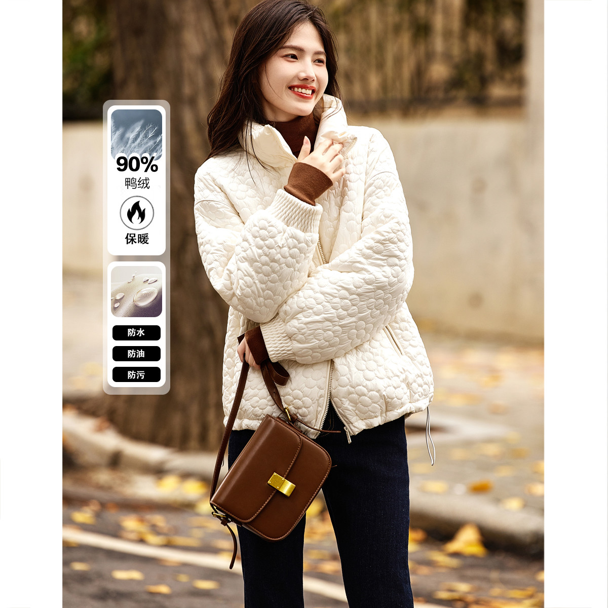 弹性: 无弹 版型: 直筒 衣长: 常规 厚薄: 厚 风格: 休闲 适用季节: 秋,冬 领型: 立领 衣门襟: 拉链 袖型: 落肩袖 袖长: 长袖 适用人群: 青年 面料: 涤纶/聚酯纤维 填充物: 白鸭绒 填充物含量区间: 90%及以上 充绒量区间: 100g以下 生产/经销/进口厂家: 宁波德玛纳瑞品服饰有限公司 适用性别: 女士 厂家地址: 安徽省芜湖市三山经济开发区保定街道焦弯路3号 洗涤说明: 凡是棉、麻、丝、毛天然面料都会有轻微褪色、变型、起皱、缩水现象,为减少或避免以上情况发生在洗涤保养上需特别小心。洗涤时应选用冷水(30度以下),中性或酸性洗衣手洗(丝、毛面料应选用专业洗衣液),不宜浸泡(2分钟左右),即泡即洗,不可氯漂。为避免染色,清洗与晾晒时,深浅色应分开,不宜拧过干,反面阴干 是否双面可穿: 否 是否连帽可脱卸: 否 详细材质信息: 面料:100%聚酯纤维 面层填充物:100%聚酯纤维(贴衬除外) 里料:100%锦纶 内胆:100%聚酯纤维 袖口填充物:100%聚酯纤维 领、里层填充物:鸭绒 绒子含量:90% 充绒量:S:70g M:75g L:80g XL:85g 主款式: 立领羽绒 主风格: 都市休闲 尺码详细充绒量: 100g以下 执行标准: Q/DMN 022-2023 毛领: 无毛领 产地: 中国 商品配件: 暂无 商品编码: G538421122713104 收起商品展示IMAGE