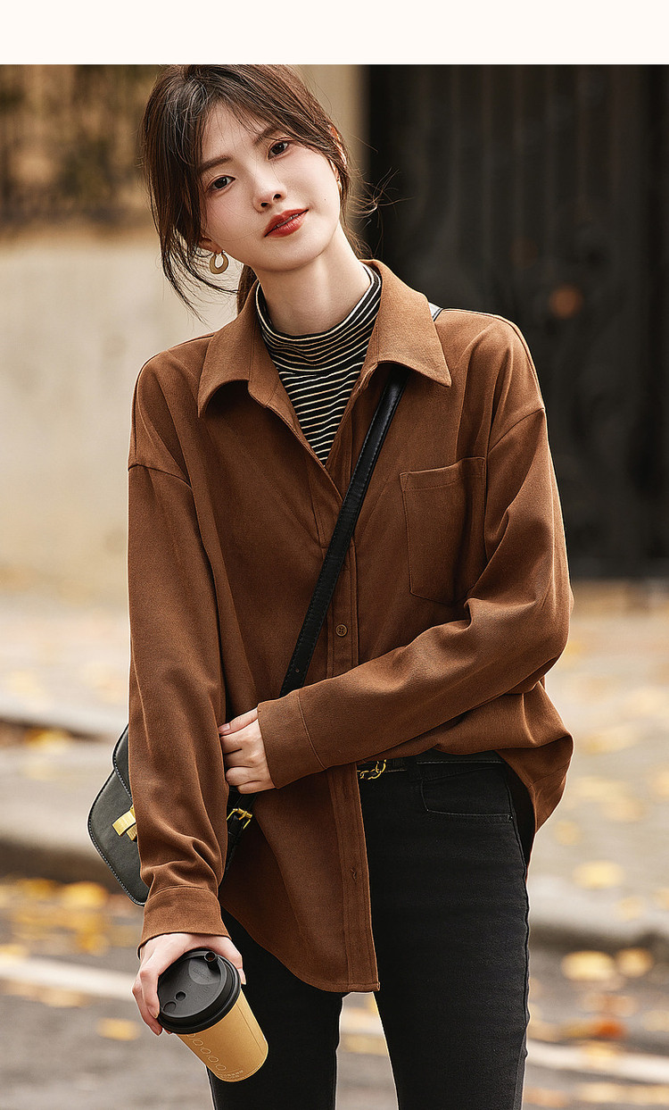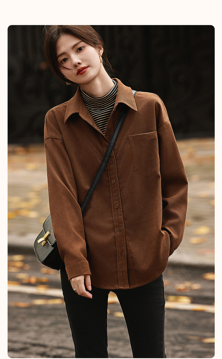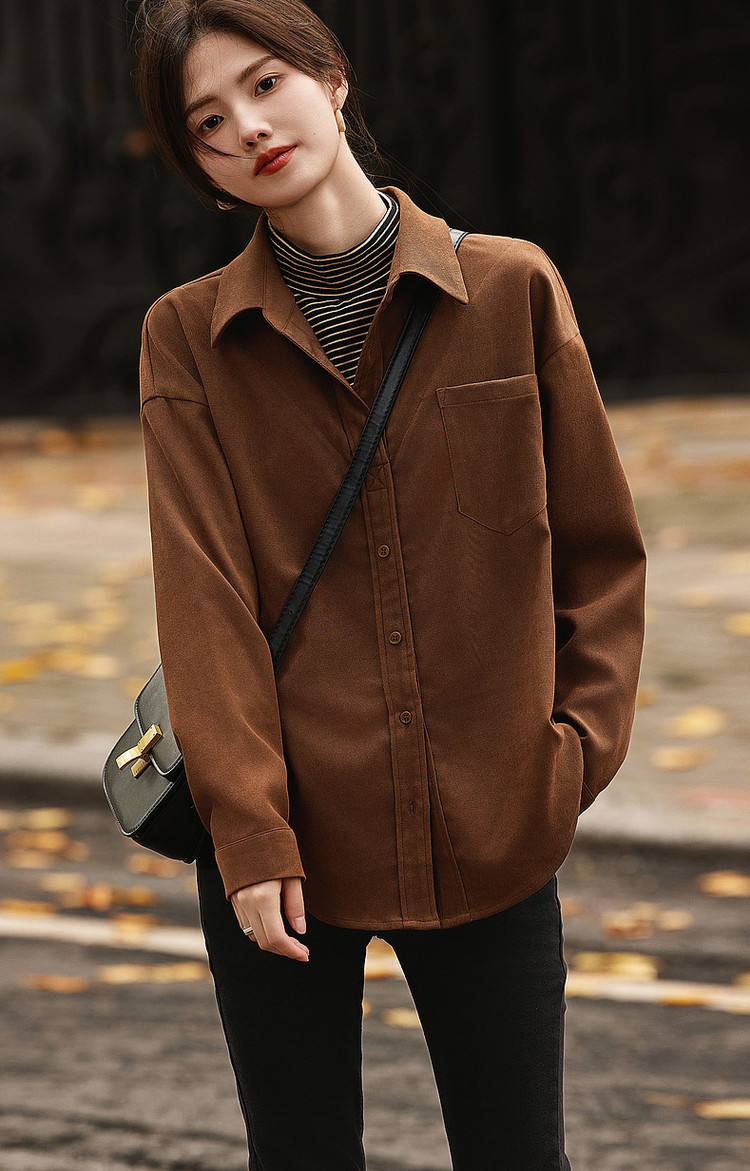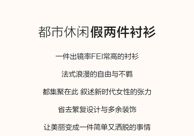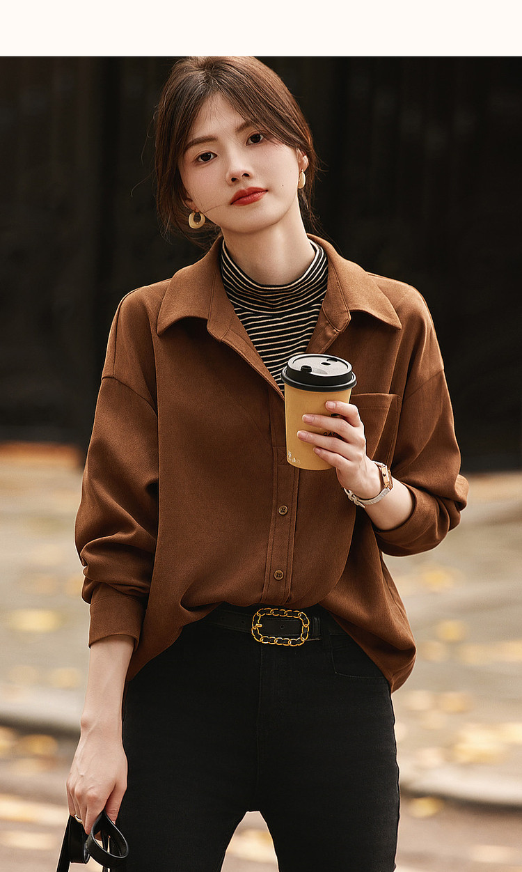 弹性: 无弹 版型: 常规 衣长: 常规 厚薄: 厚 风格: 都市 流行元素: 撞色 适用季节: 秋,冬 领型: 翻领 袖型: 衬衫袖 袖长: 长袖 面料: 涤纶/聚酯纤维 肩型: 常规肩 生产/经销/进口厂家: 宁波德玛纳瑞品服饰有限公司 适用性别: 女士 厂家地址: 安徽省芜湖市三山经济开发区保定街道焦弯路3号 洗涤说明: 凡是棉、麻、丝、毛天然面料都会有轻微褪色、变型、起皱、缩水现象,为减少或避免以上情况发生在洗涤保养上需特别小心。洗涤时应选用冷水(30度以下),中性或酸性洗衣手洗(丝、毛面料应选用专业洗衣液),不宜浸泡(2分钟左右),即泡即洗,不可氯漂。为避免染色,清洗与晾晒时,深浅色应分开,不宜拧过干,反面阴干 详细材质信息: 梭织面料:98.7%聚酯纤维 1.3%氨纶 针织面料:94%聚酯纤维 6%氨纶 主款式: 通勤衬衫 主风格: 都市休闲 执行标准: Q/DMN 017-2023 产地: 中国 商品配件: 暂无 商品编码: G538421241401817 收起商品展示IMAGE