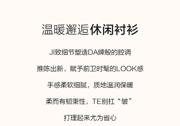 弹性: 无弹 版型: 常规 衣长: 常规 厚薄: 厚 风格: 都市 流行元素: 刺绣 适用季节: 秋,冬 领型: 翻领 袖型: 衬衫袖 袖长: 长袖 适用人群: 青年 面料: 涤纶/聚酯纤维 肩型: 常规肩 上市年份: 2023 生产/经销/进口厂家: 宁波德玛纳瑞品服饰有限公司 适用性别: 女士 厂家地址: 安徽省芜湖市三山经济开发区保定街道焦弯路3号 洗涤说明: 凡是棉、麻、丝、毛天然面料都会有轻微褪色、变型、起皱、缩水现象,为减少或避免以上情况发生在洗涤保养上需特别小心。洗涤时应选用冷水(30度以下),中性或酸性洗衣手洗(丝、毛面料应选用专业洗衣液),不宜浸泡(2分钟左右),即泡即洗,不可氯漂。为避免染色,清洗与晾晒时,深浅色应分开,不宜拧过干,反面阴干 详细材质信息: 材质一:98.2%聚酯纤维1.8%氨纶 橙红:99%聚酯纤维1%氨纶 古粉:材质一:98.9%聚酯纤维1.1%氨纶 材质二:98.6%聚酯纤维1.4%氨纶 主款式: 通勤衬衫 主风格: 都市休闲 执行标准: Q/DMN 017-2023 产地: 中国 商品配件: 暂无 商品编码: G538421241402527 收起商品展示IMAGE