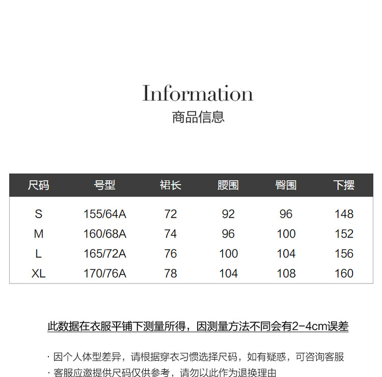 弹性: 微弹 版型: 收腰 裙长: 中长裙 风格: 简约时尚 适用季节: 秋,冬 裙型: A字裙 适用人群: 青年 面料: 粘纤 款式: A字裙 上市年份: 2023 裙门襟: 松紧带 生产/经销/进口厂家: 宁波德玛纳瑞品服饰有限公司 适用性别: 女士 厂家地址: 安徽省芜湖市三山经济开发区保定街道焦弯路3号 洗涤说明: 凡是棉、麻、丝、毛天然面料都会有轻微褪色、变型、起皱、缩水现象,为减少或避免以上情况发生在洗涤保养上需特别小心。洗涤时应选用冷水(30度以下),中性或酸性洗衣手洗(丝、毛面料应选用专业洗衣液),不宜浸泡(2分钟左右),即泡即洗,不可氯漂。为避免染色,清洗与晾晒时,深浅色应分开,不宜拧过干,反面阴干 详细材质信息: 基布:100%粘纤 涂层:聚氨酯(PU) 里料:100%聚酯纤维 主款式: A字裙 主风格: 摩登 执行标准: Q/DMN 023-2021 产地: 中国 商品配件: 暂无 商品编码: G538421330203825 收起商品展示IMAGE