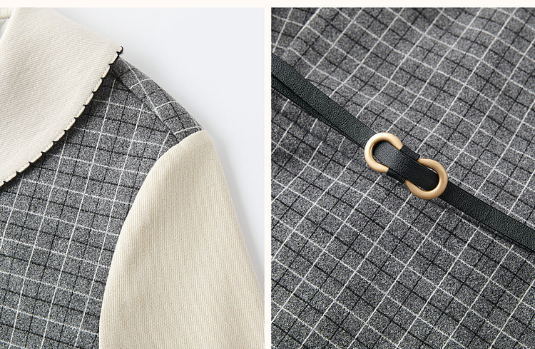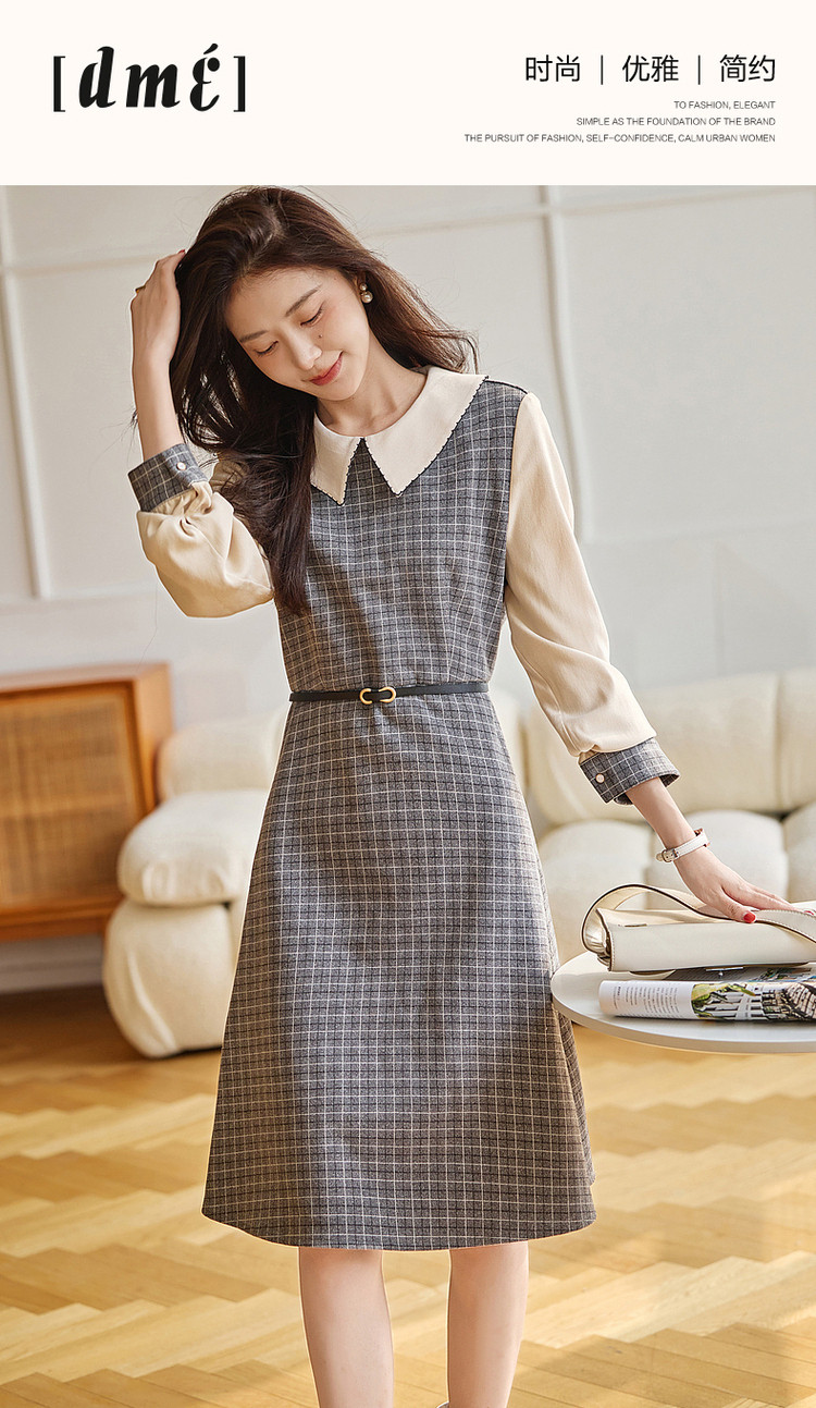 弹性: 无弹 版型: 收腰 裙长: 中裙 厚薄: 厚 详细材质信息: 大身面料:100%聚酯纤维 拼接面料:98.6%聚酯纤维 1.4%氨纶 里料:100%聚酯纤维 风格: 文艺风 流行元素: 腰带 适用季节: 秋,冬 领型: 娃娃领 衣门襟: 拉链 裙型: X版型 袖型: 衬衫袖 袖长: 长袖 腰型: 中腰 适用人群: 青年 面料: 涤纶/聚酯纤维 肩型: 常规肩 款式: 小洋裙 组合形式: 单件 生产/经销/进口厂家: 宁波德玛纳瑞品服饰有限公司 适用性别: 女士 厂家地址: 安徽省芜湖市三山经济开发区保定街道焦弯路3号 洗涤说明: 凡是棉、麻、丝、毛天然面料都会有轻微褪色、变型、起皱、缩水现象,为减少或避免以上情况发生在洗涤保养上需特别小心。洗涤时应选用冷水(30度以下),中性或酸性洗衣手洗(丝、毛面料应选用专业洗衣液),不宜浸泡(2分钟左右),即泡即洗,不可氯漂。为避免染色,清洗与晾晒时,深浅色应分开,不宜拧过干,反面阴干 主风格: 文艺风 执行标准: Q/DMN 016-2018 廓形: X型 主款式: 小洋裙 产地: 中国 商品配件: 暂无 商品编码: G538421520409201 收起商品展示IMAGE